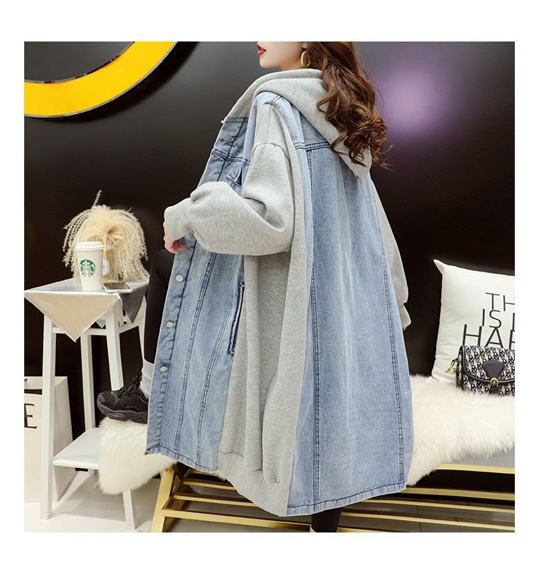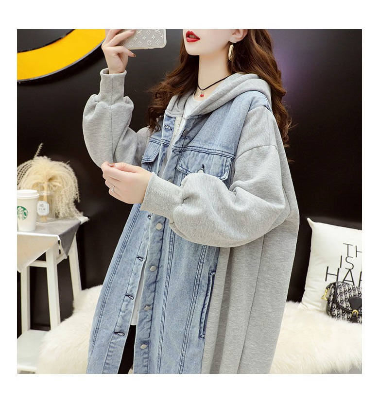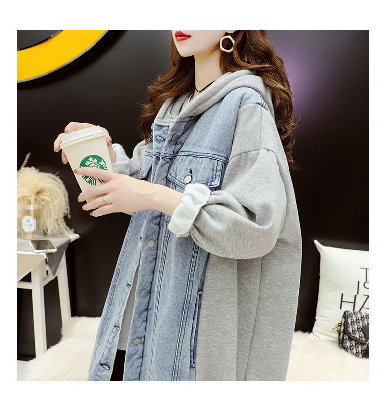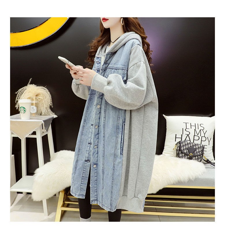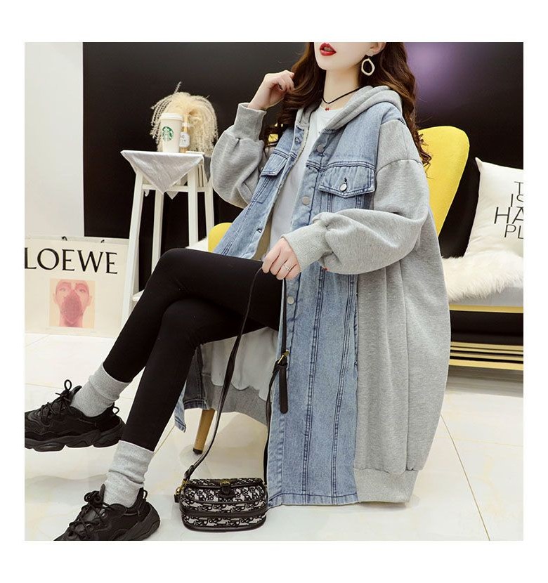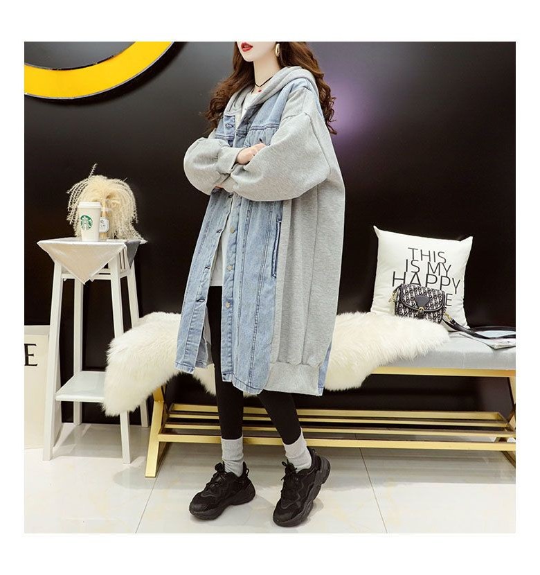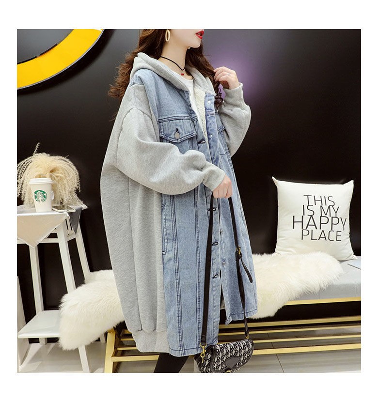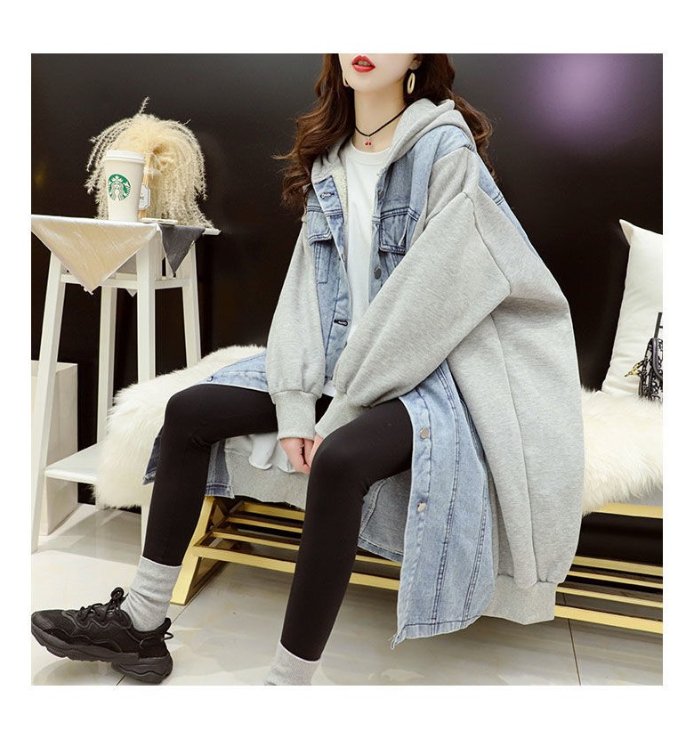 빅사이즈 기모 날씬해보이는 롱 후드 점퍼 여성 겨울 데님 오버핏 배색 심플 램스울 뽀글이 후리스 따뜻한