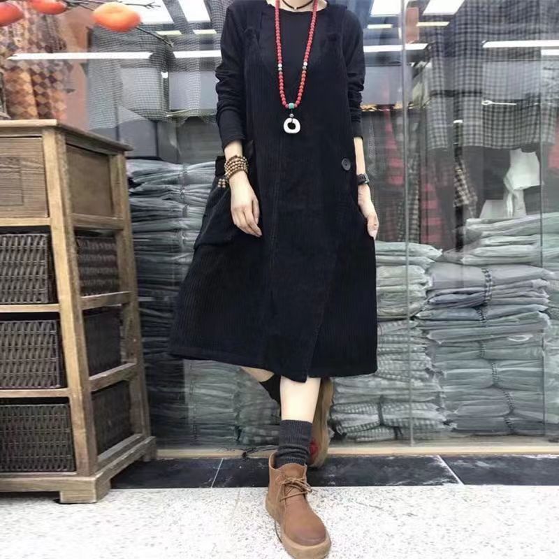 스커트 겨울 가을 루즈한 코듀로이 여성 서스펜더 멜빵 트렌드