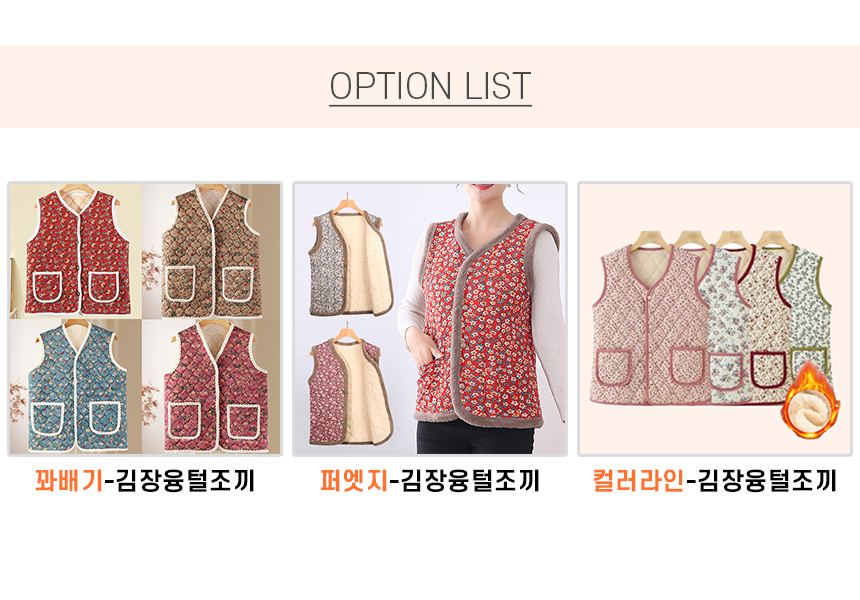 겨울 기모 꽃무늬 촌캉스 할머니 엄마 어르신 조끼 누빔 양털 융털 단추 보온 캠핑 남성 여성 커플 조끼