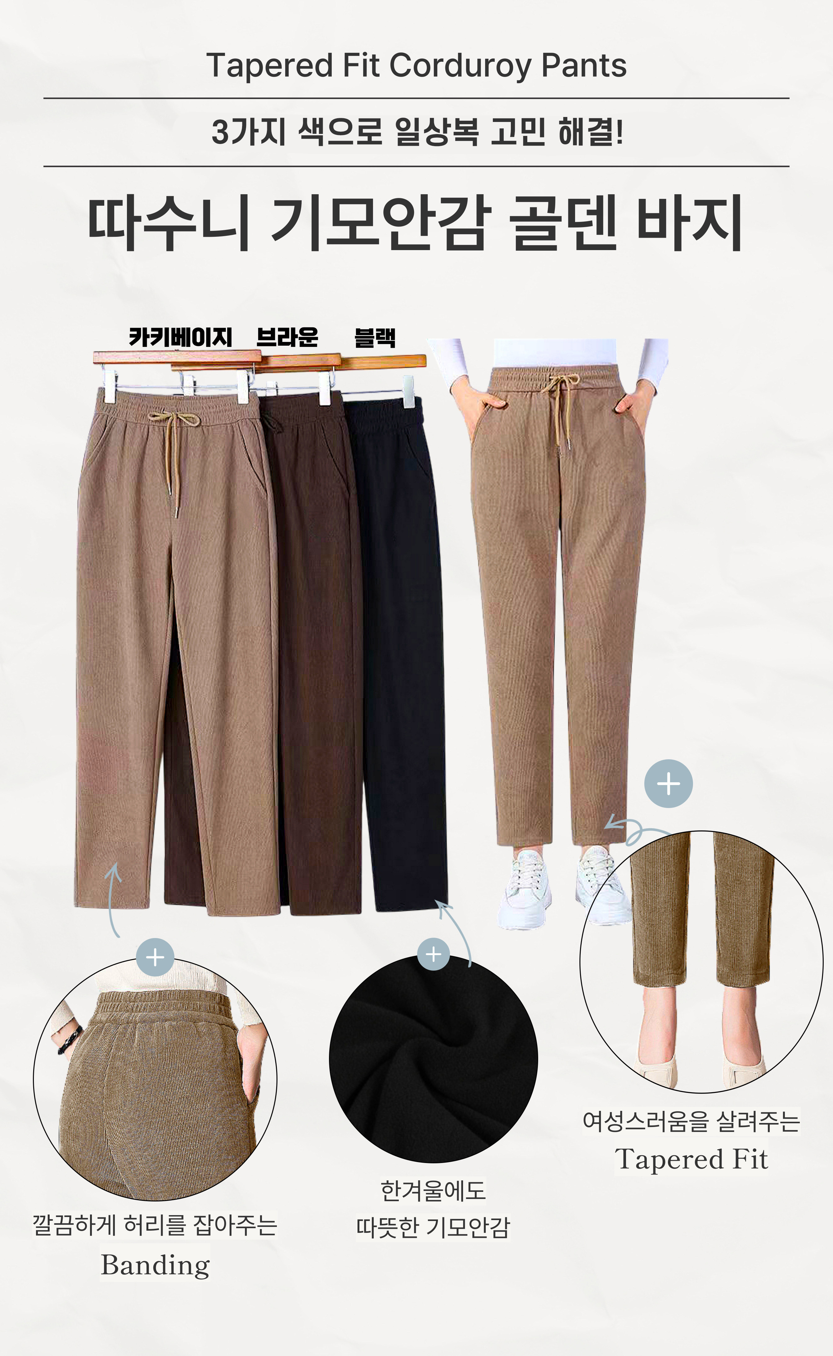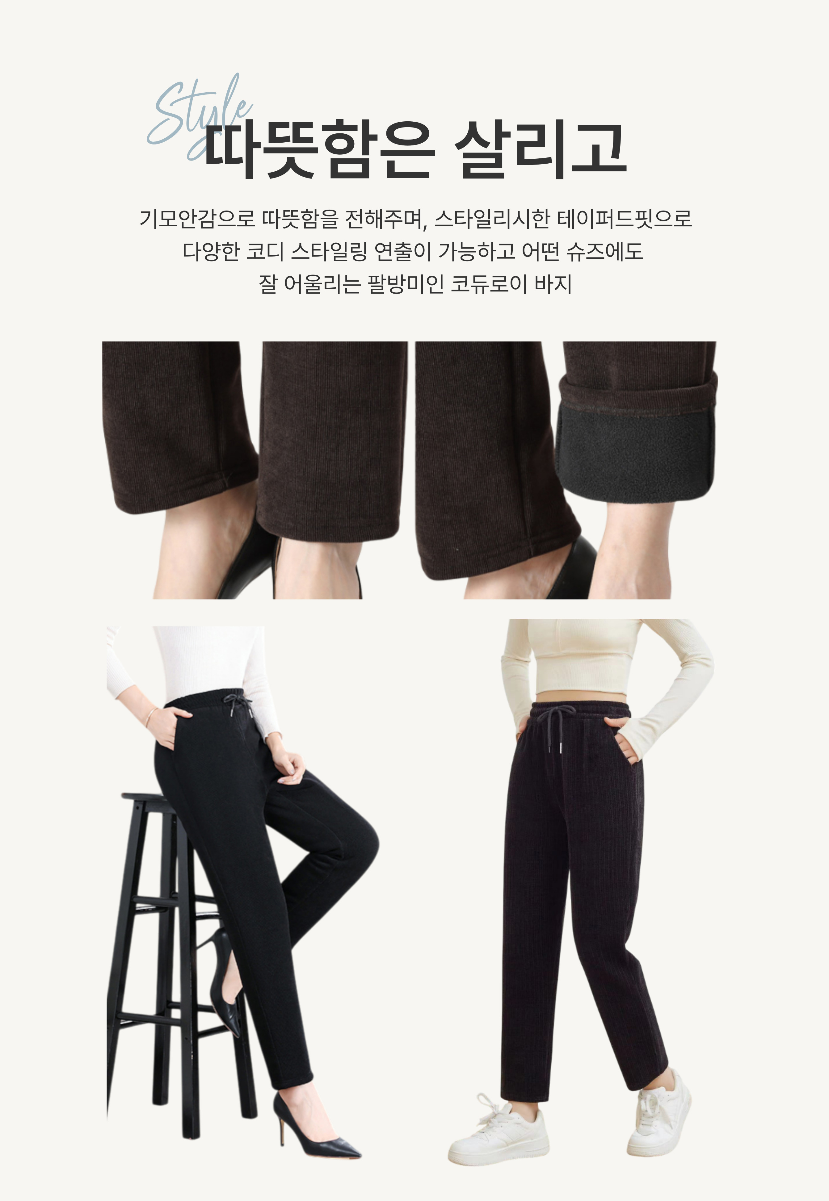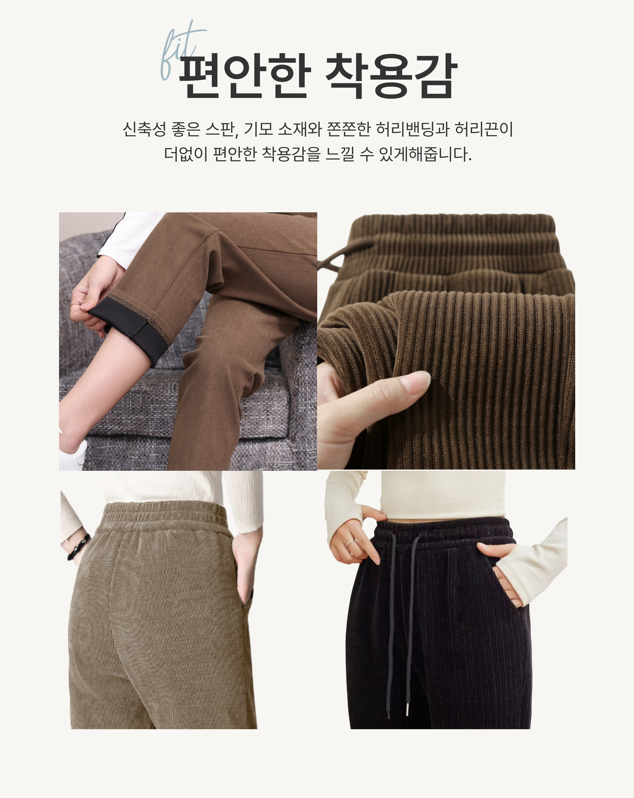 따수니 기모 골덴바지 코듀로이 팬츠 스트레이트 여성 겨울 바지