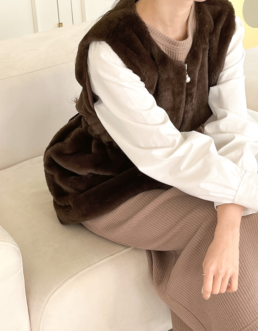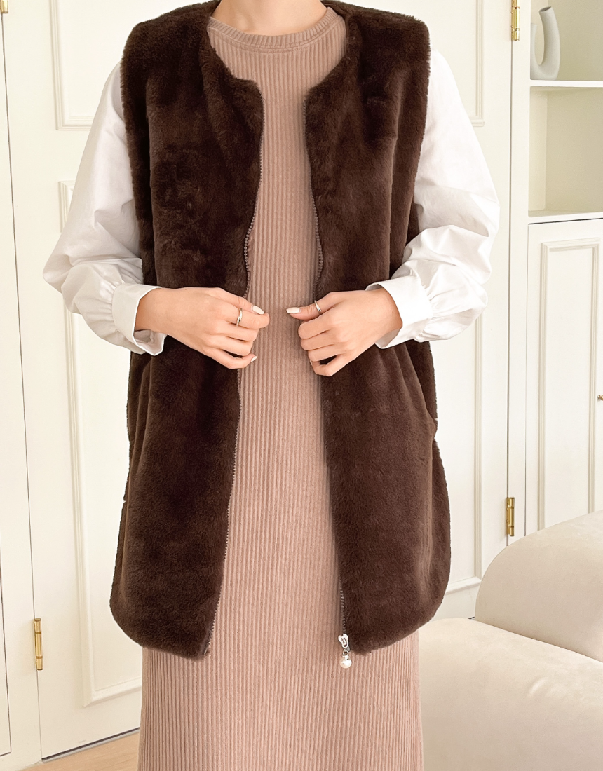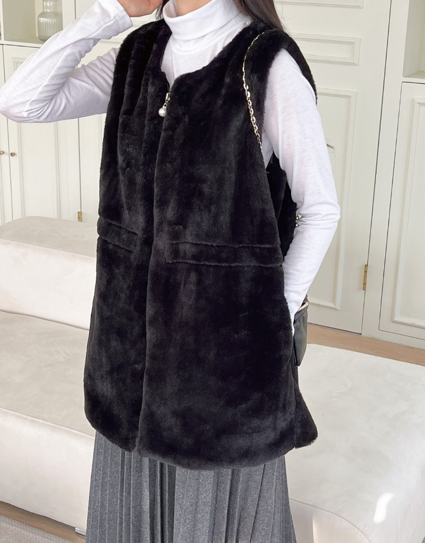 에코 조끼 여성 퍼 밍크 베스트 롱 퍼조끼 겨울조끼 롱조끼 털조끼 페이크퍼 밍크조끼 에코 인조밍크
