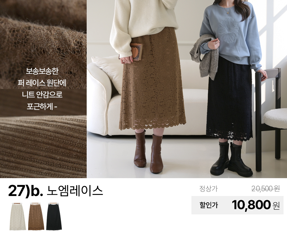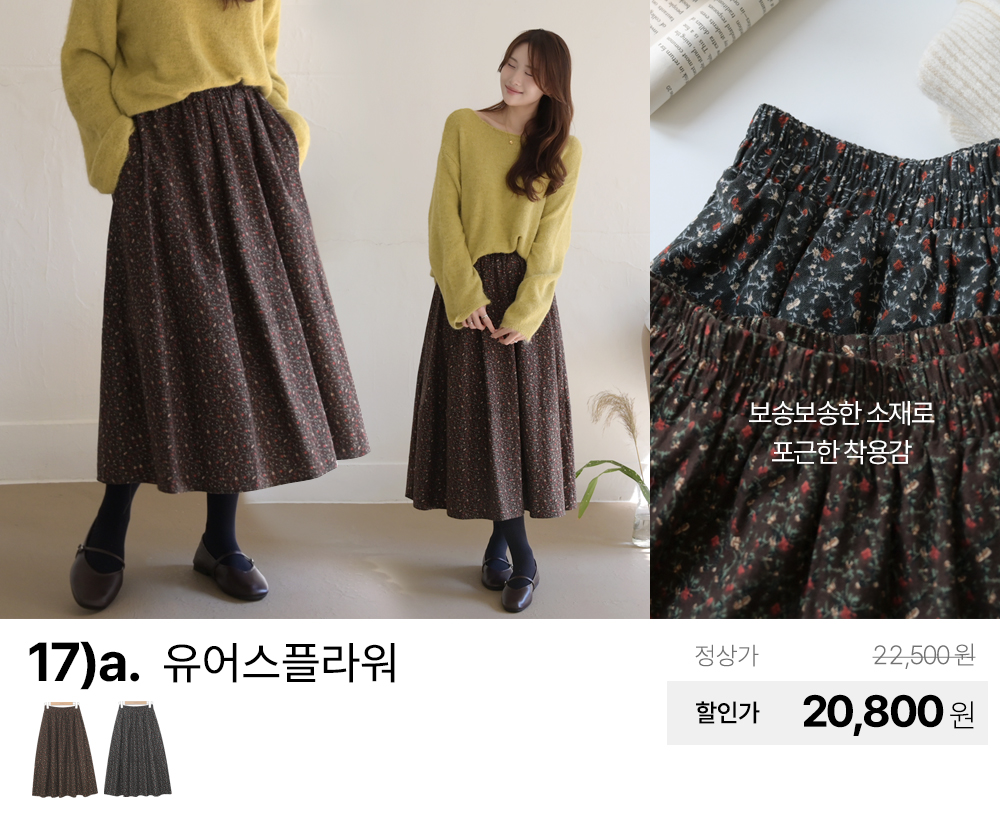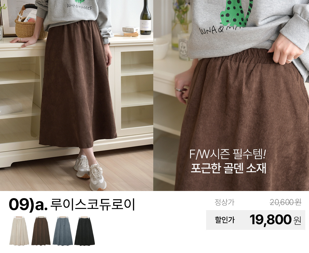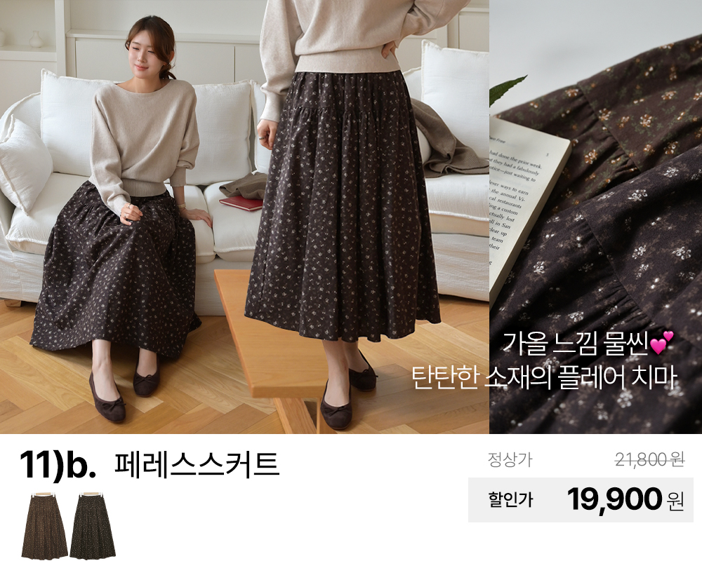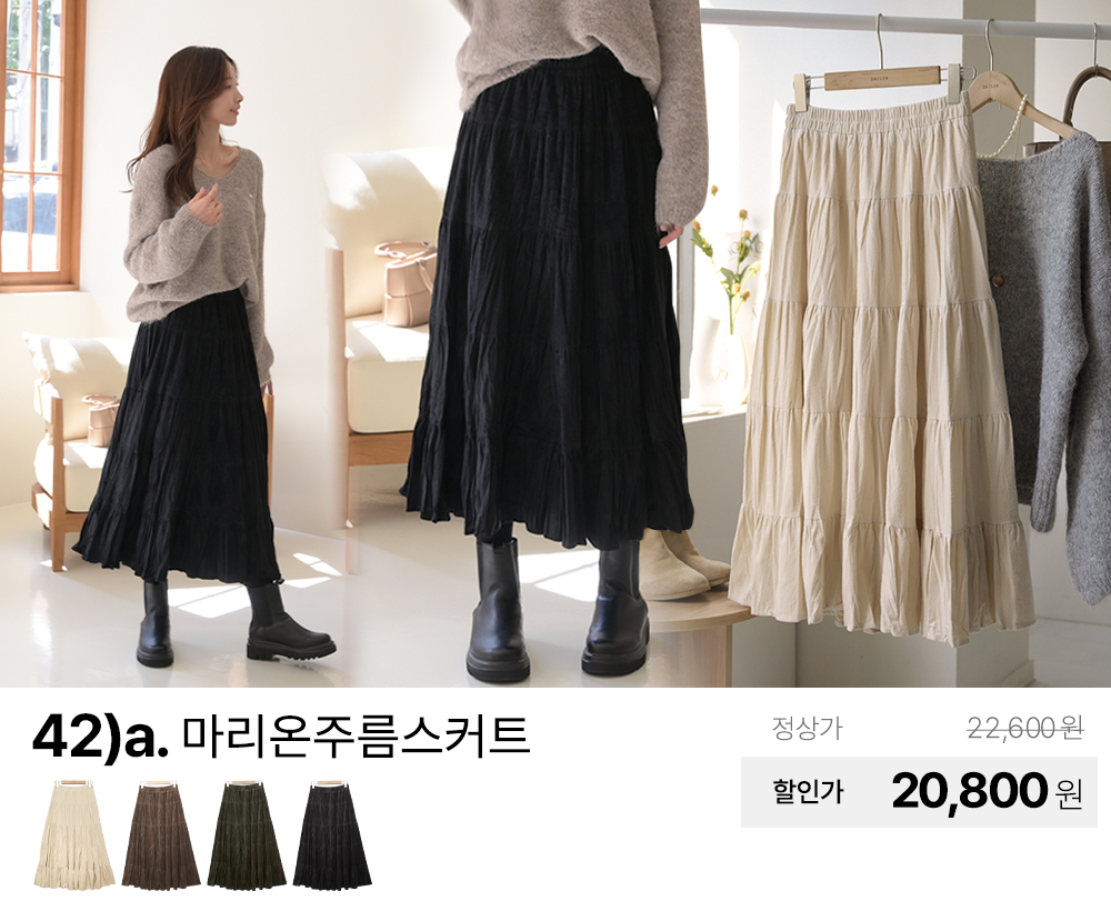 가을 신상 기모 밍크 니트 쉬폰 망사 프릴 코튼 플레어 플리츠 주름 밴딩 스판 데님 롱 스커트 치마
