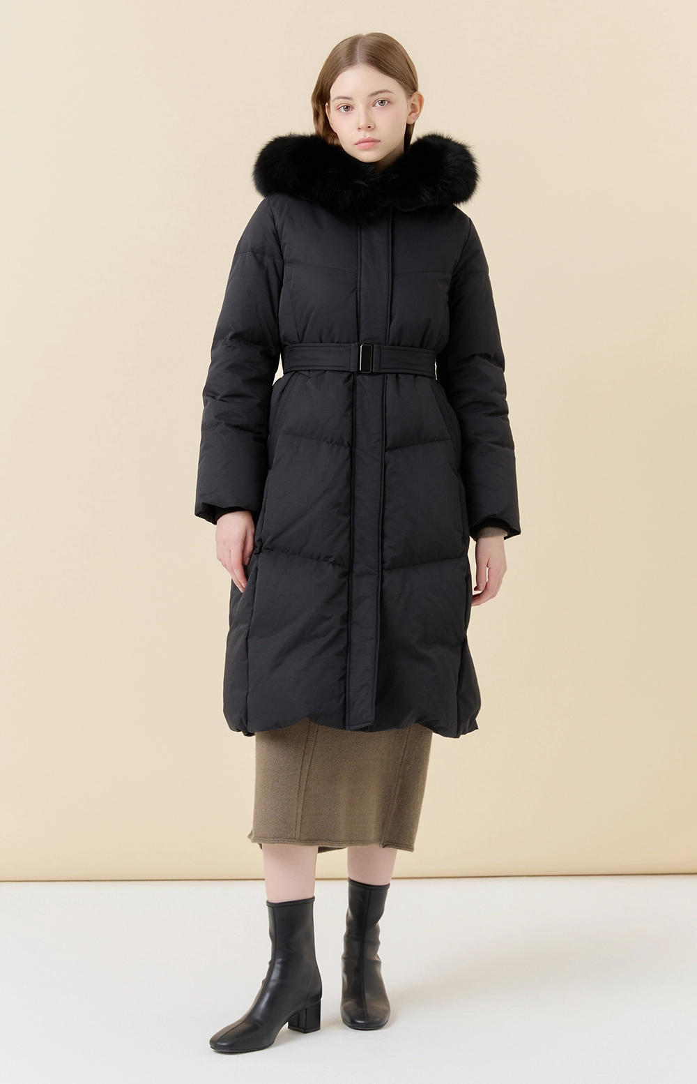 데일리한 무드의 구스 롱 다운자켓입니다.
