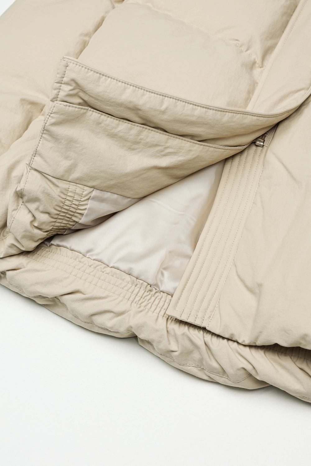 겉감 면51%, 나일론49%,충전재1 거위(구스)솜털80%, 거위(구스)깃털20%,충전재2 폴리에스터100%