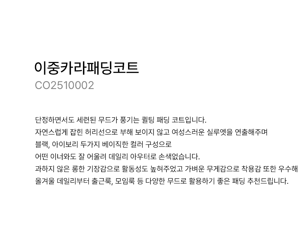 | 소재 | 폴리에스터100%,충전재:덕다운100%,무게:710g |