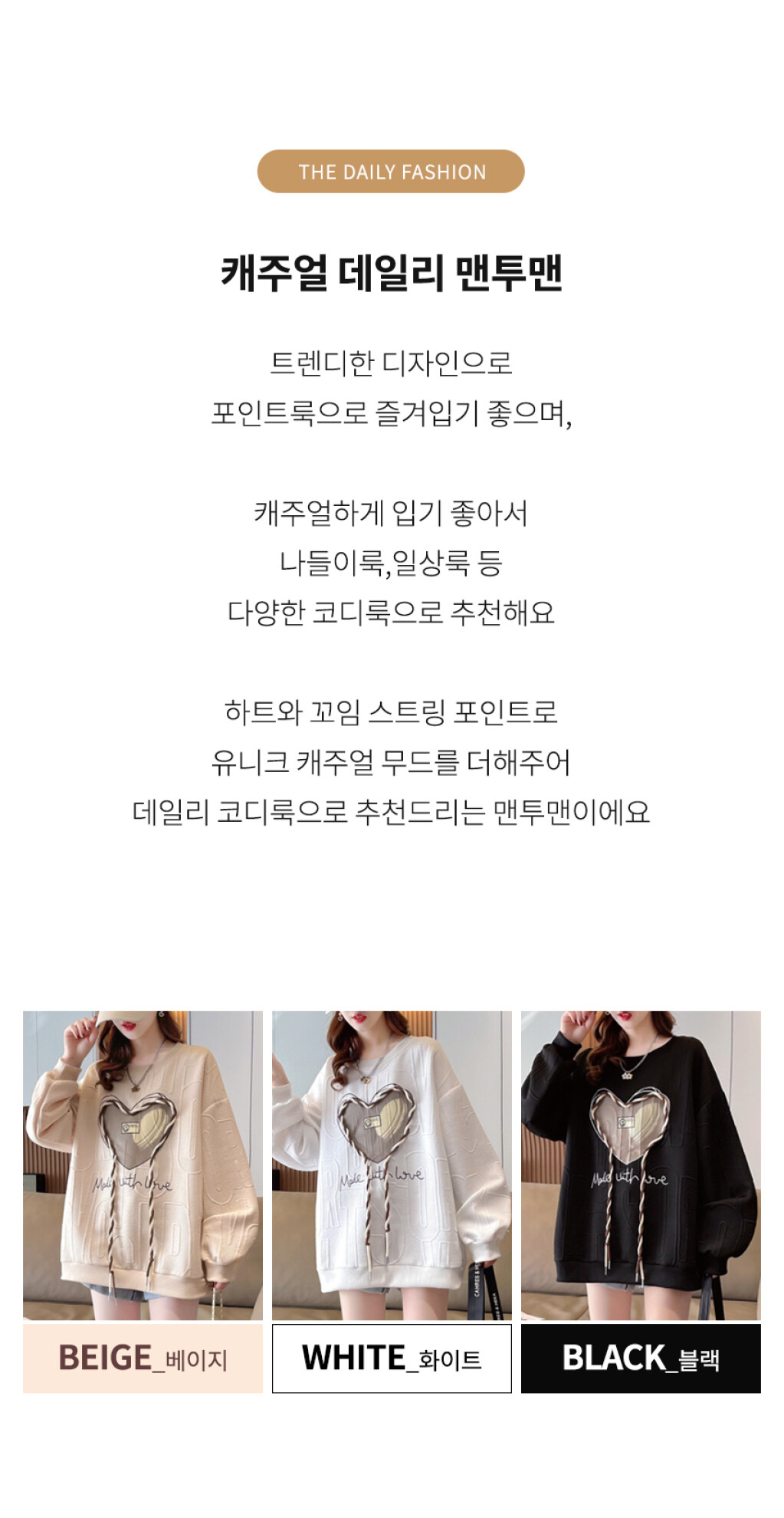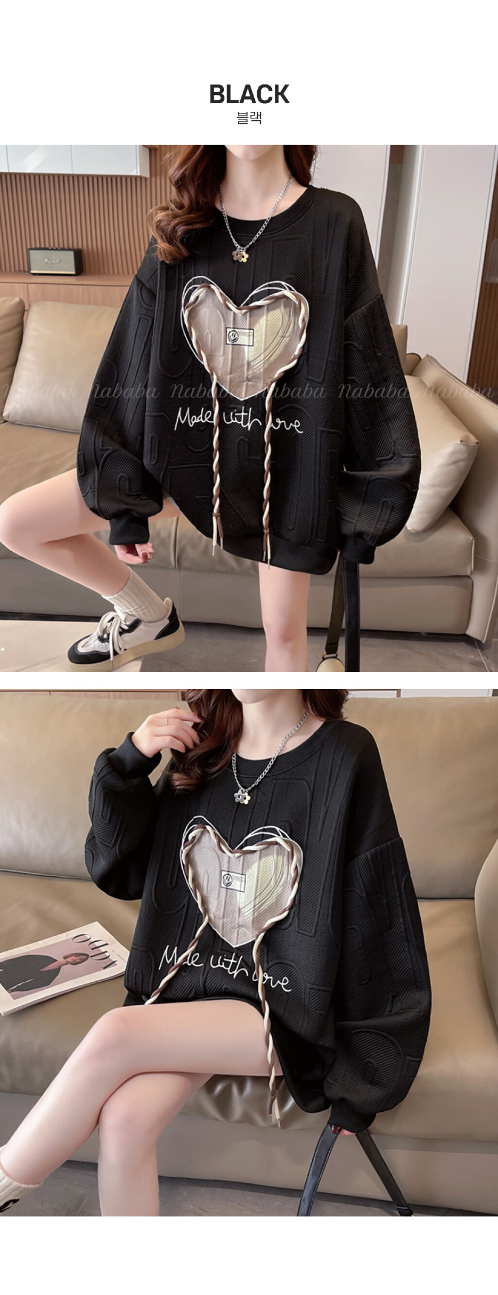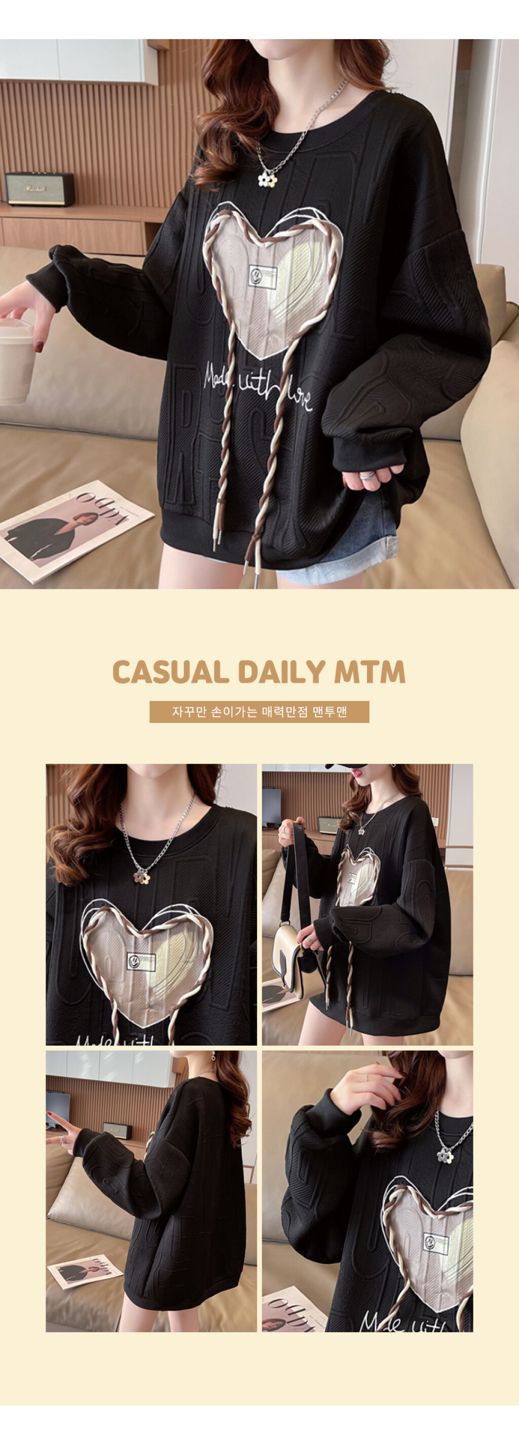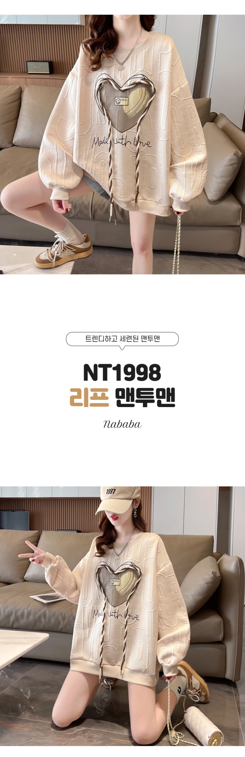 NT1998 하트 레터링 루즈핏 긴팔 맨투맨