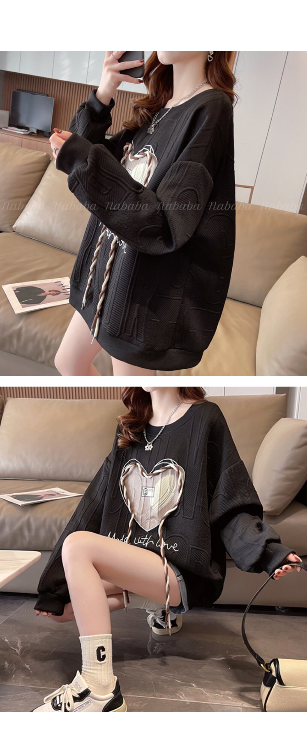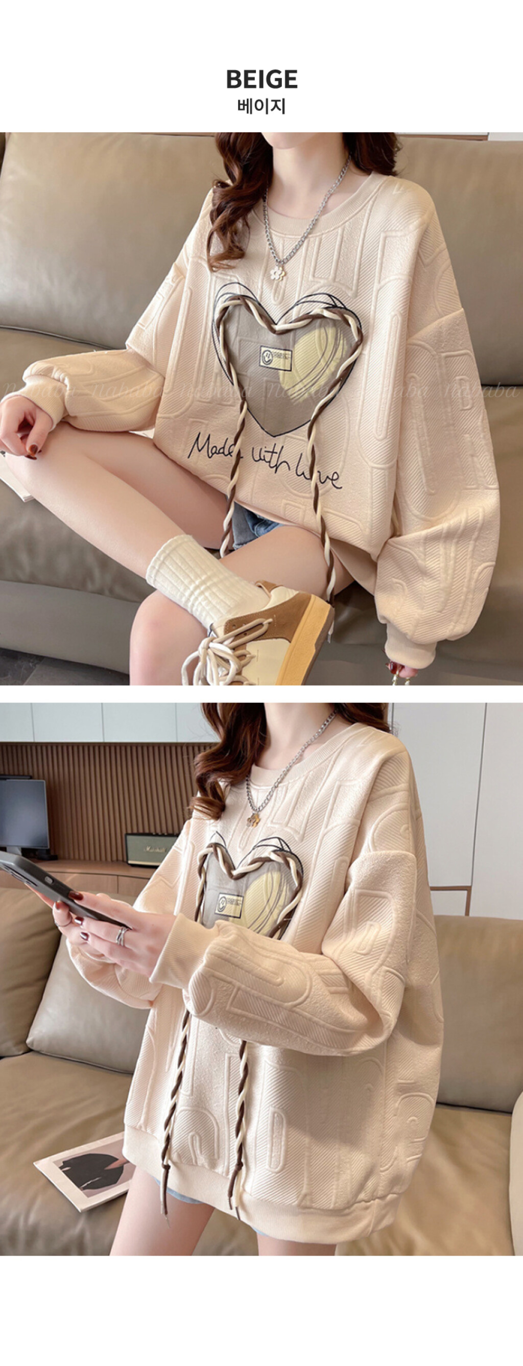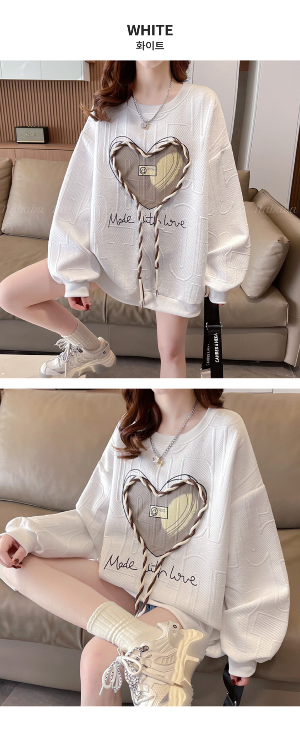 NT1998 하트 레터링 루즈핏 긴팔 맨투맨