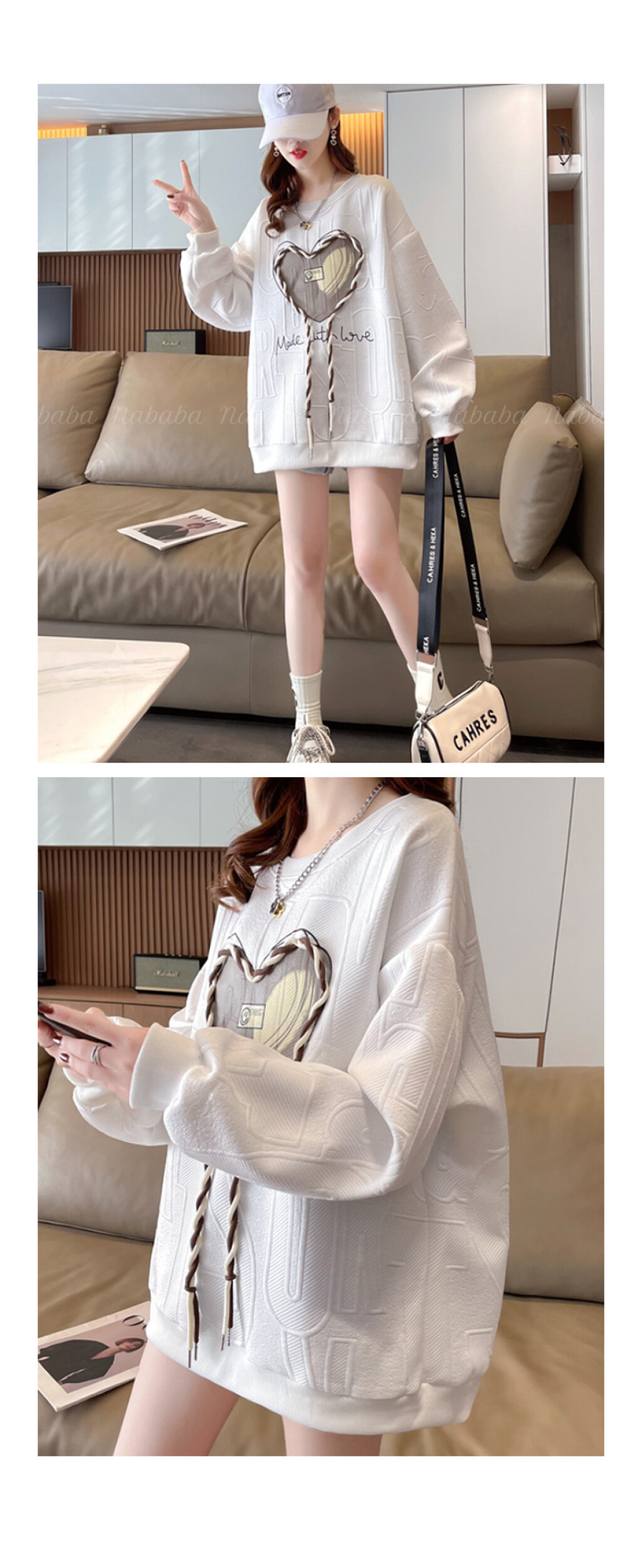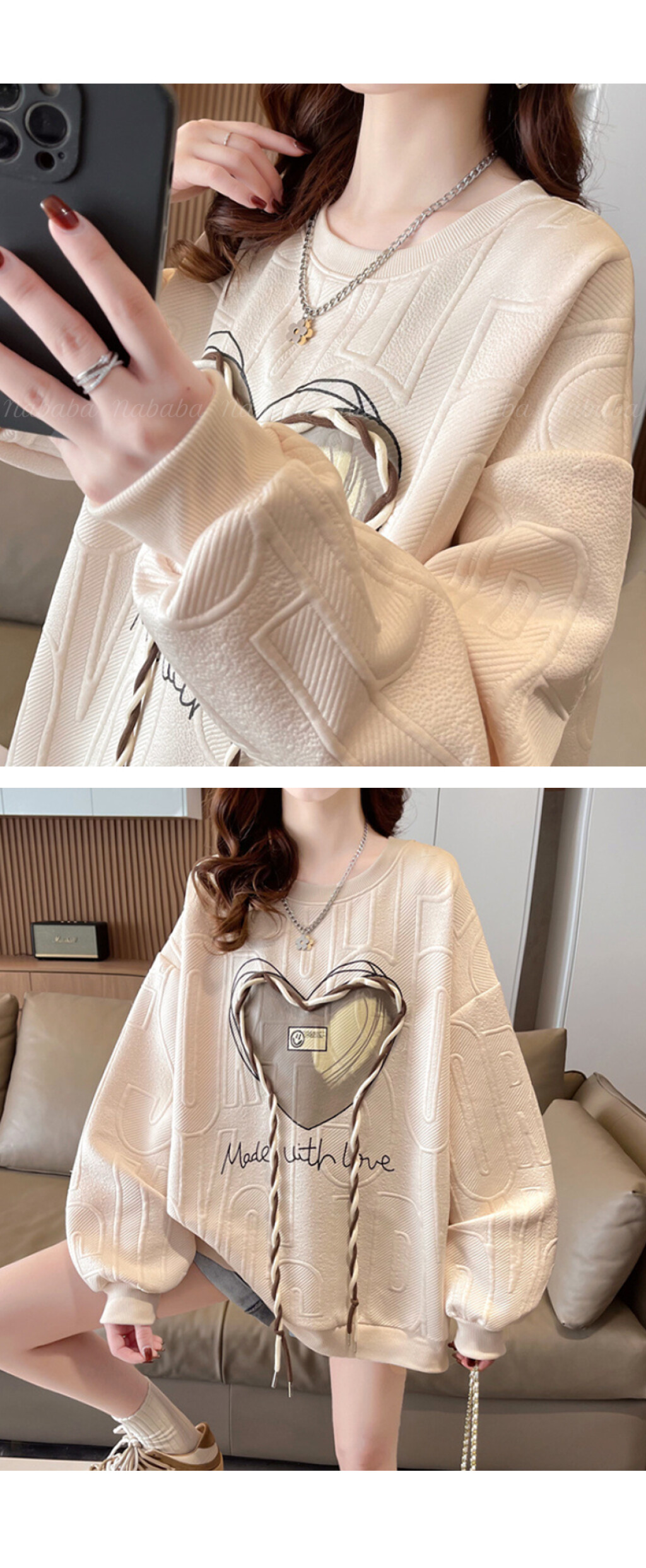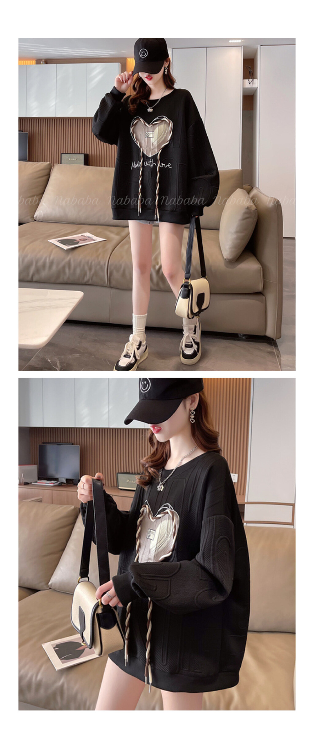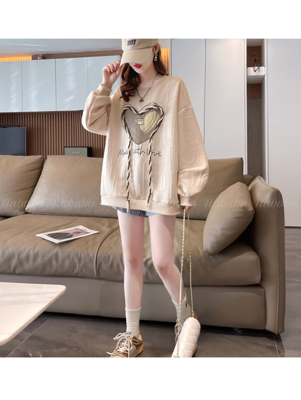 NT1998 하트 레터링 루즈핏 긴팔 맨투맨