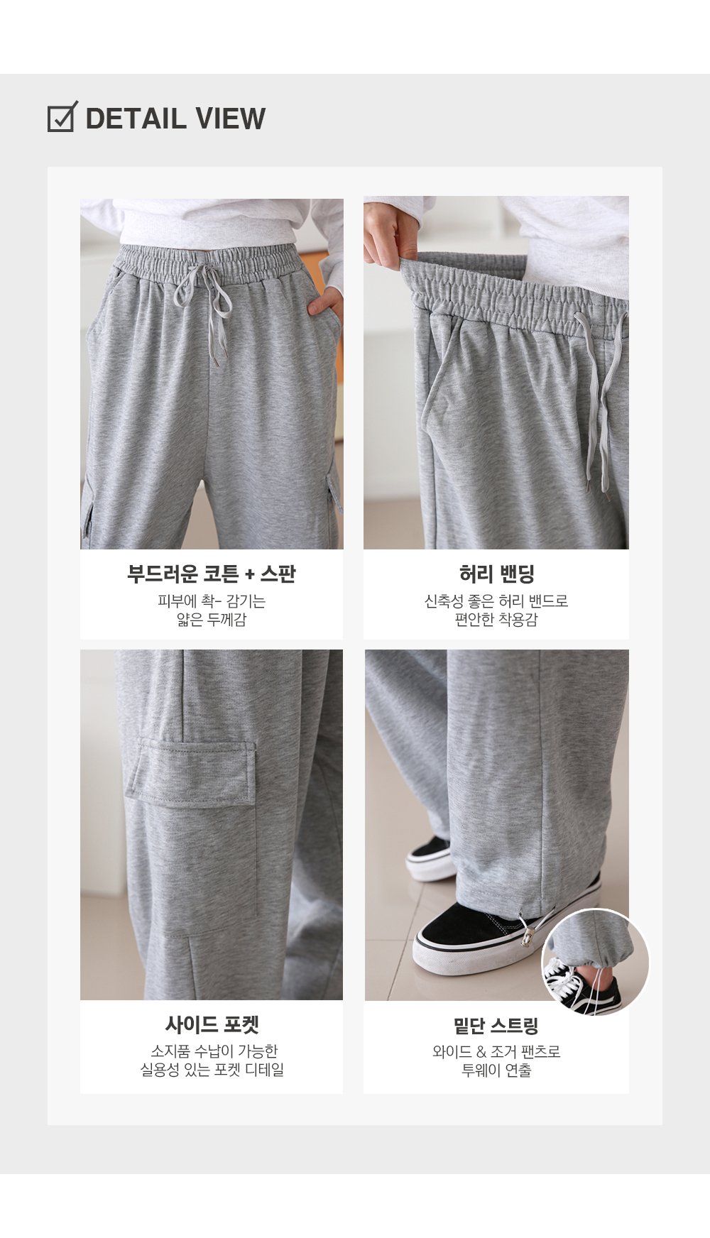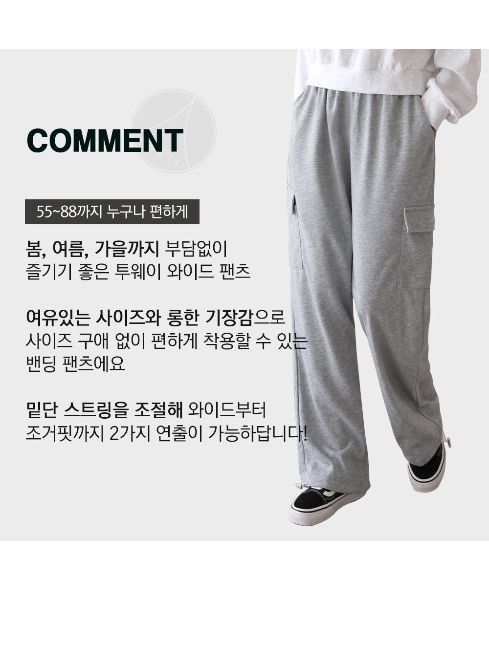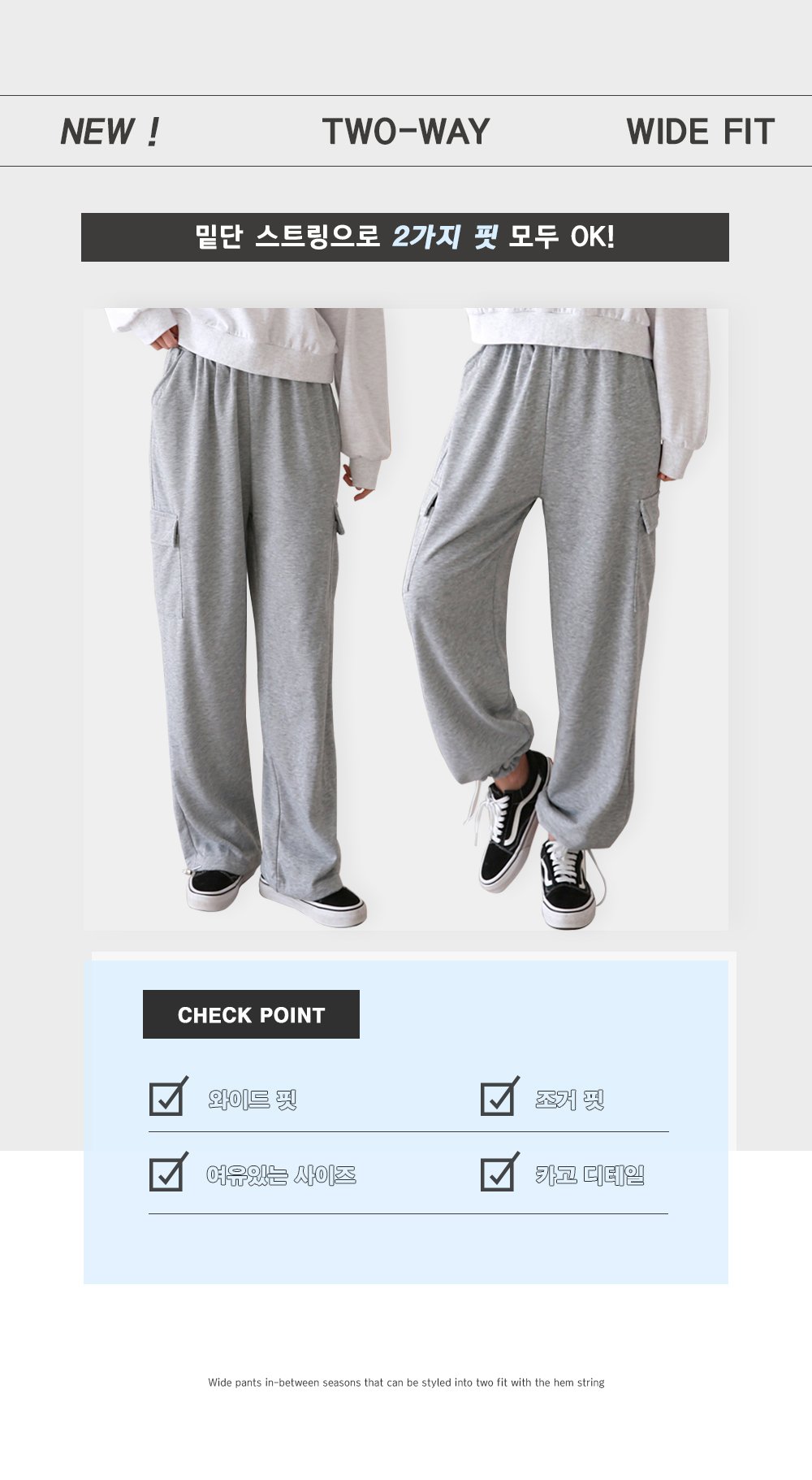 건빵 카고 투웨이 밴딩 면 와이드 통바지