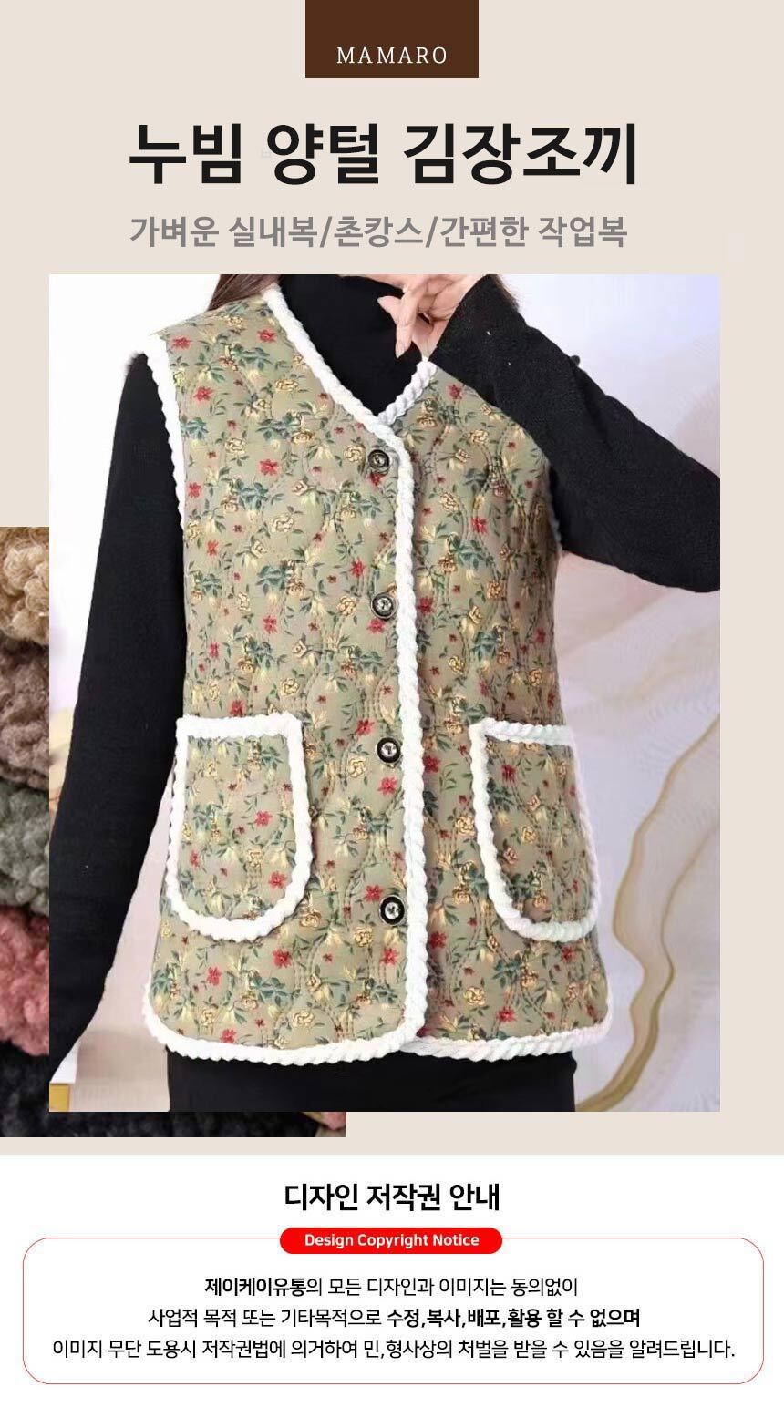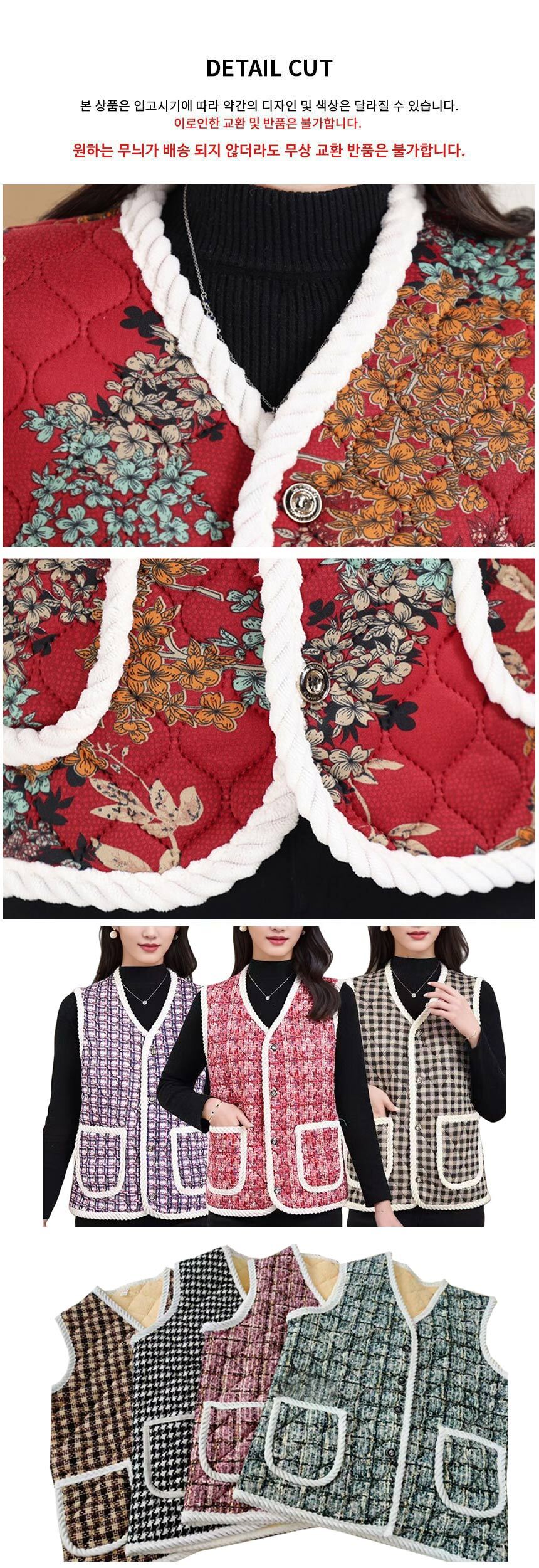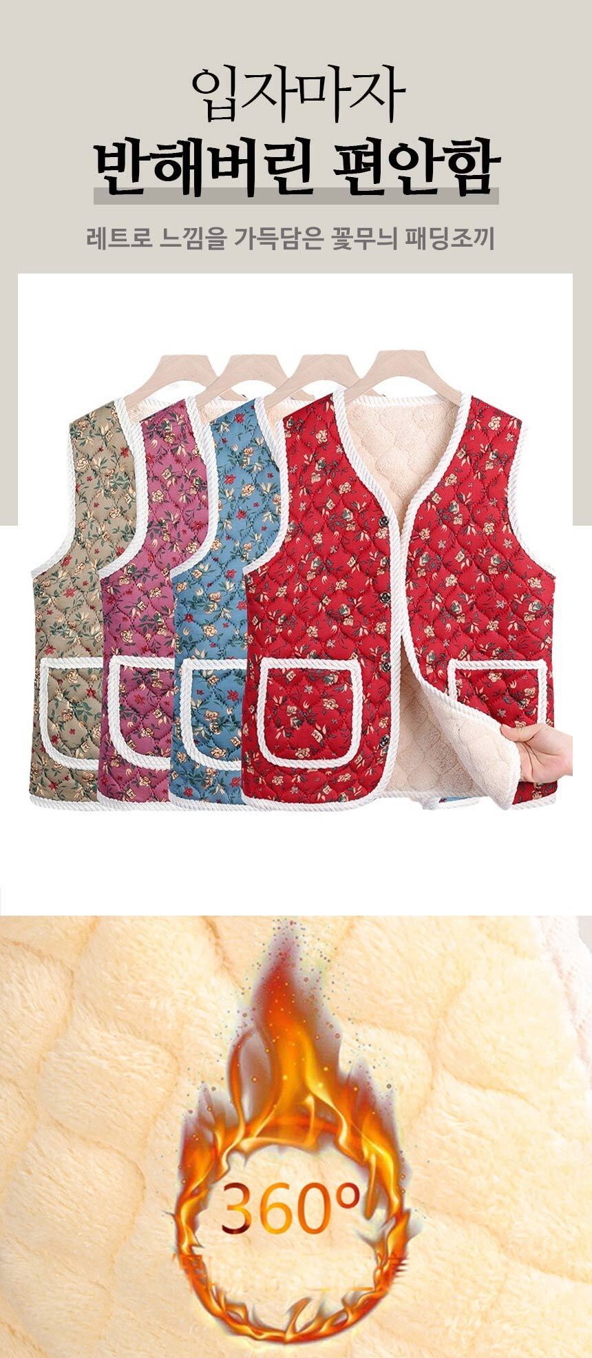 2장세트 제이케이sp 할머니 꽃무늬 김장 조끼 누빔 양털 퀼팅 보온 레트로 촌캉스 방한