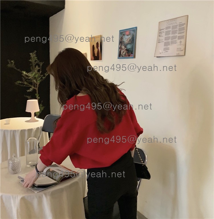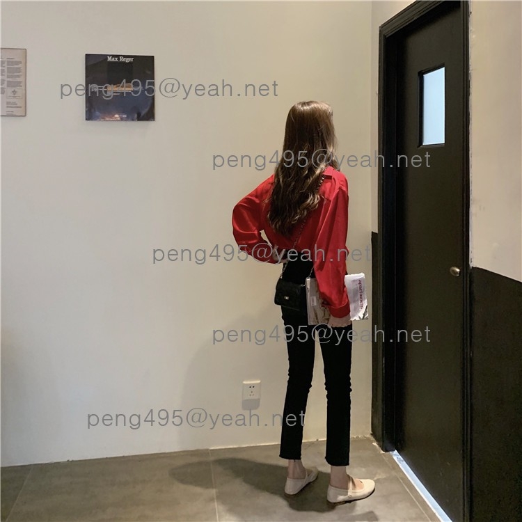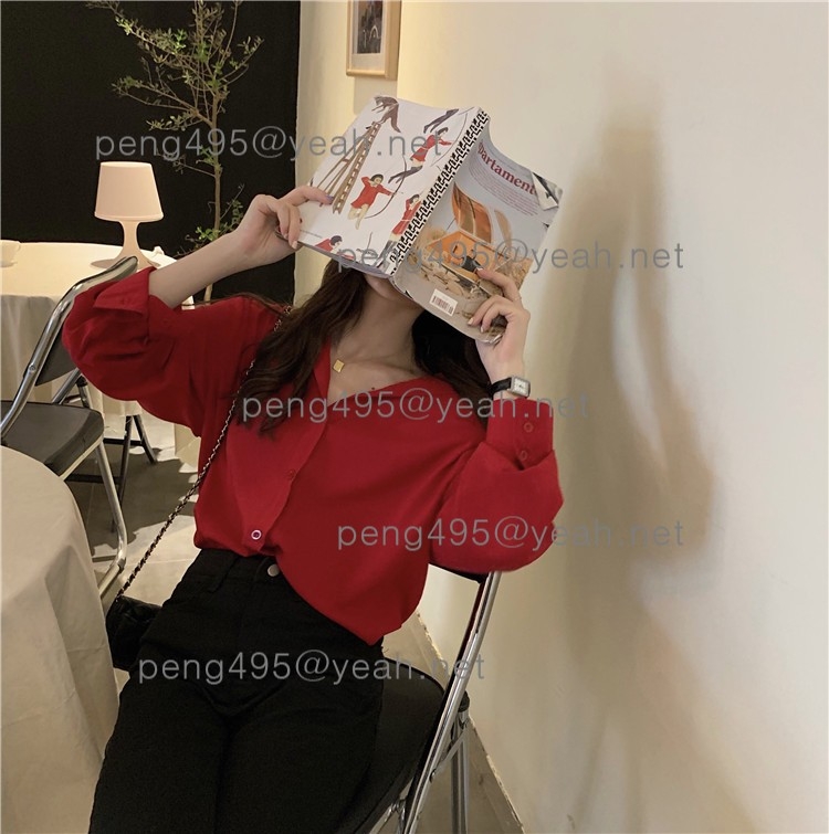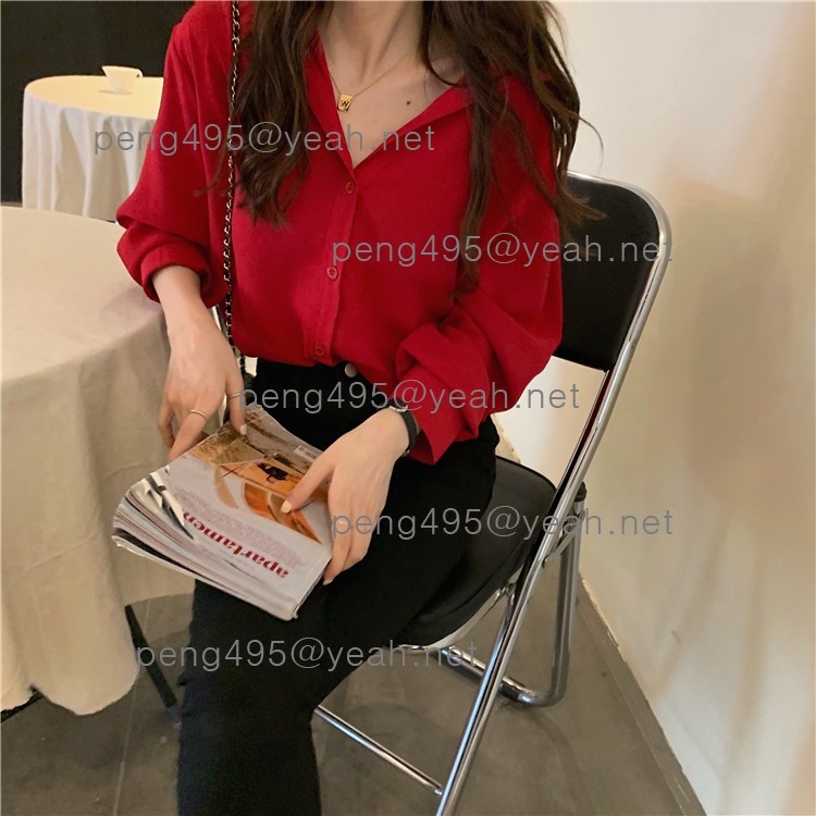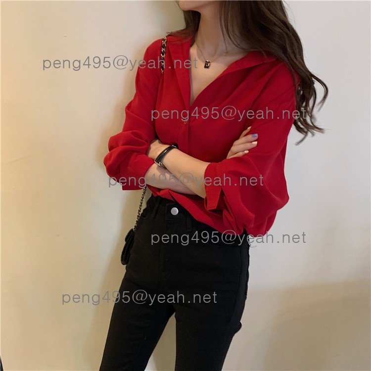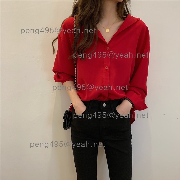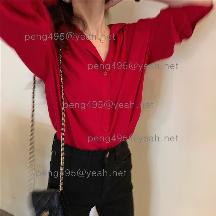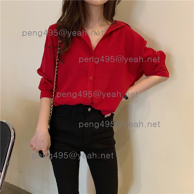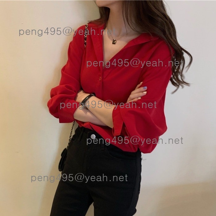 스타일 패션 틈새 긴팔 레드셔츠 레드블라우스