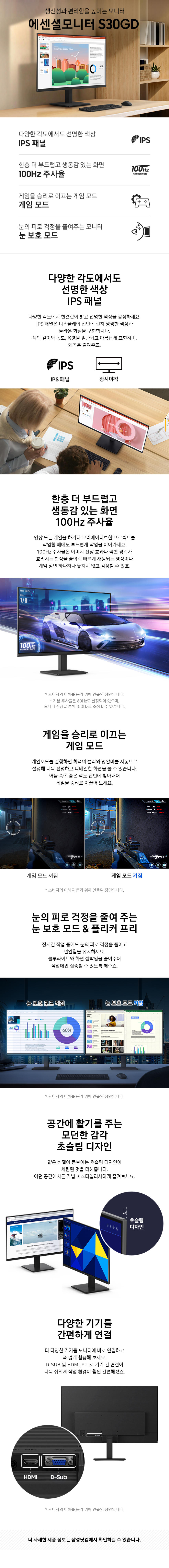 S27D300 68cm IPS LED 100Hz 컴퓨터 모니터 LS27D300GAKXKR 스타배송 (N4)