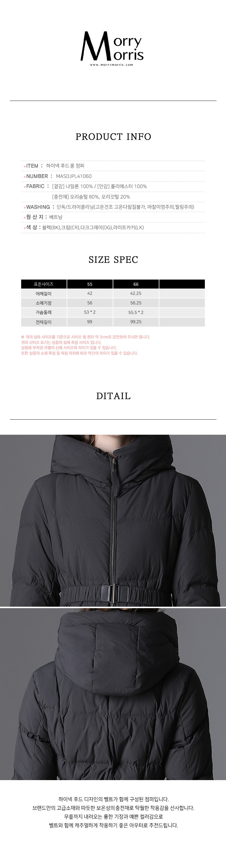 모리모리스모리모리스 알레스카 하이넥 후드 롱 패딩 코트