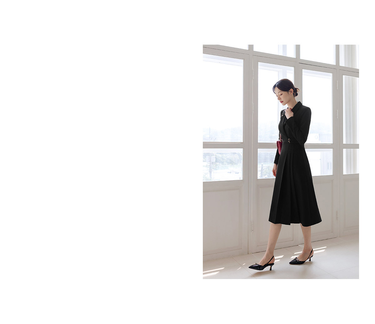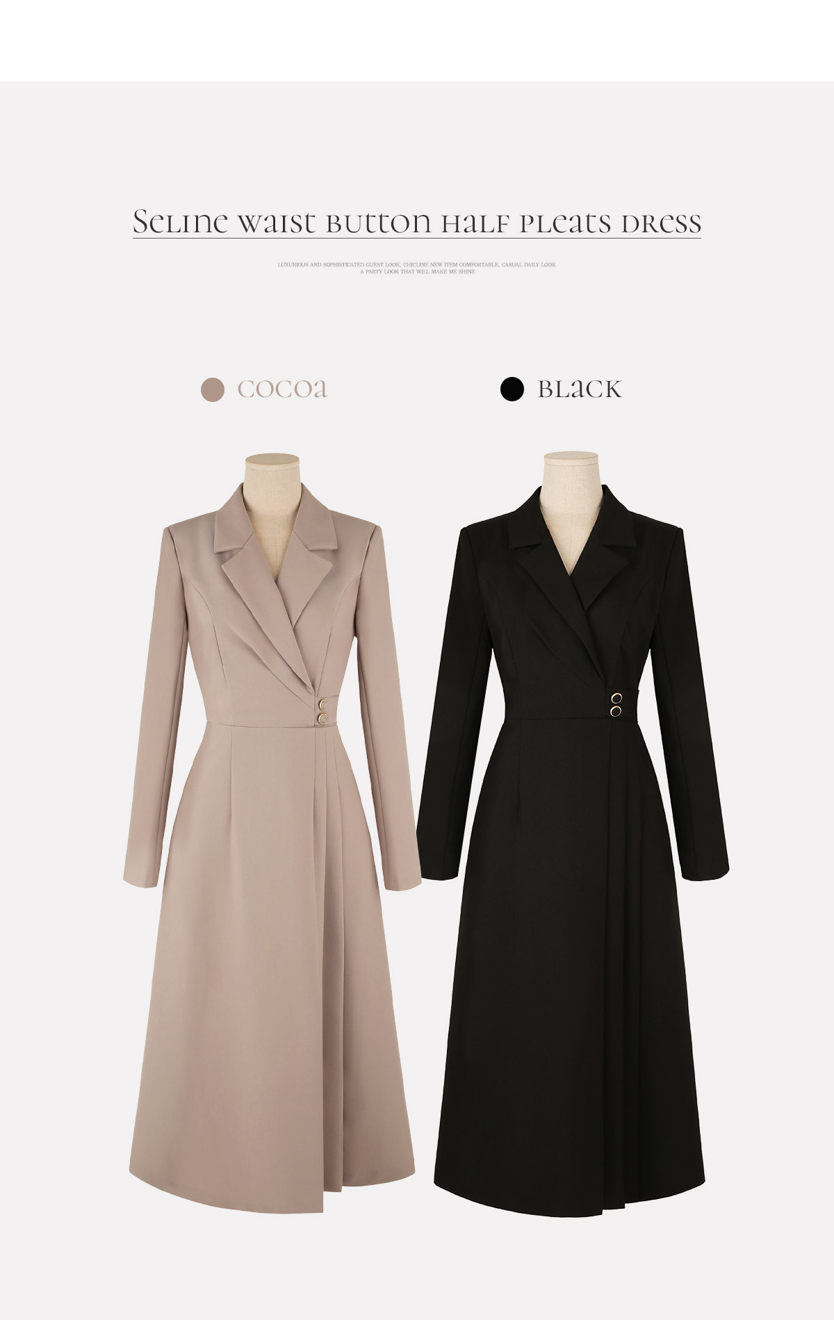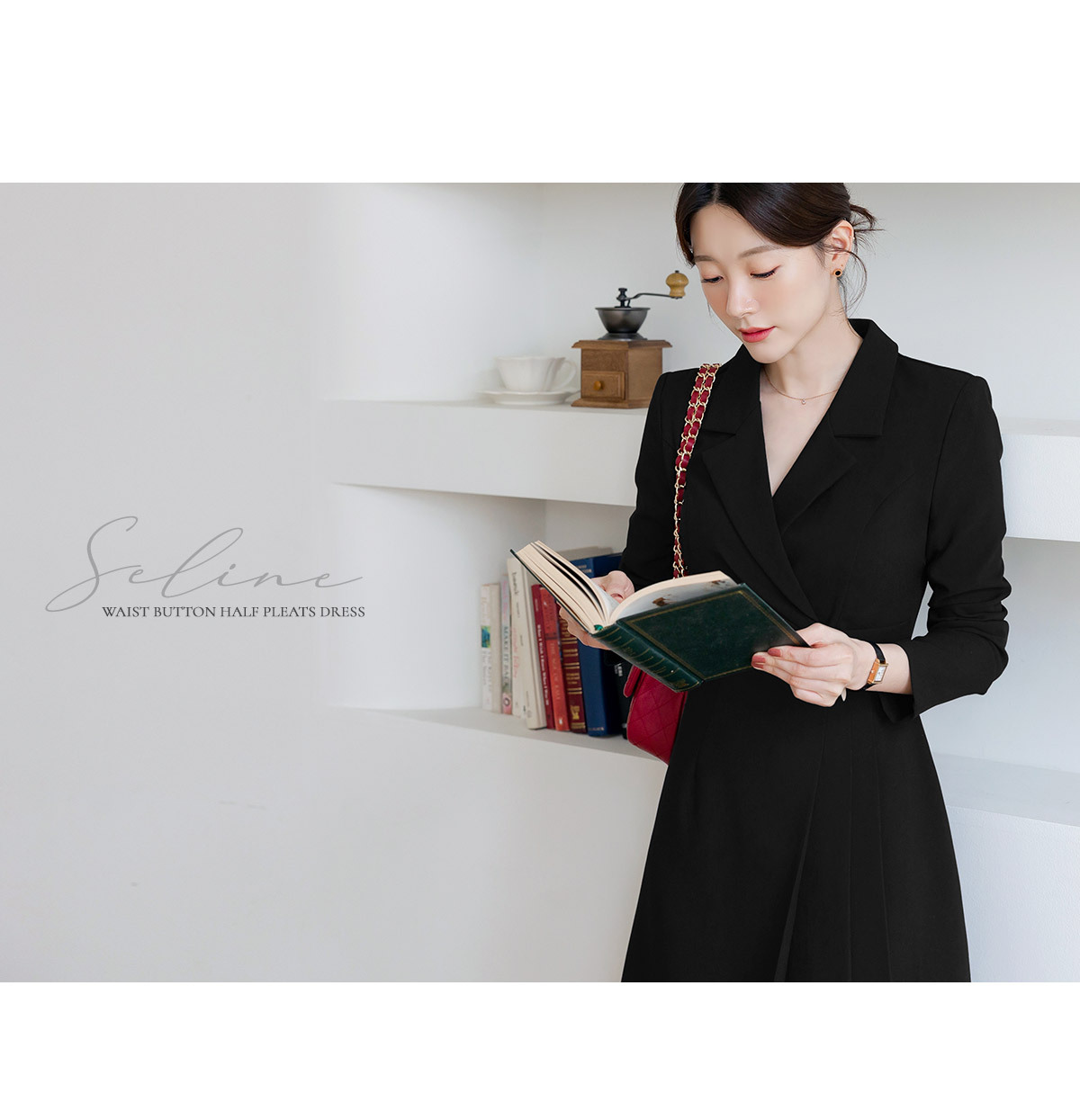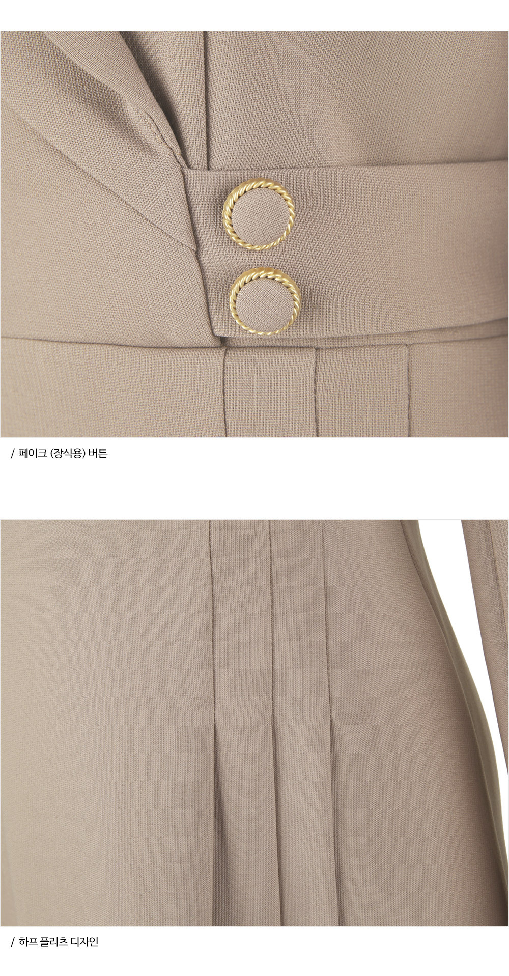 (~XXL까지) 세라인 허리버튼 하프 플리츠 원피스 가을 하객룩 오피스룩 모임룩 격식룩 빅사이즈