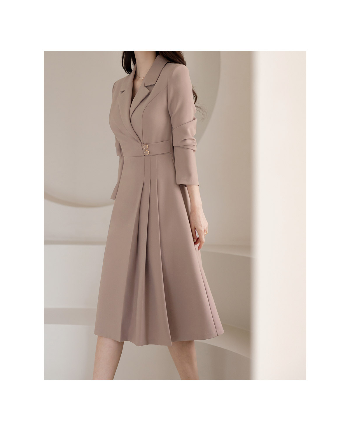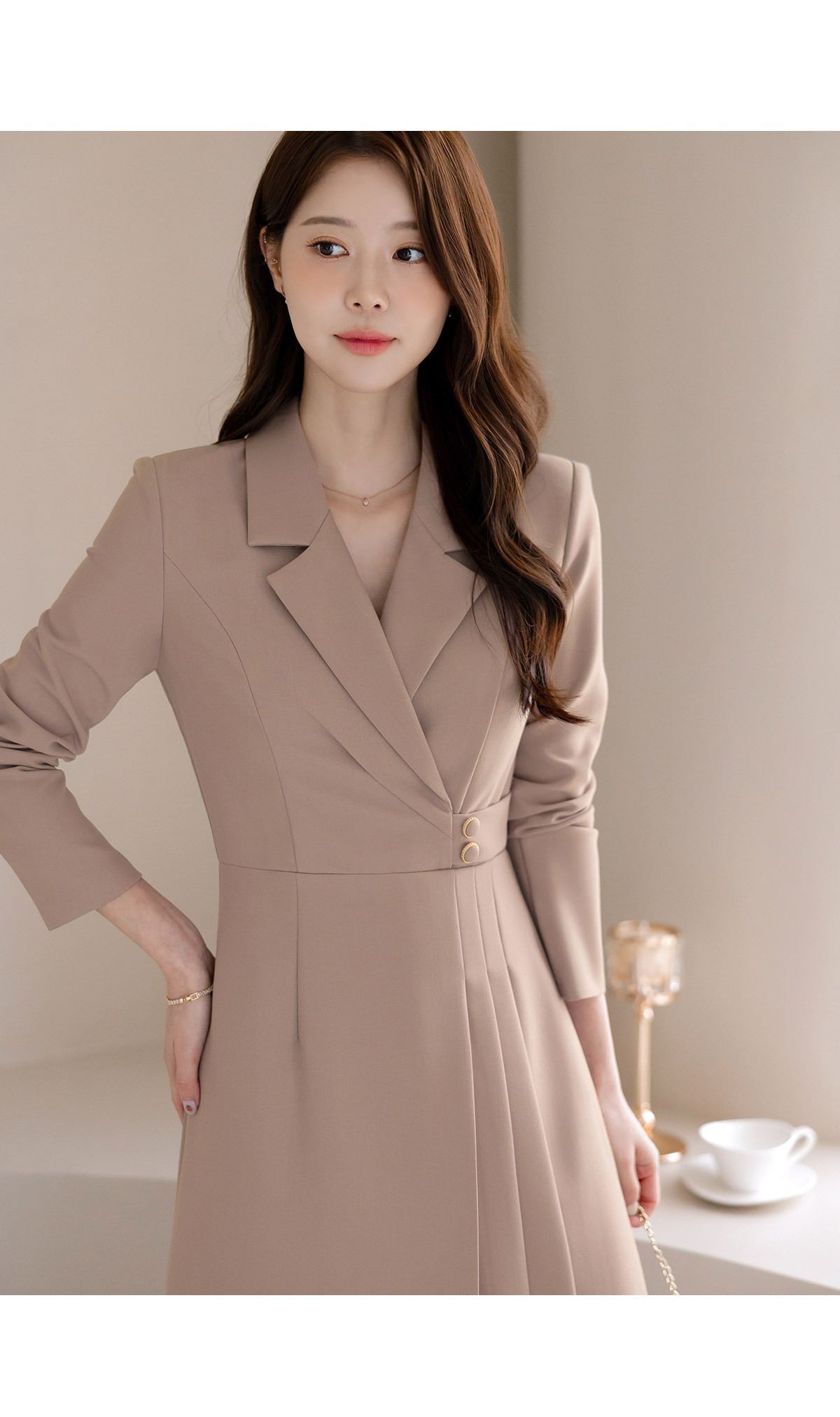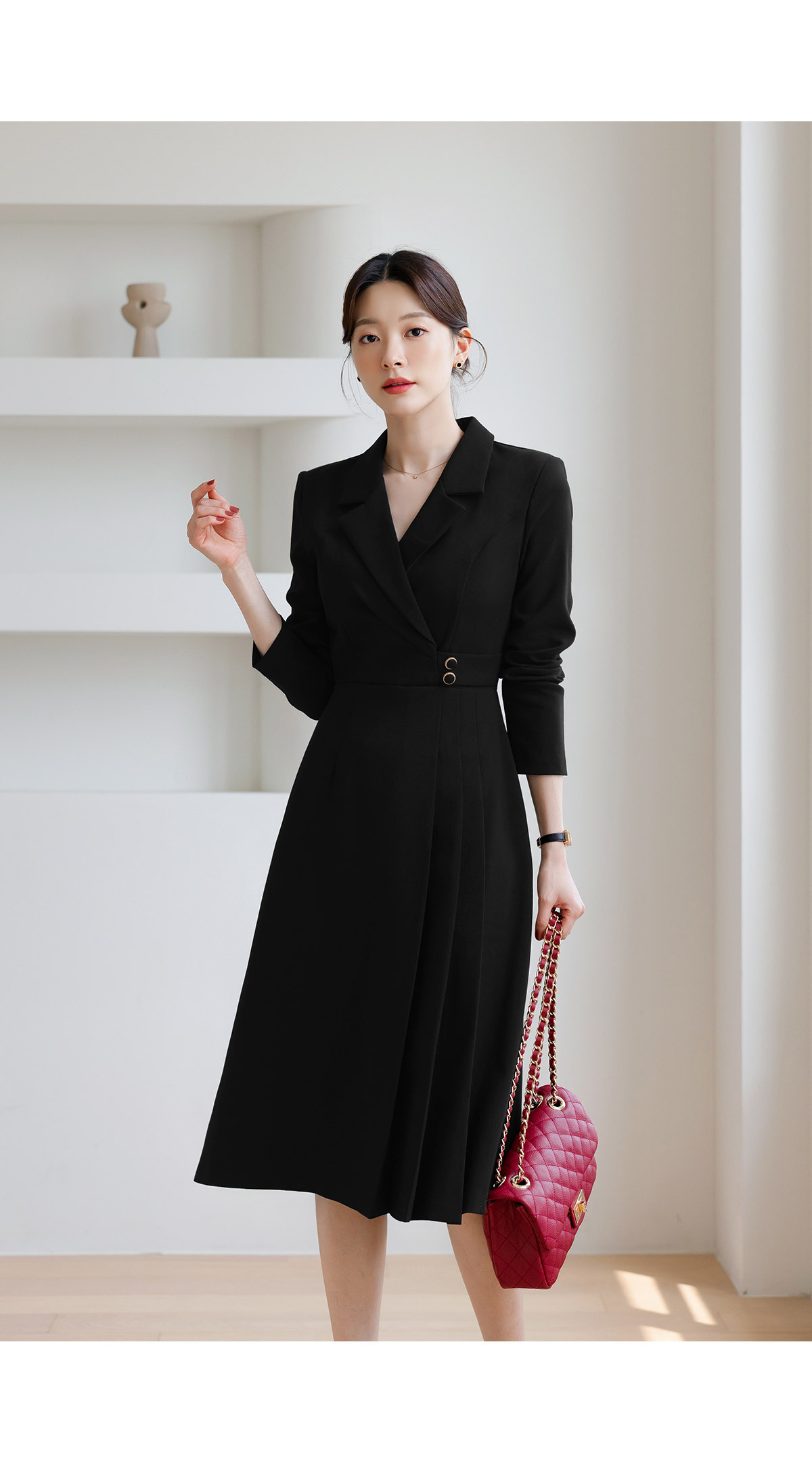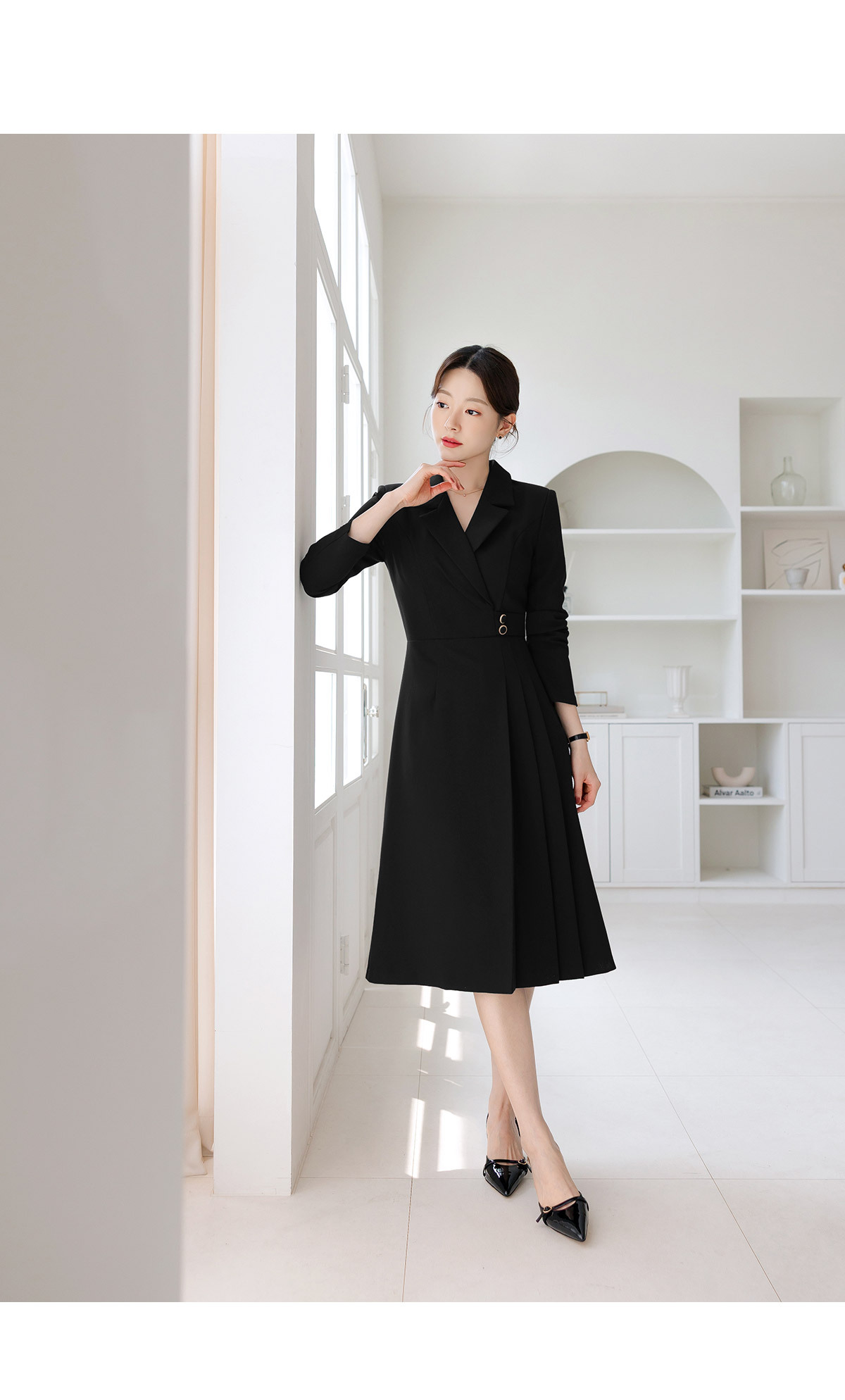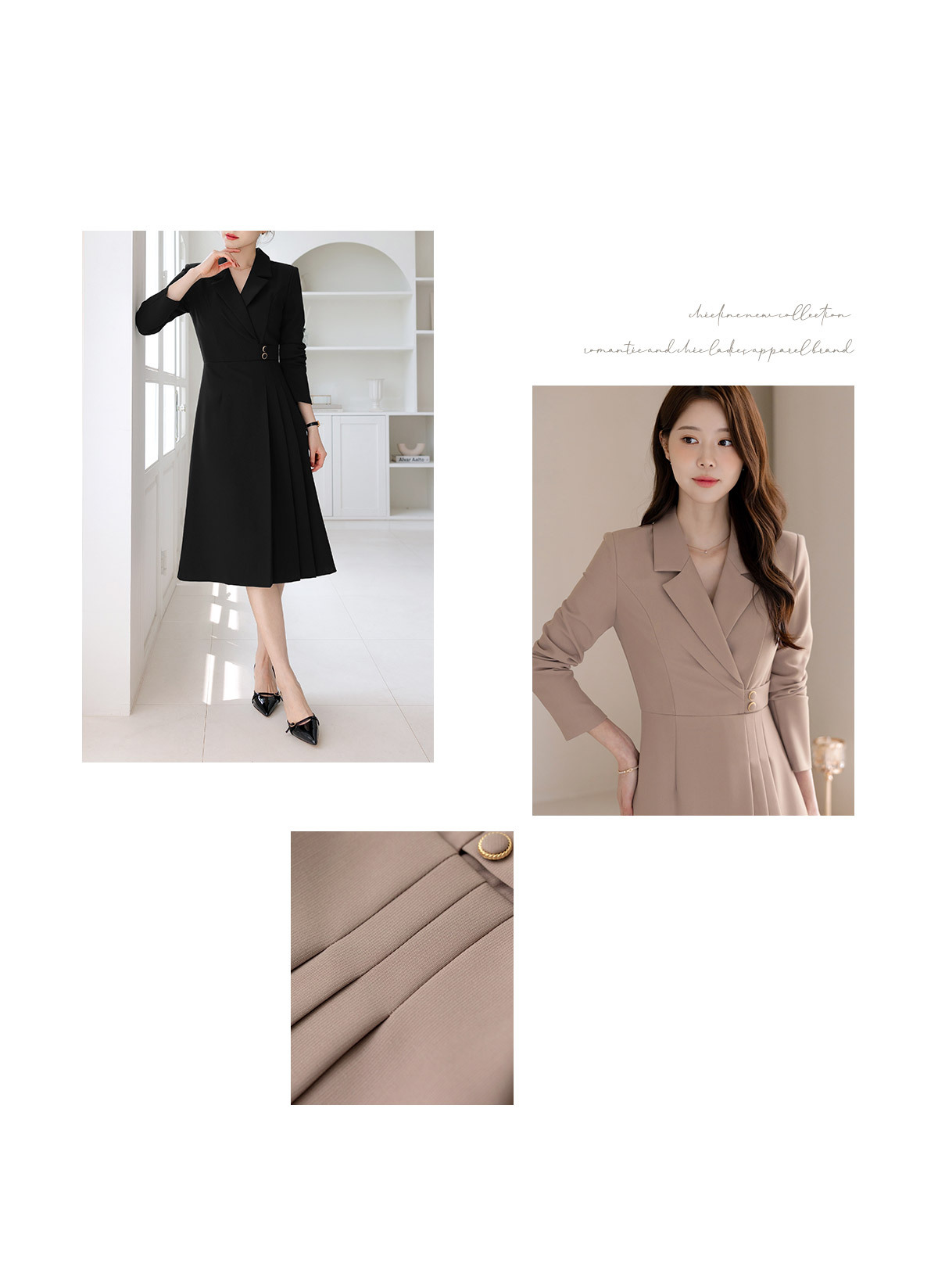 (~XXL까지) 세라인 허리버튼 하프 플리츠 원피스 가을 하객룩 오피스룩 모임룩 격식룩 빅사이즈
