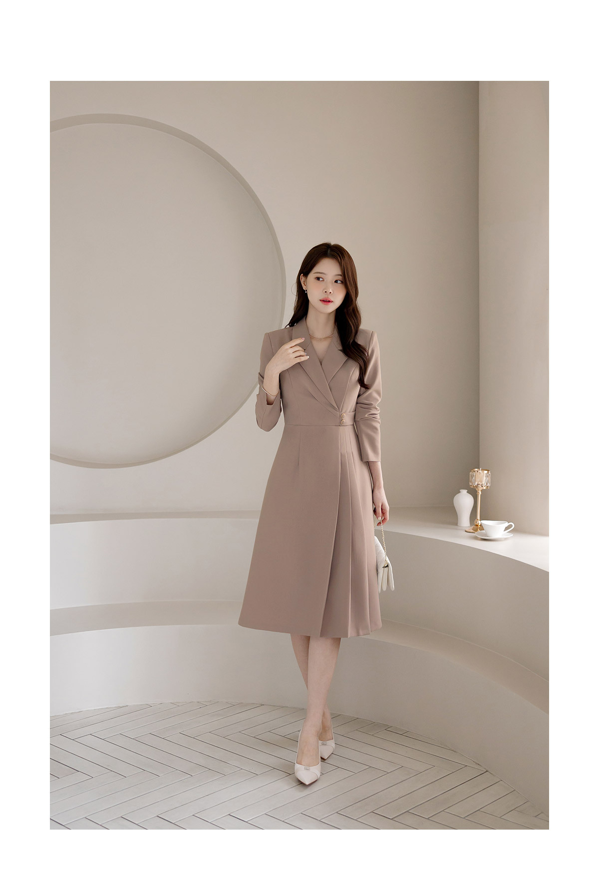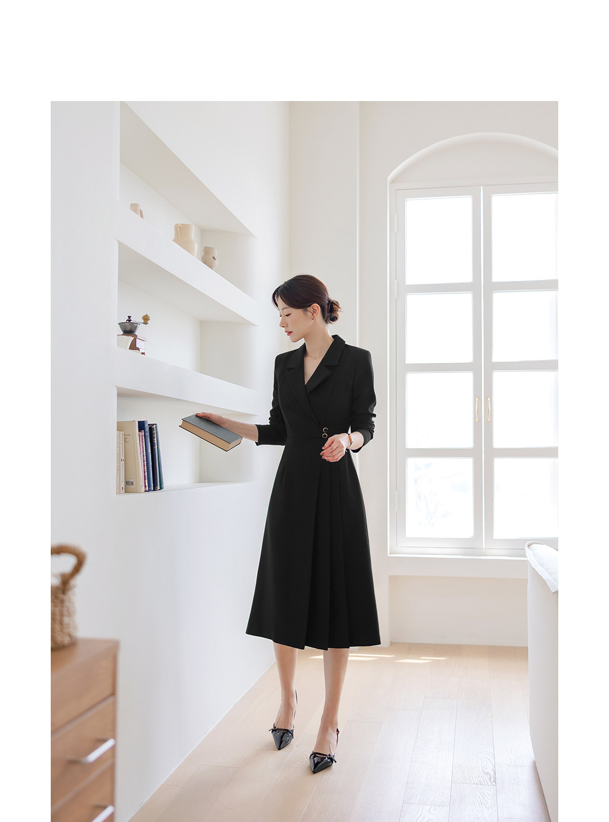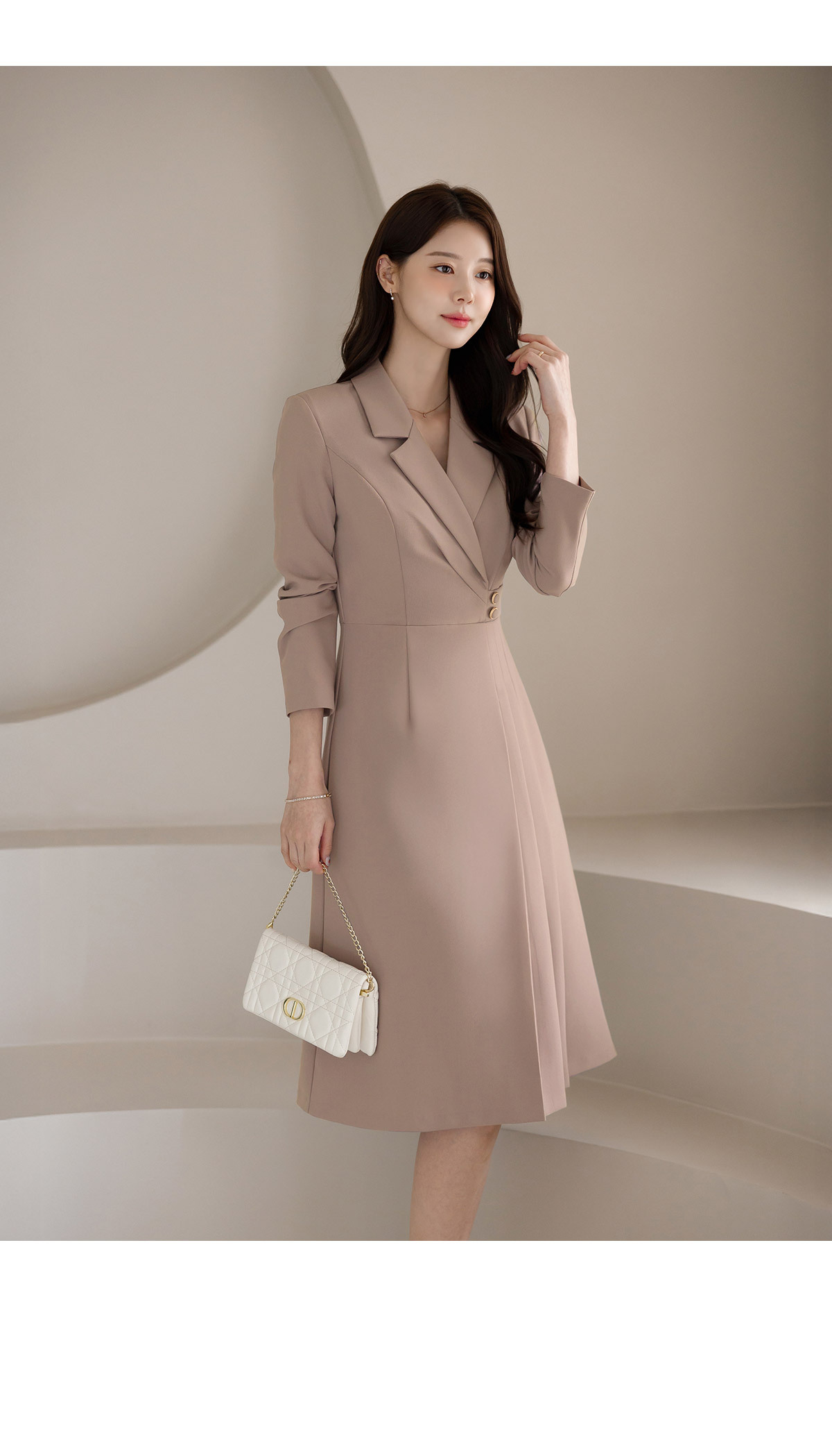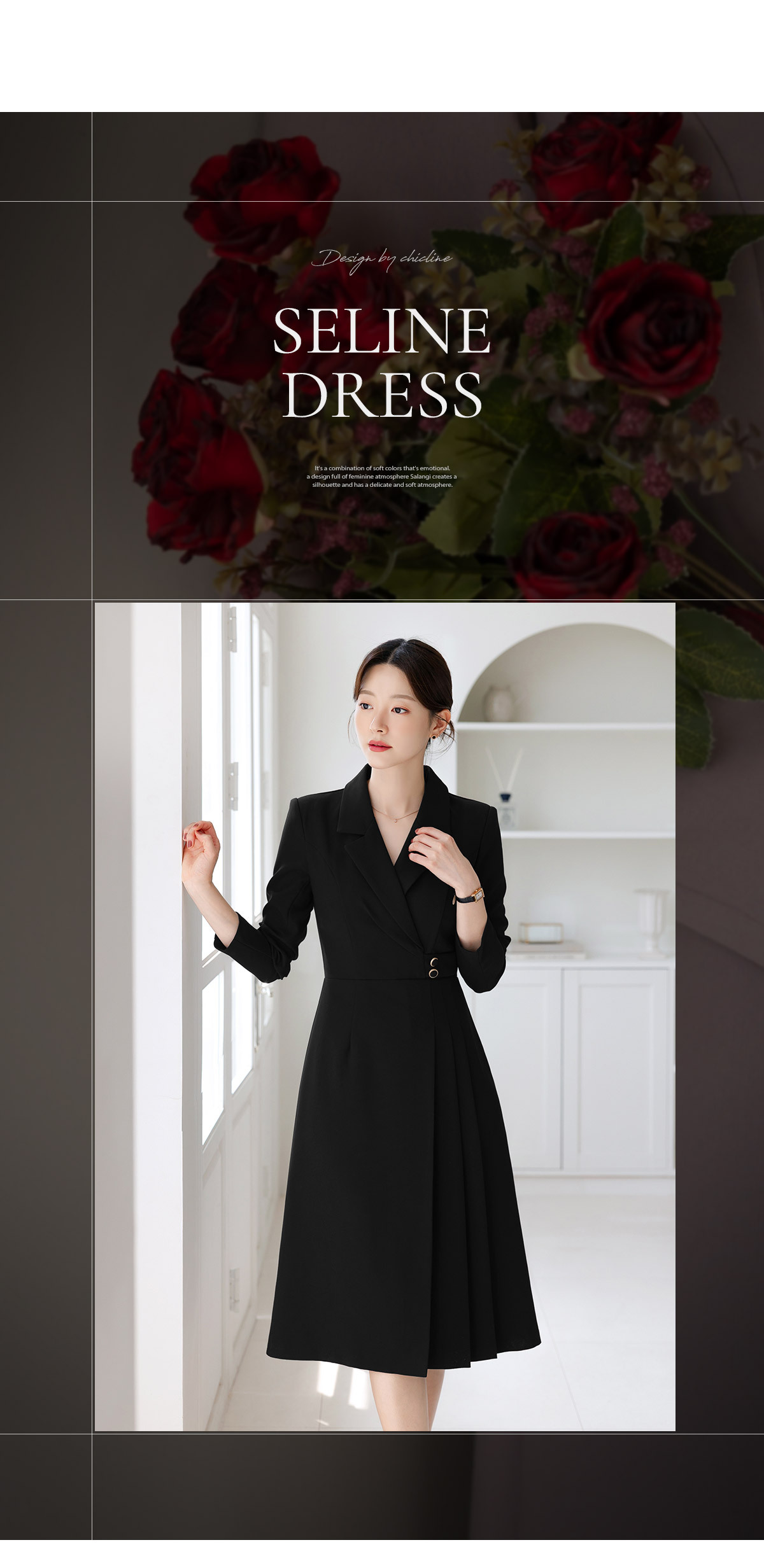 (~XXL까지) 세라인 허리버튼 하프 플리츠 원피스 가을 하객룩 오피스룩 모임룩 격식룩 빅사이즈