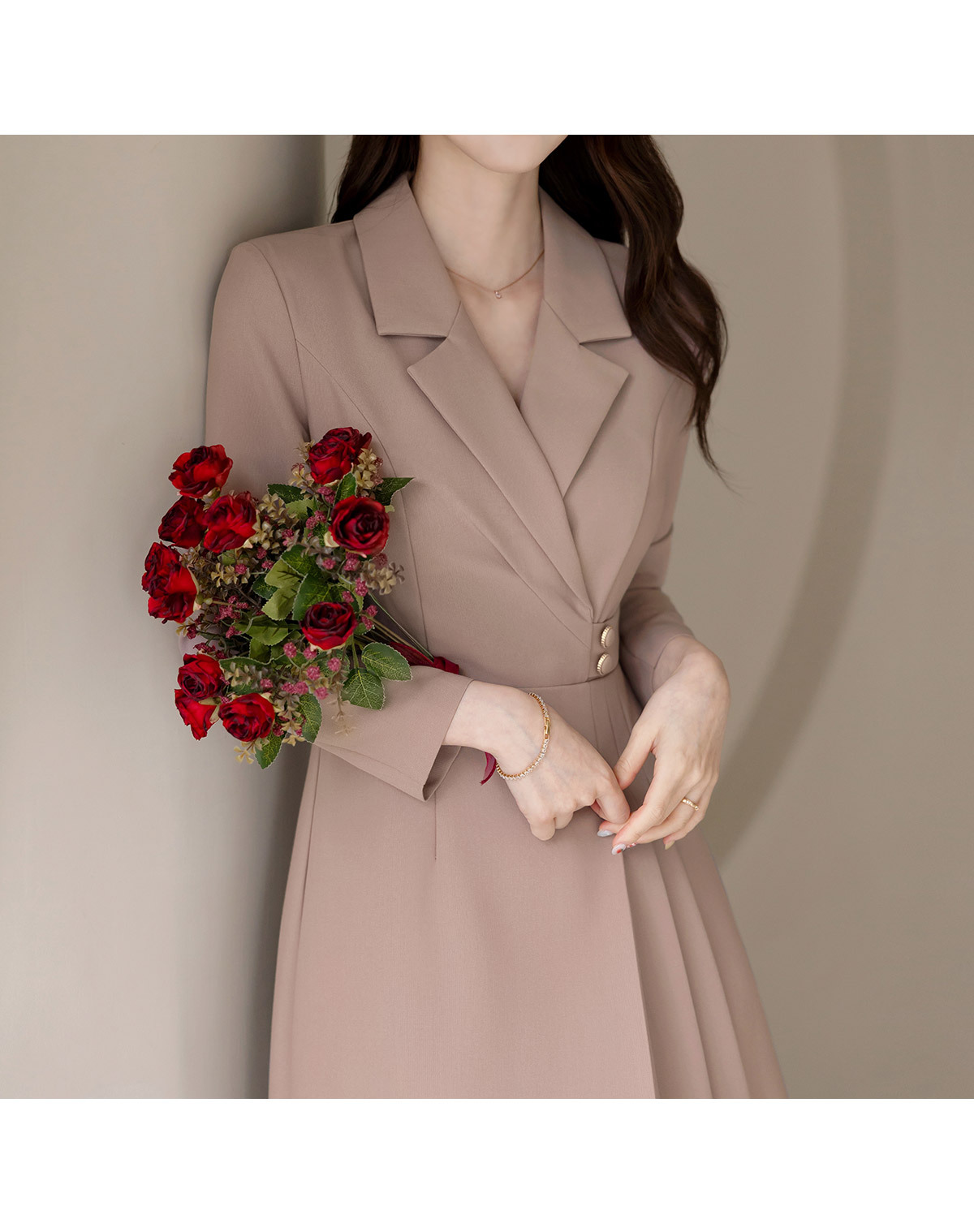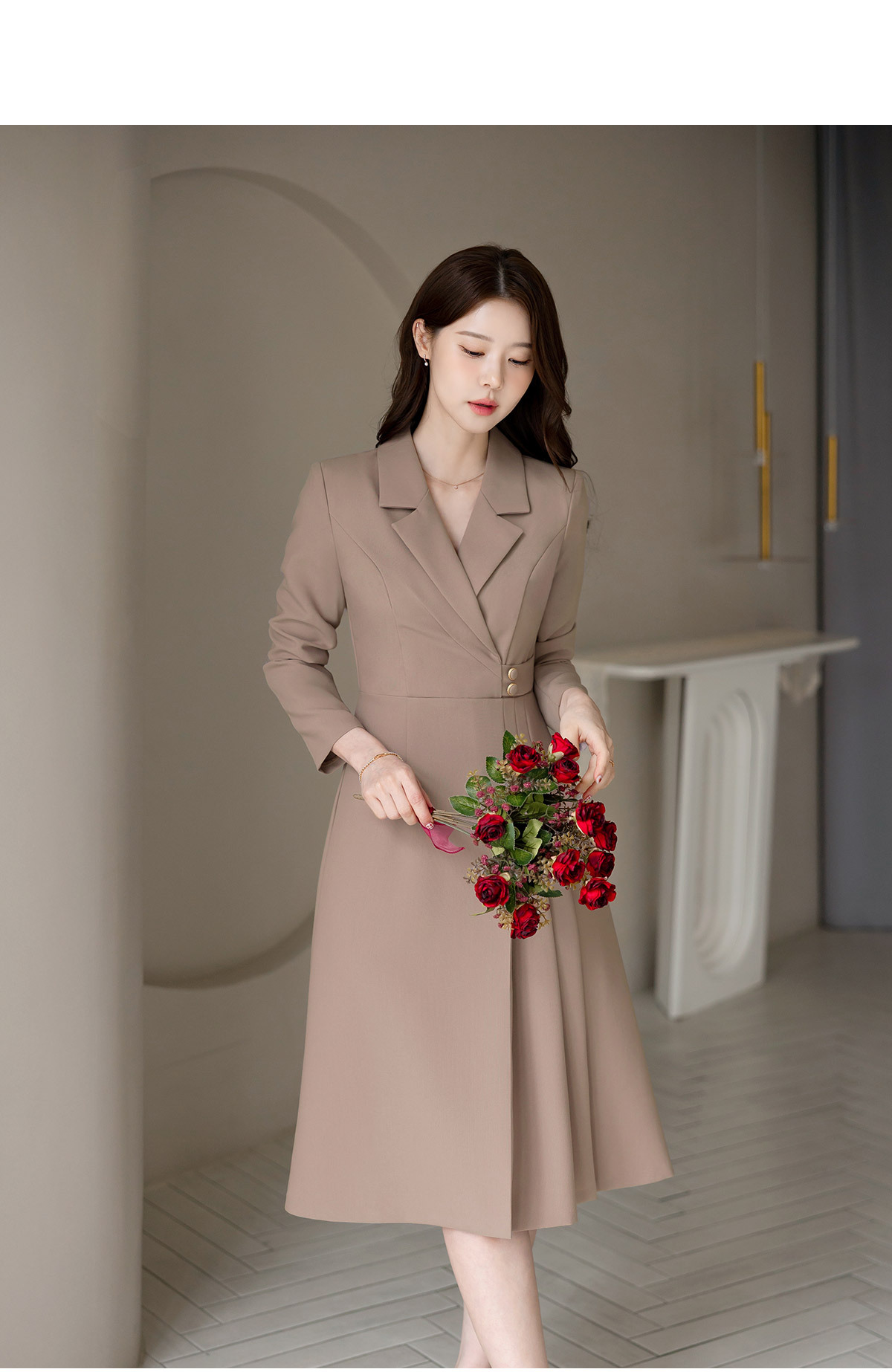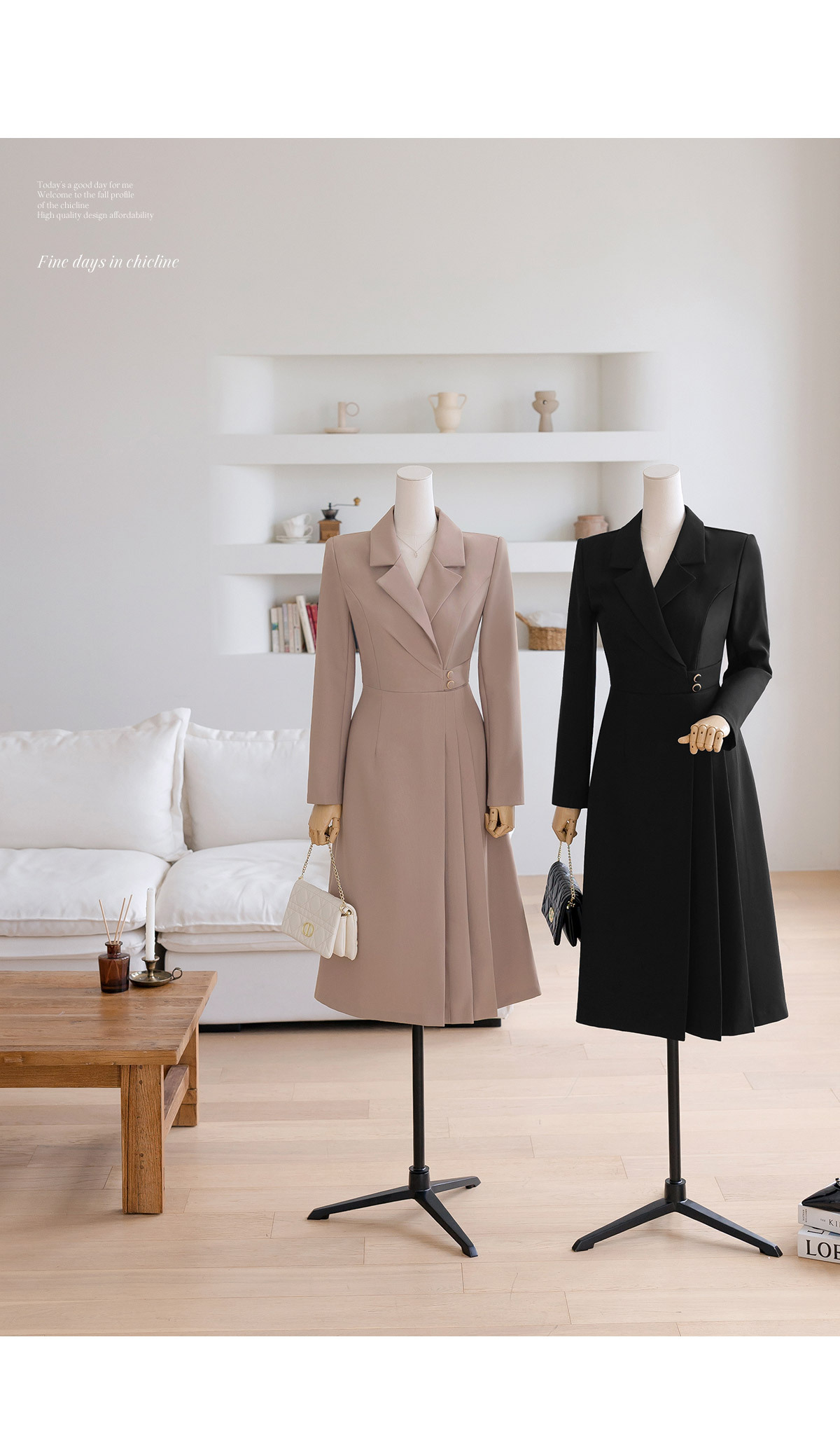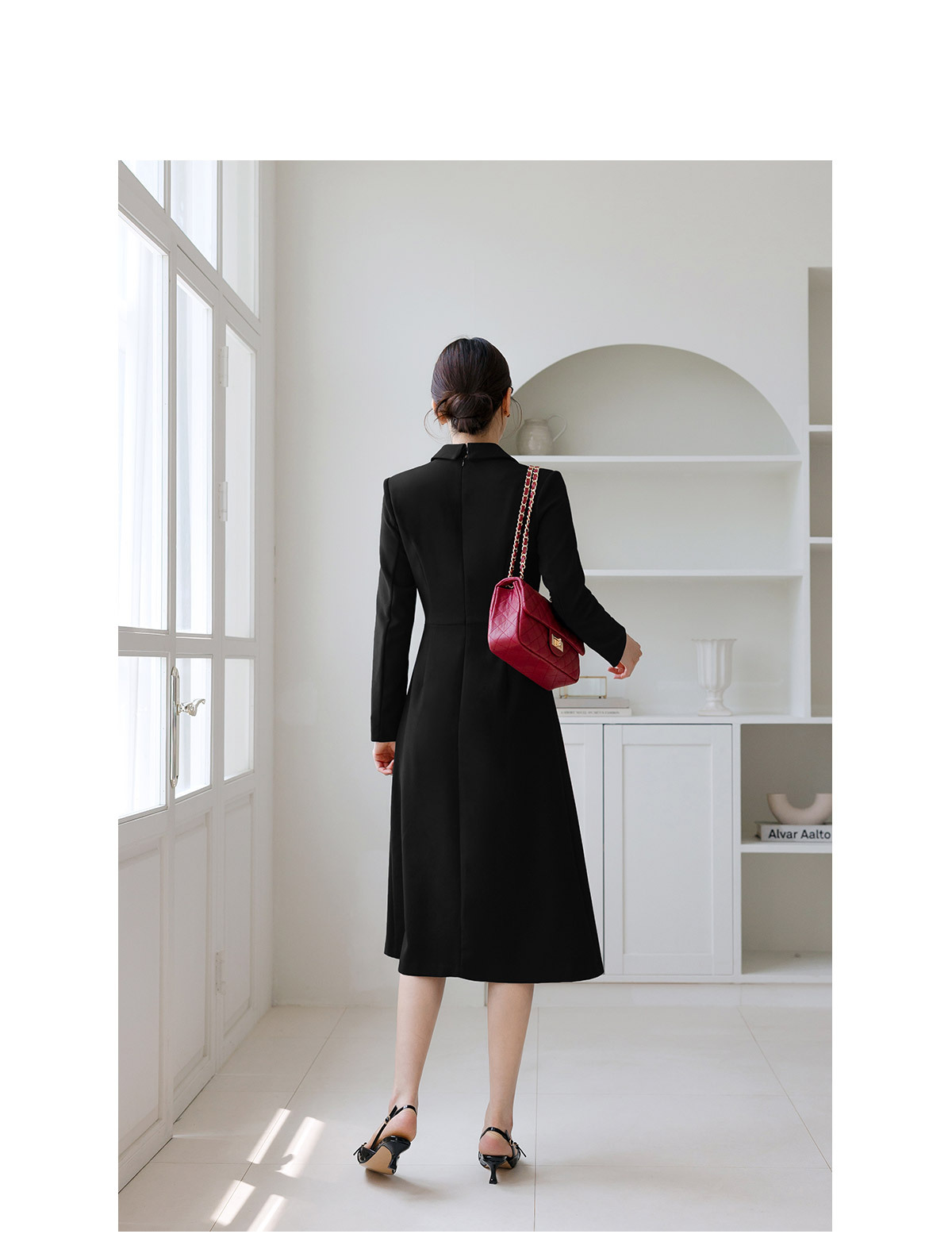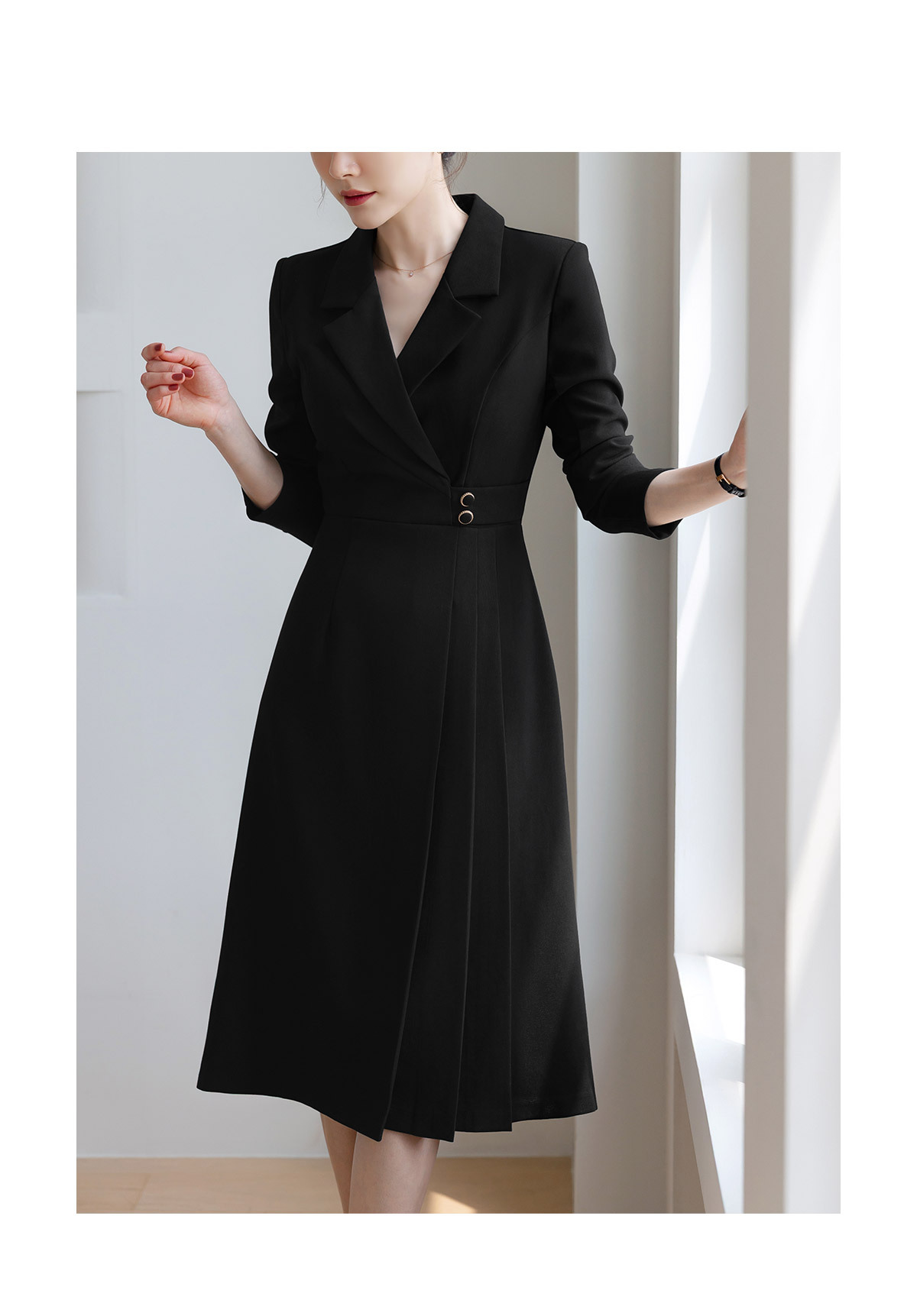 (~XXL까지) 세라인 허리버튼 하프 플리츠 원피스 가을 하객룩 오피스룩 모임룩 격식룩 빅사이즈