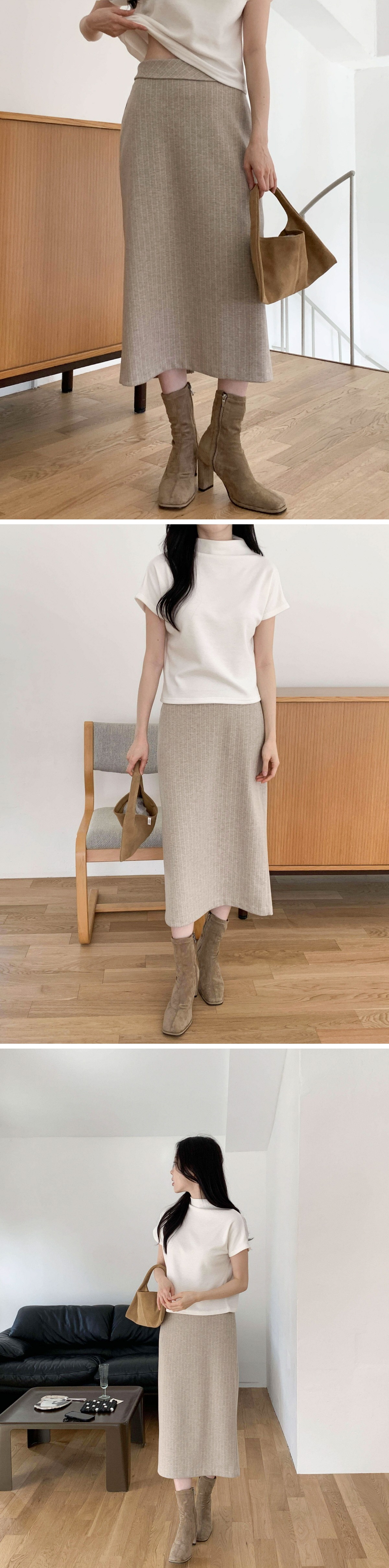 [ 메린블 모직 스트라이프 슬릿 롱 스커트 ]