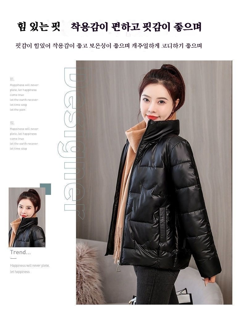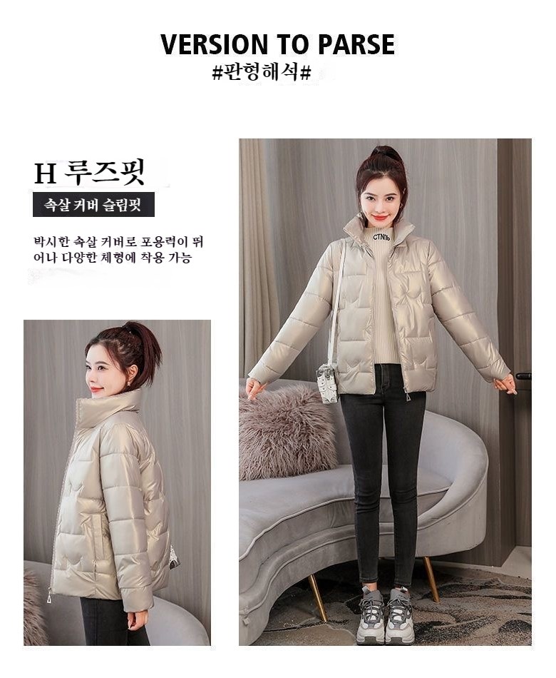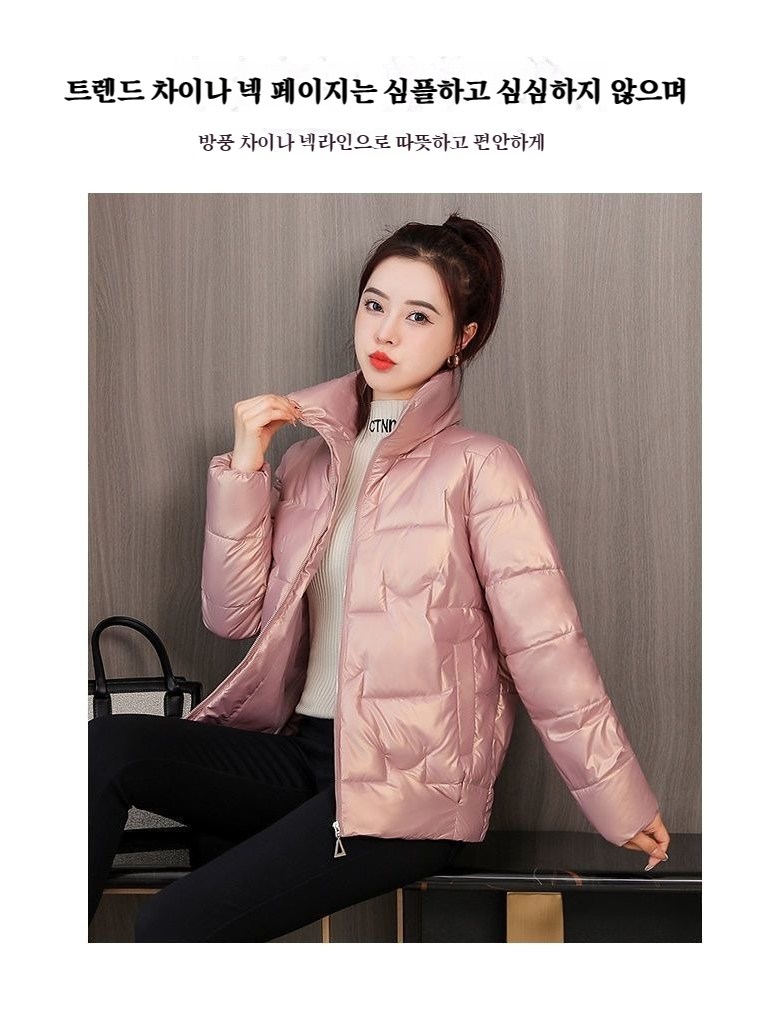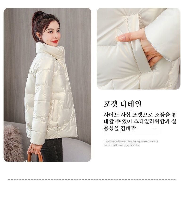 여성 빤딱 유광 캐주얼 숏 패딩 점퍼 경량패딩