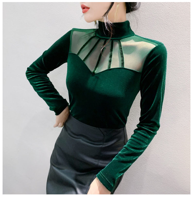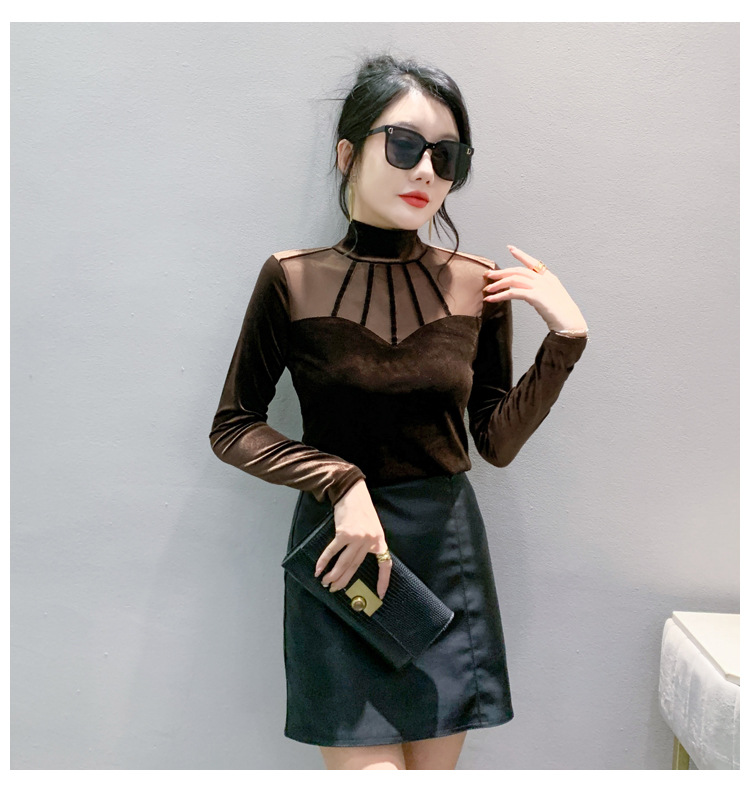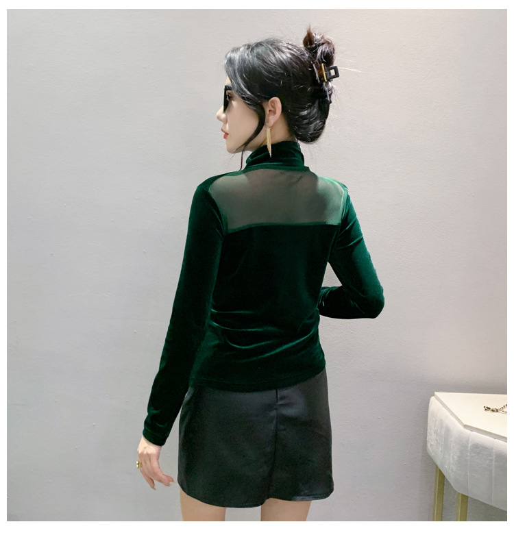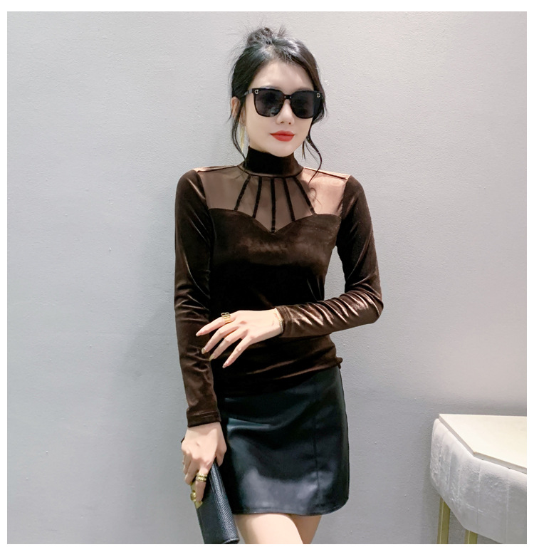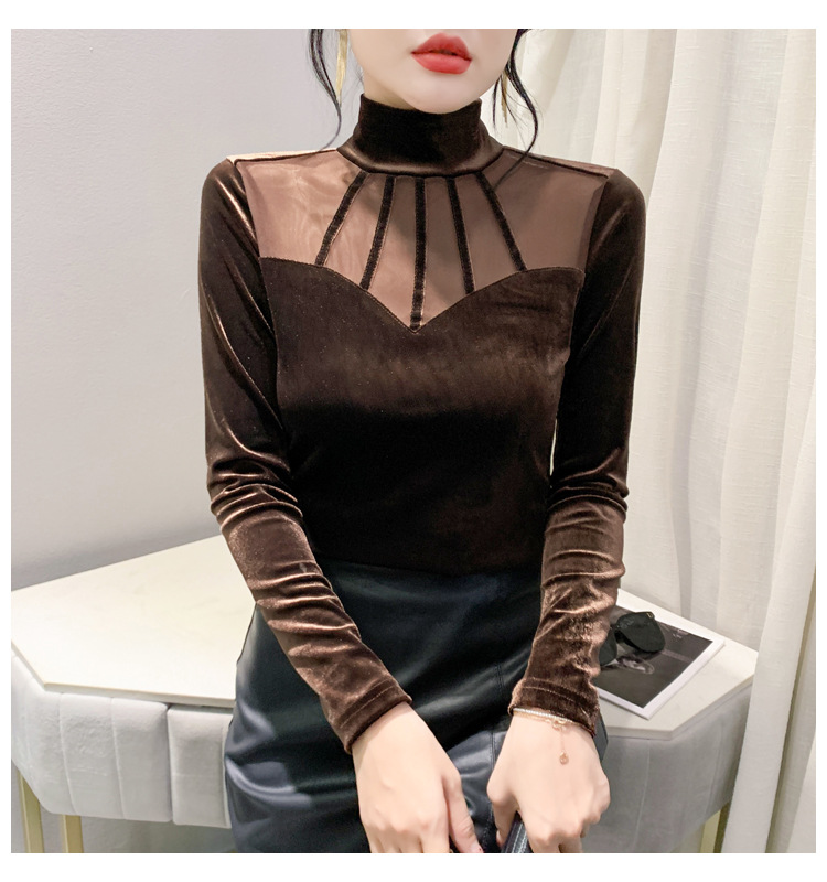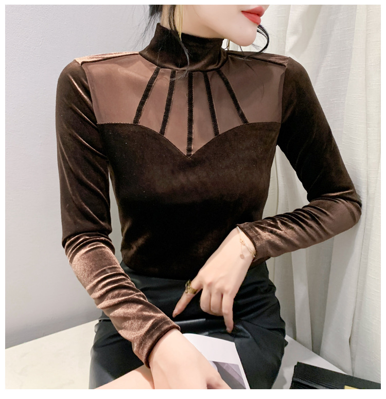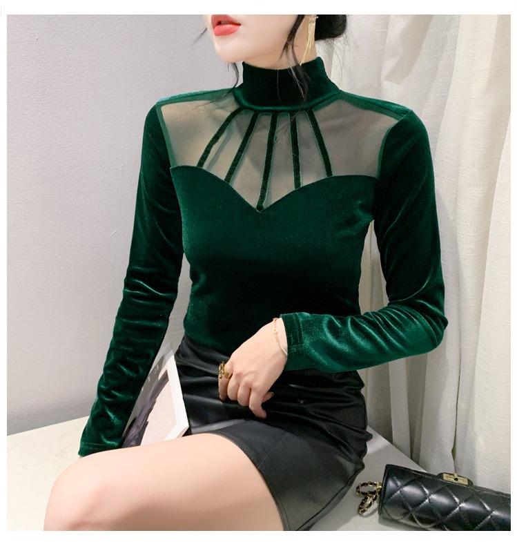 여성 라틴댄스복 사교 무대의상 상의 라인댄스 벨벳 목폴라