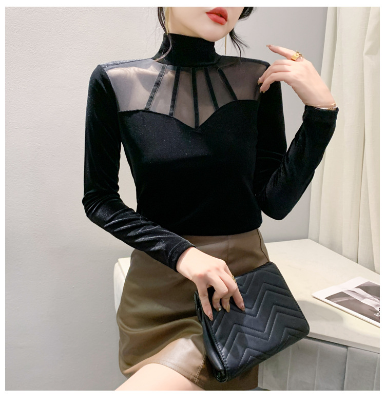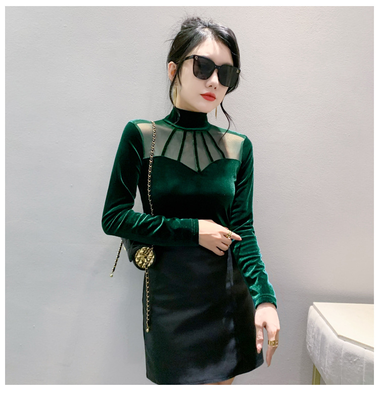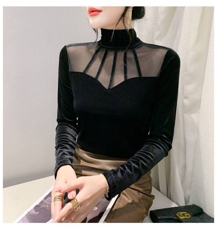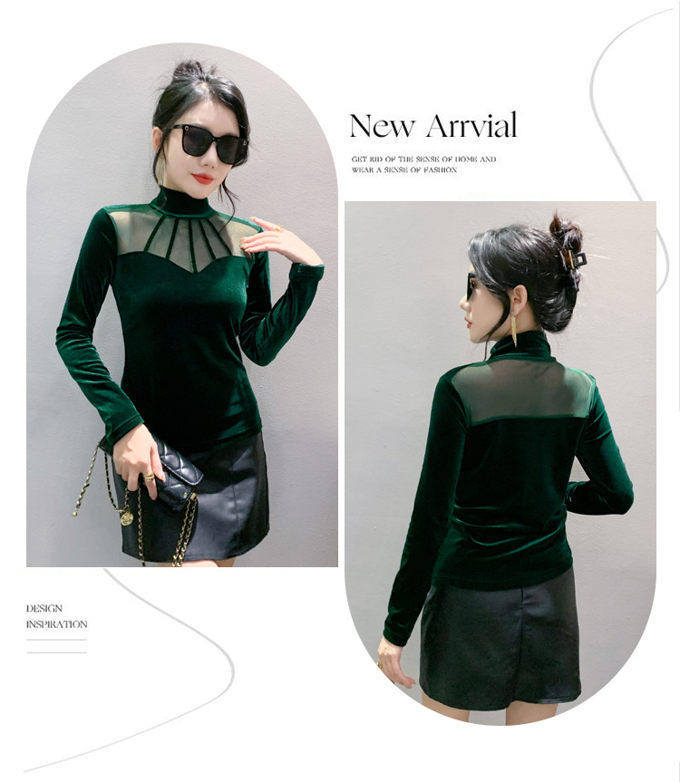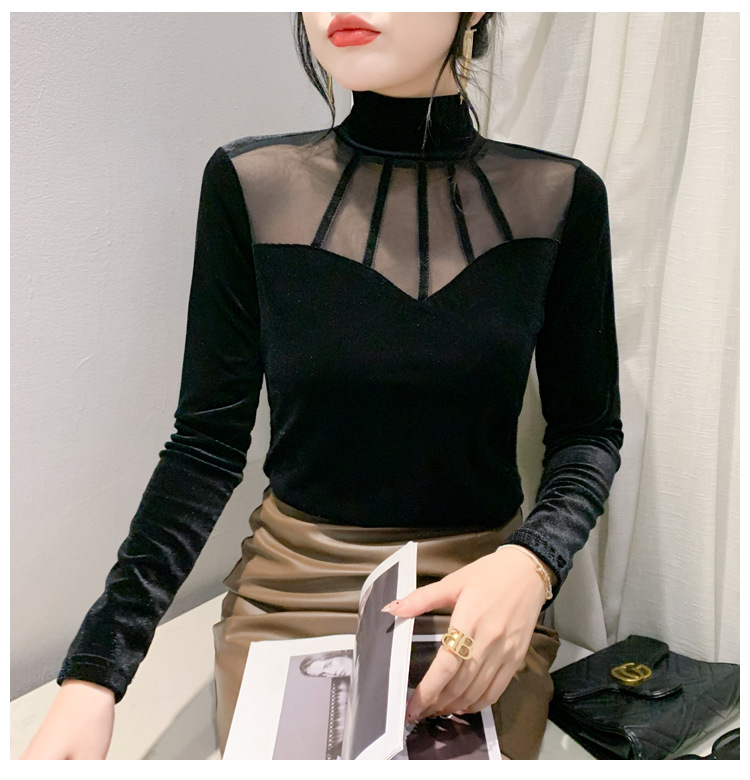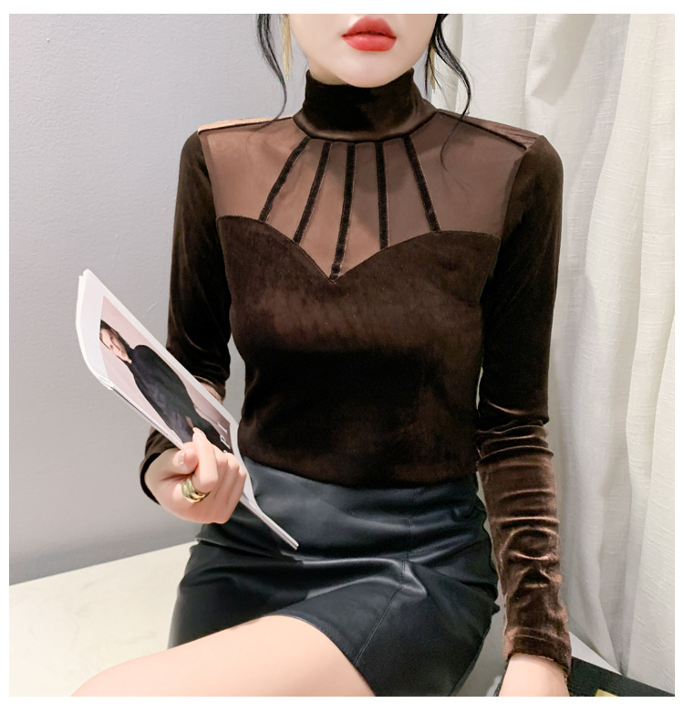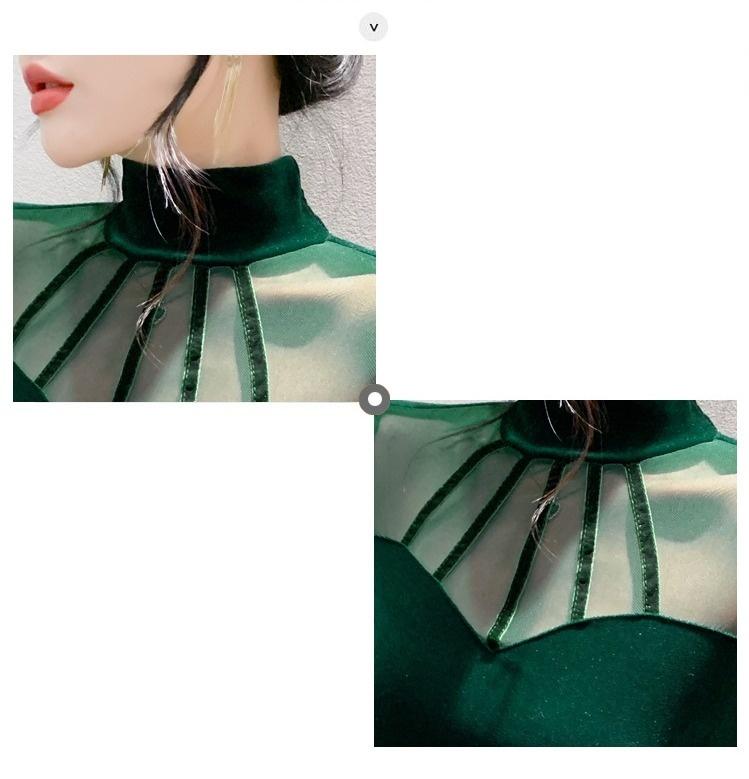 여성 라틴댄스복 사교 무대의상 상의 라인댄스 벨벳 목폴라