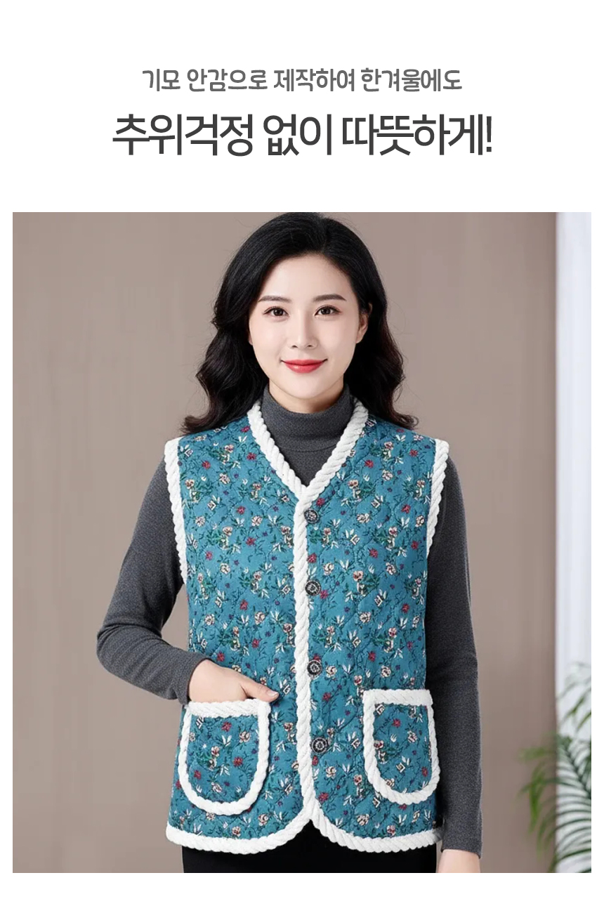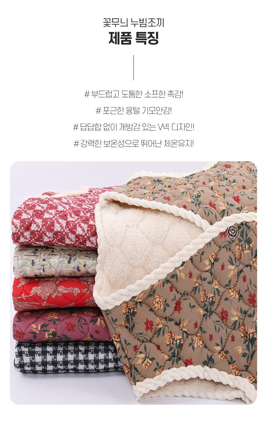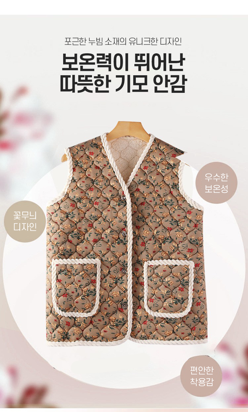 할머니 꽃무늬 조끼 누빔 양털 할매 뽀글이 겨울 촌 시골 캉스 엄마 김장 조끼