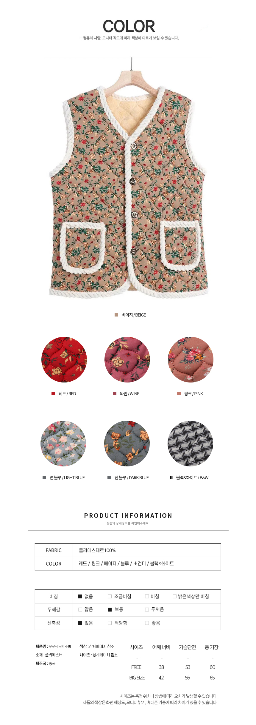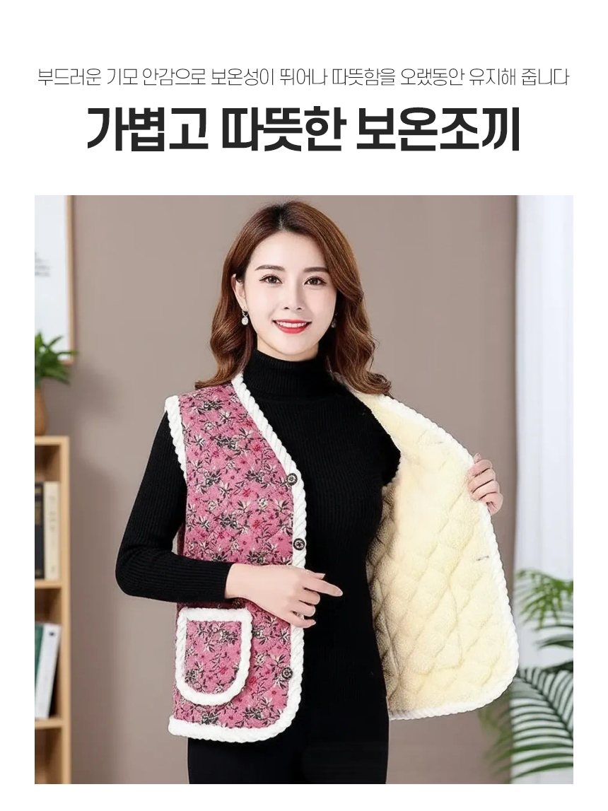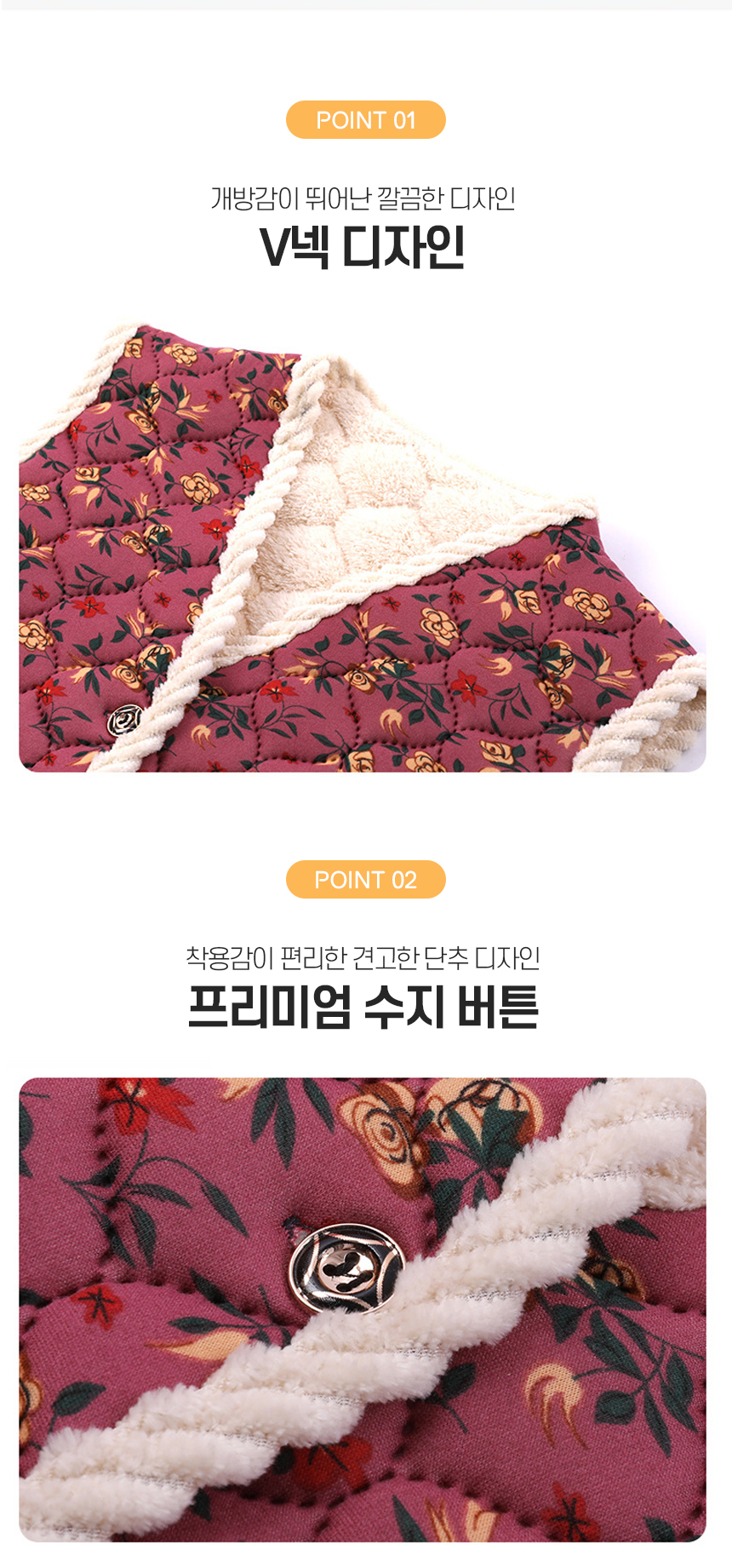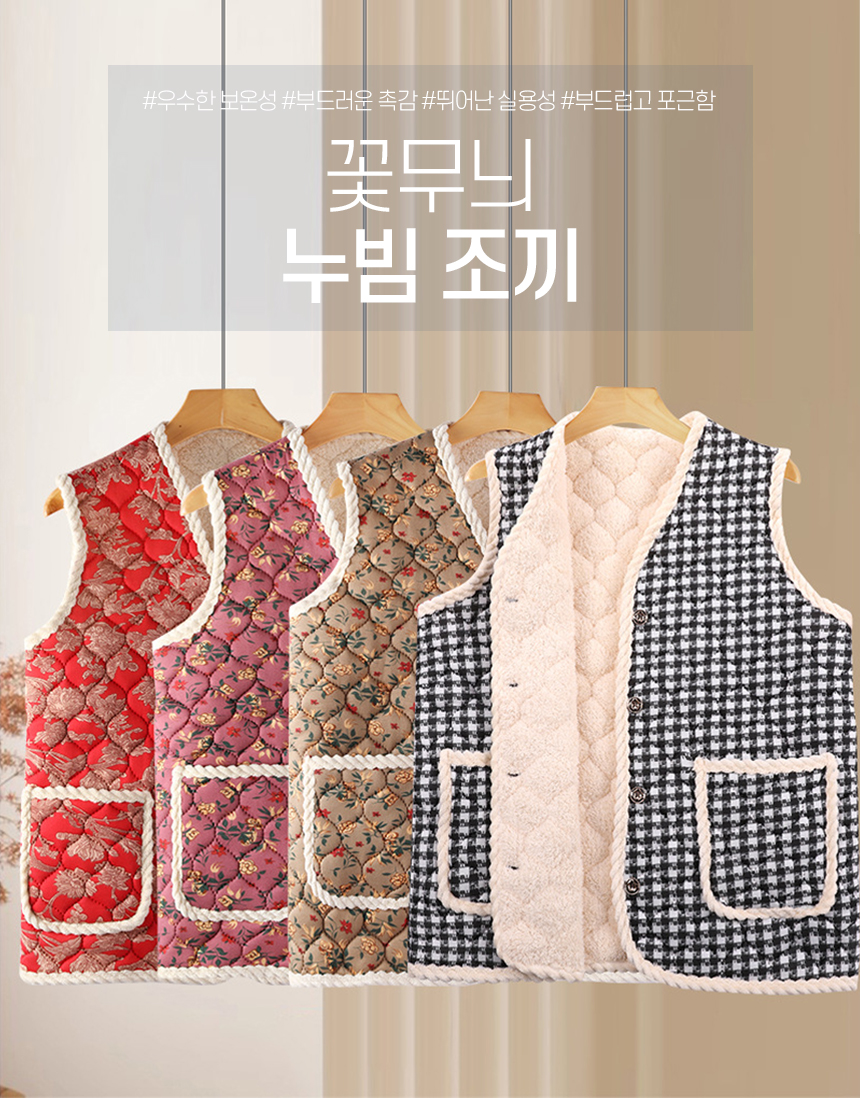 할머니 꽃무늬 조끼 누빔 양털 할매 뽀글이 겨울 촌 시골 캉스 엄마 김장 조끼