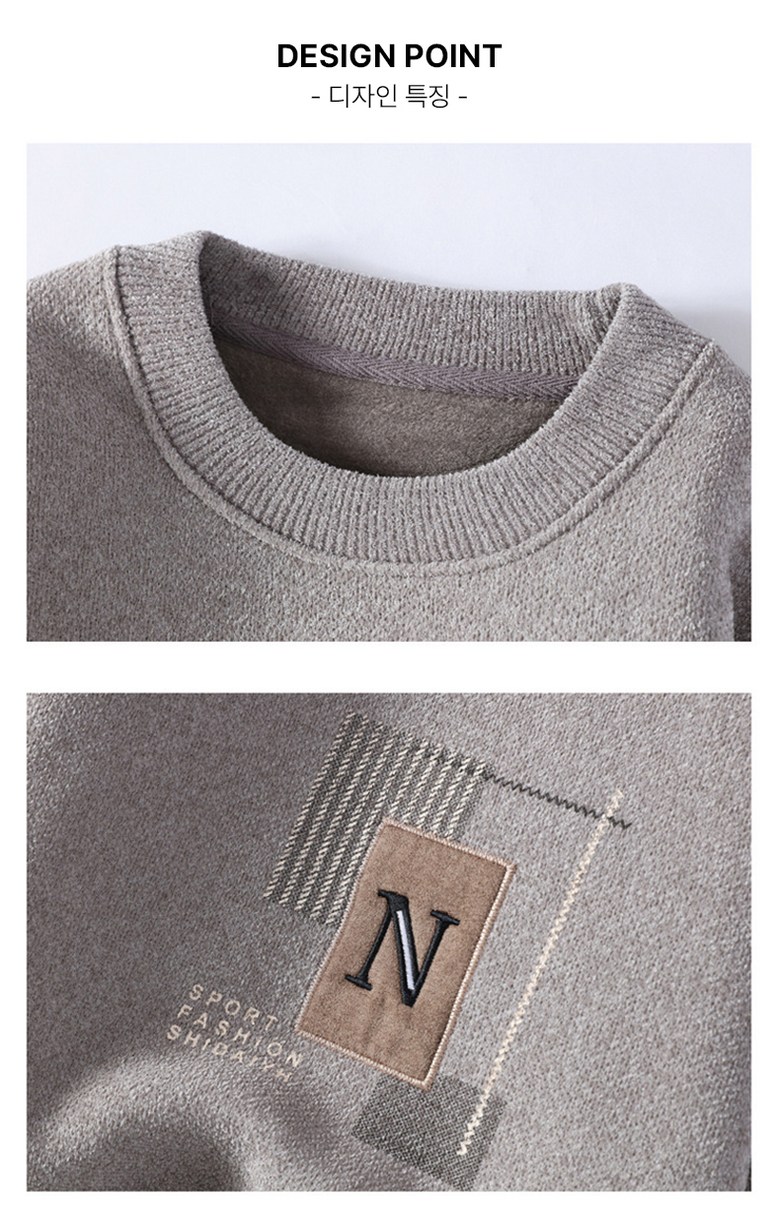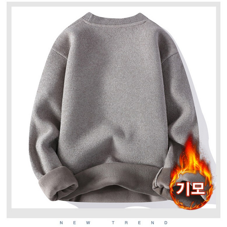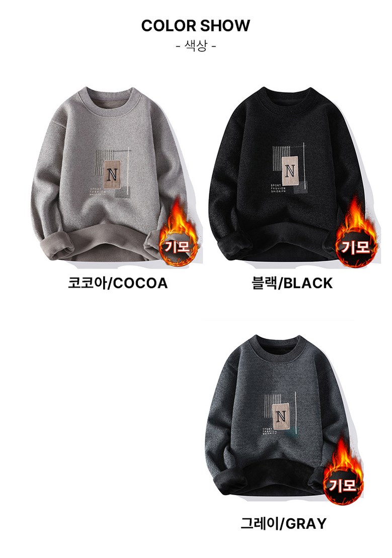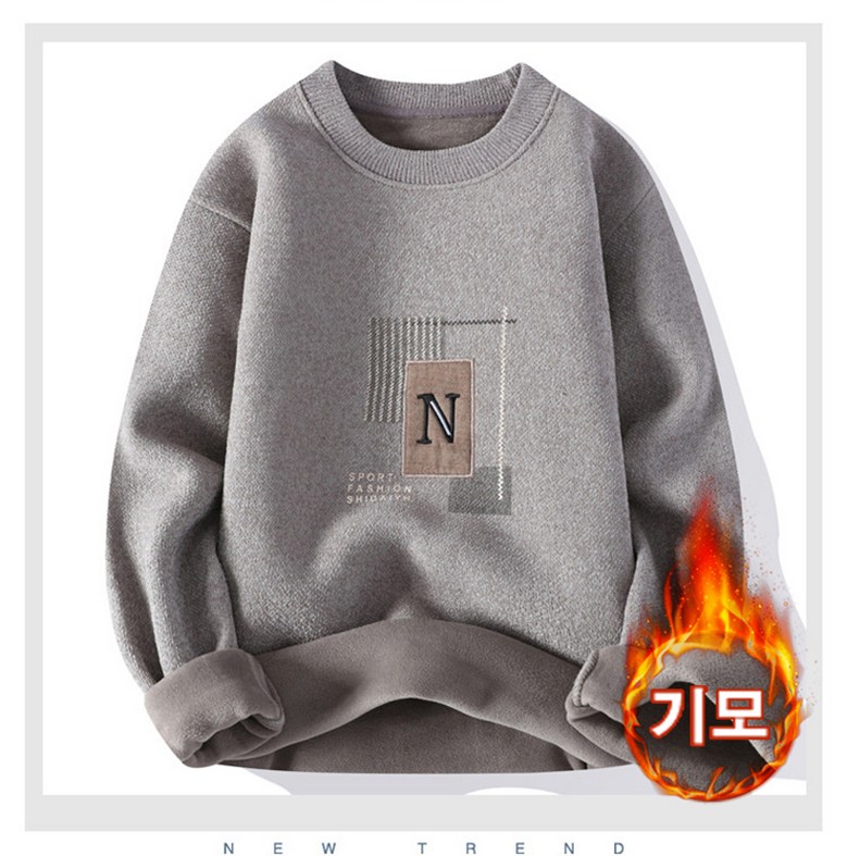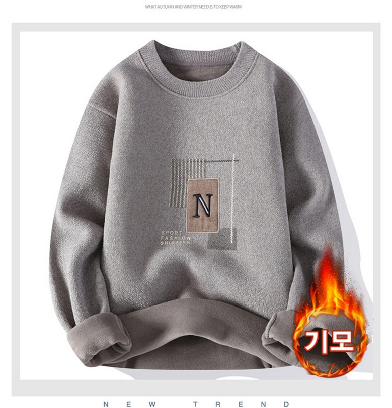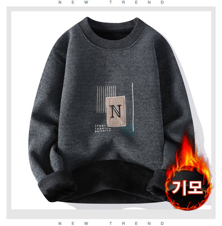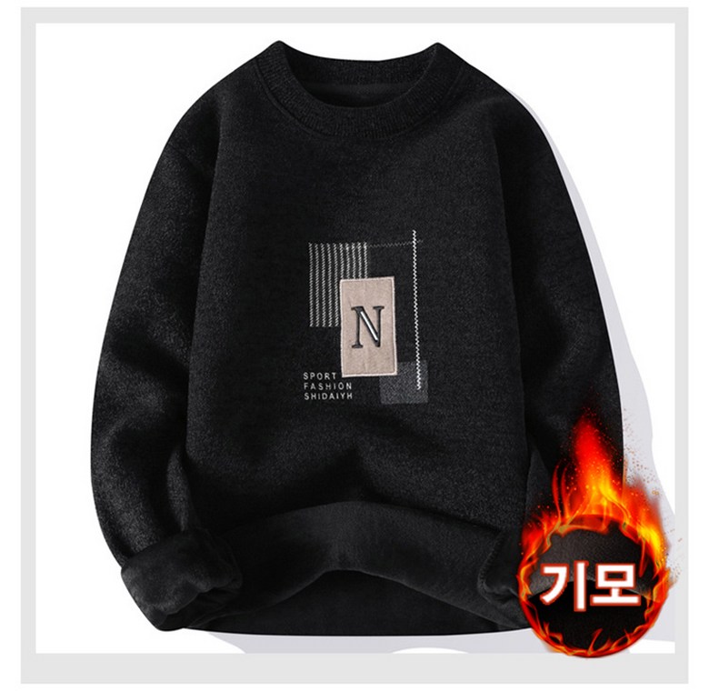 스타일아유 일체 융털 남성 도톰 따뜻한 스웨터 캐주얼 이너 라운드 레터링 기모 니트 KN1854