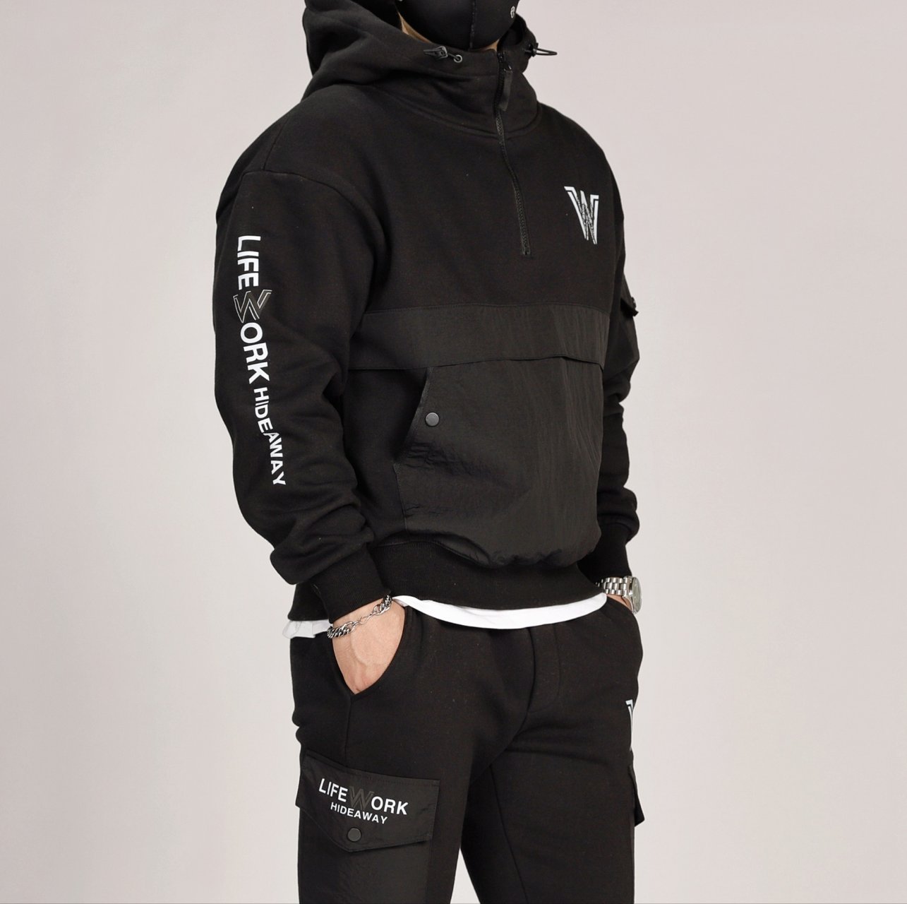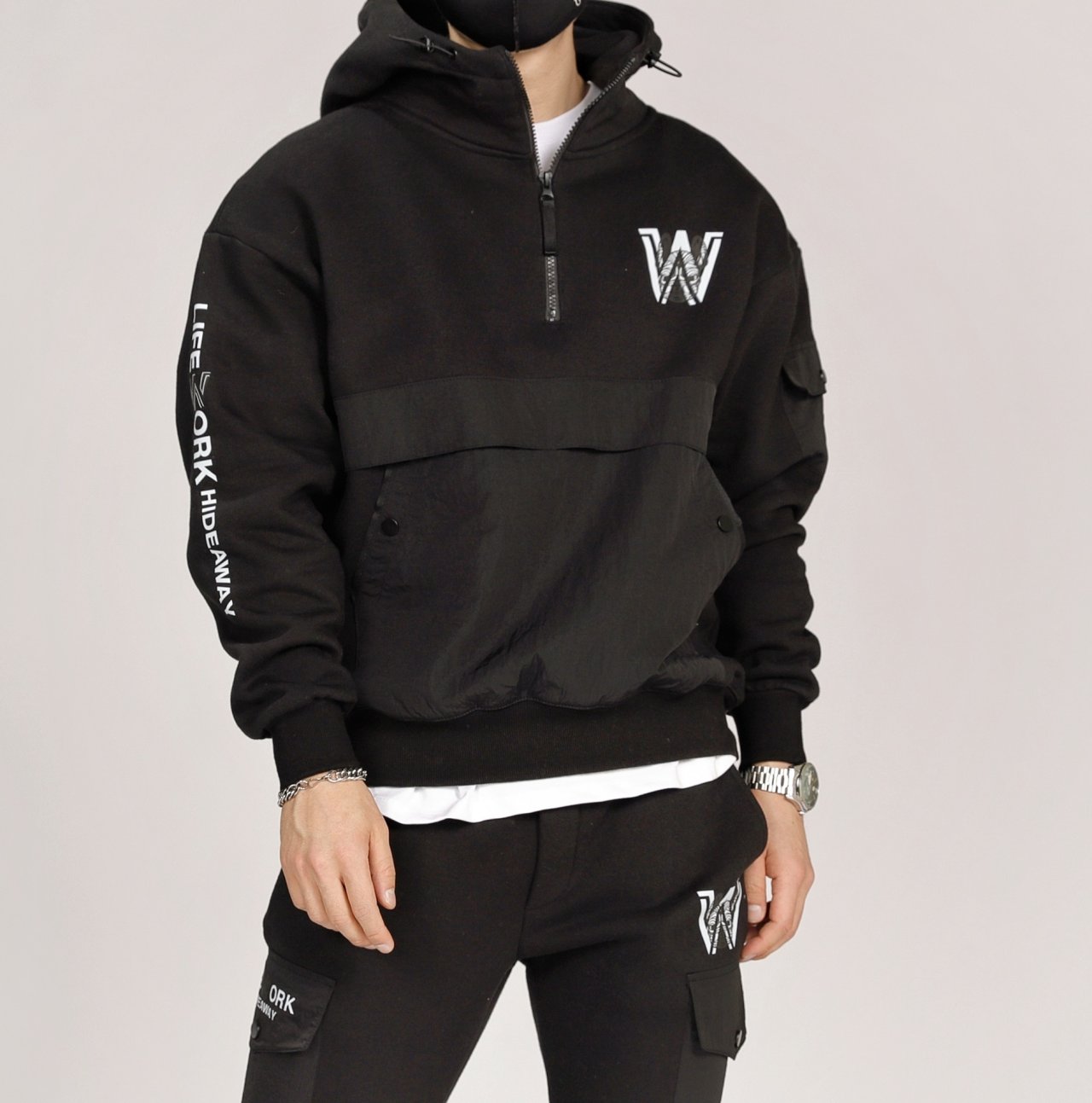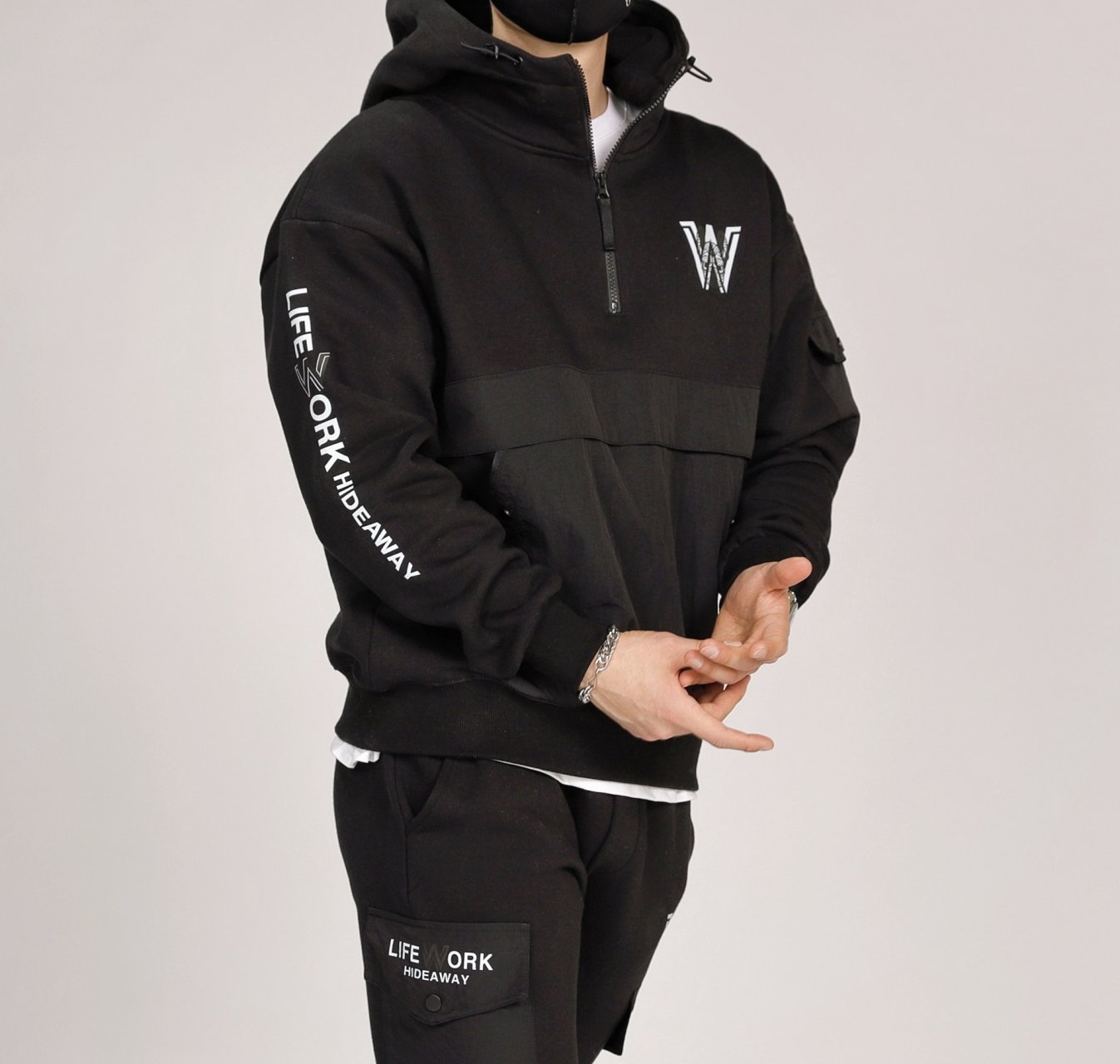 라이프워크 IW 3단 헤비 반집업 후드 기모 트레이닝복 세트 - 가을 겨울 신상(남여공용)