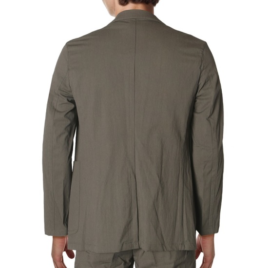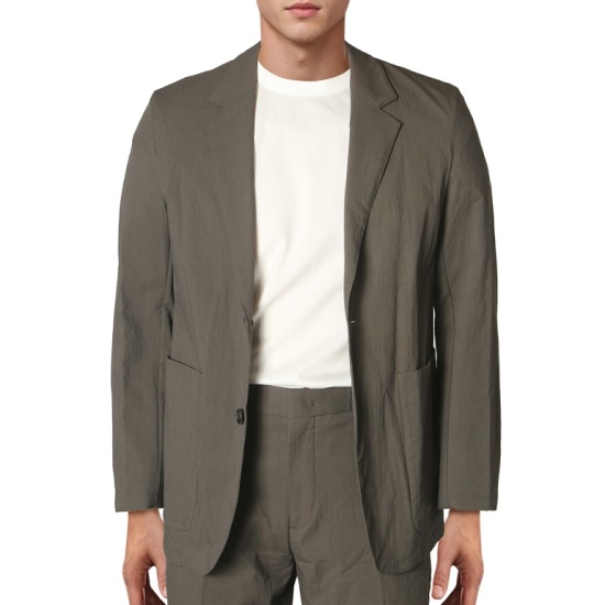 기본 원단이 아닌 표면에 텍스쳐가 입혀져 있어 밋밋함을 잡아주고 캐주얼한 느낌도 가져갈 수 있는 수트로