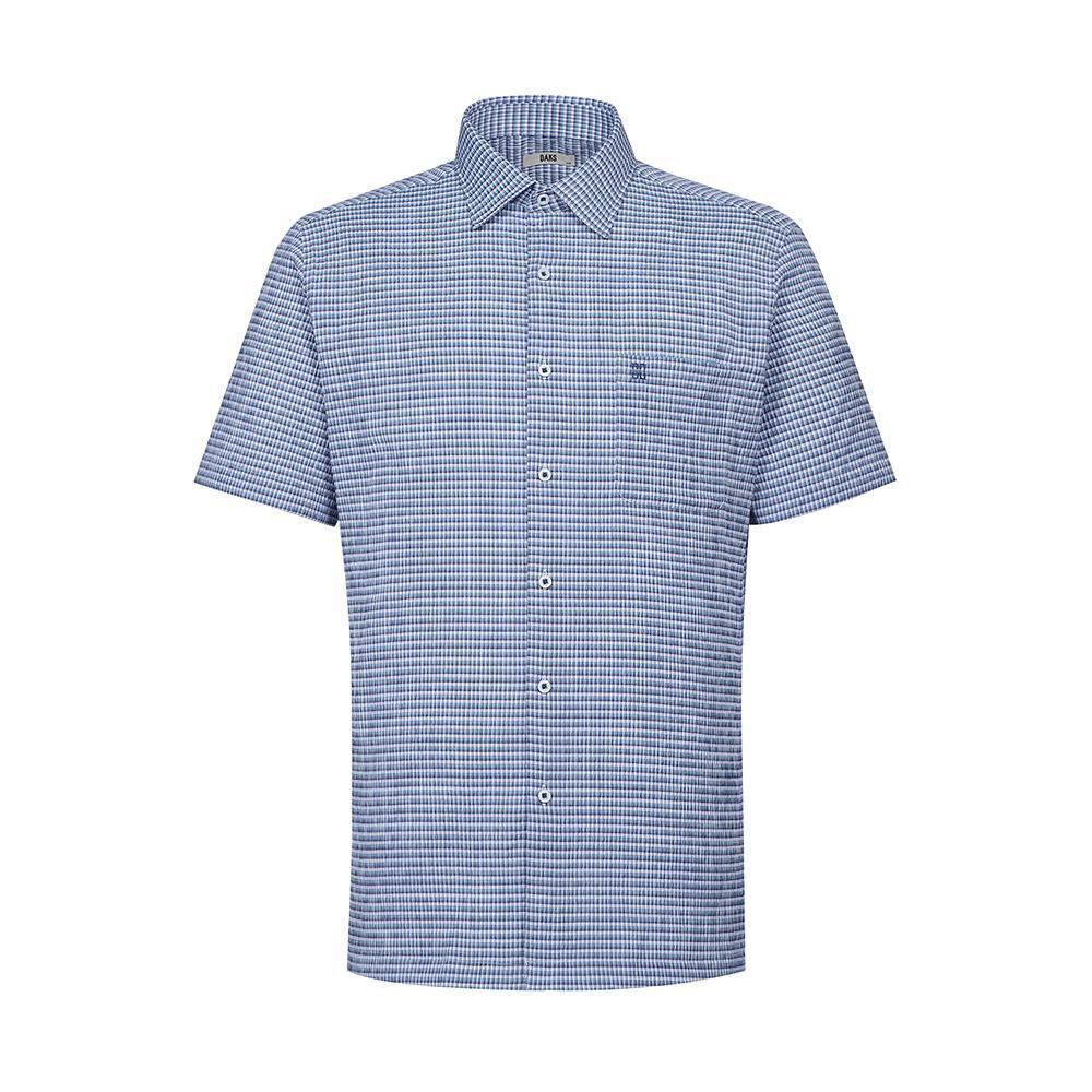 마이크로 체크 반팔셔츠 레귤러핏 블루