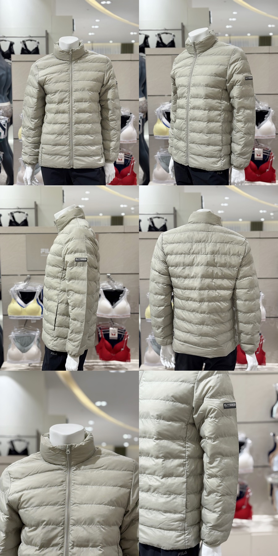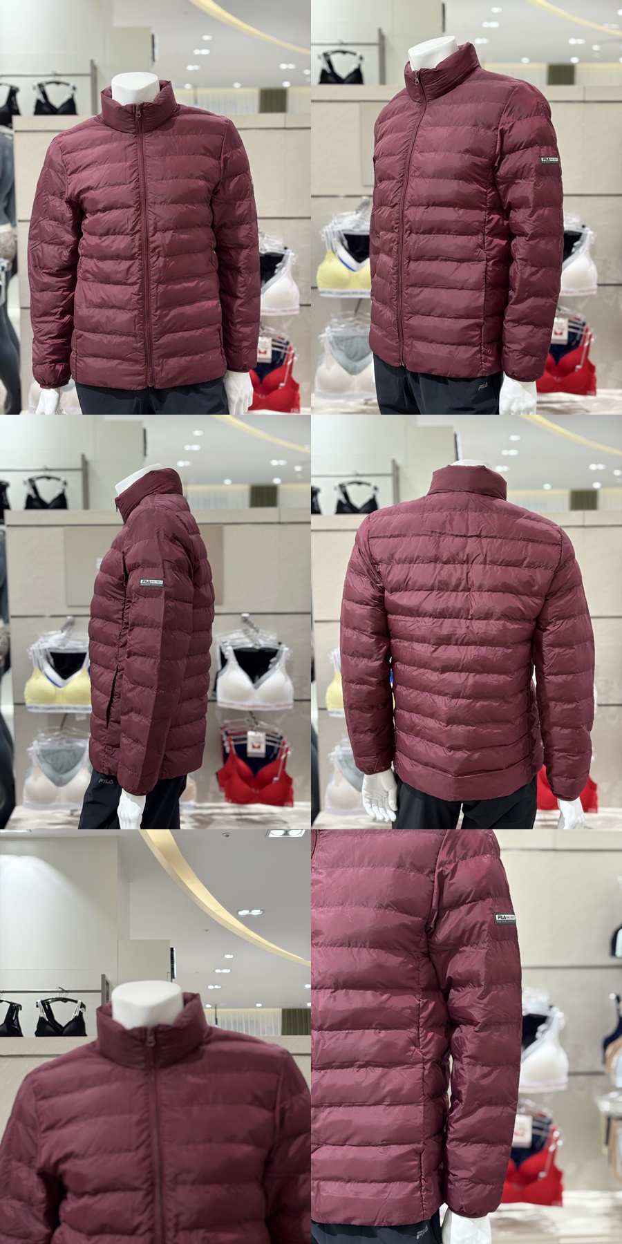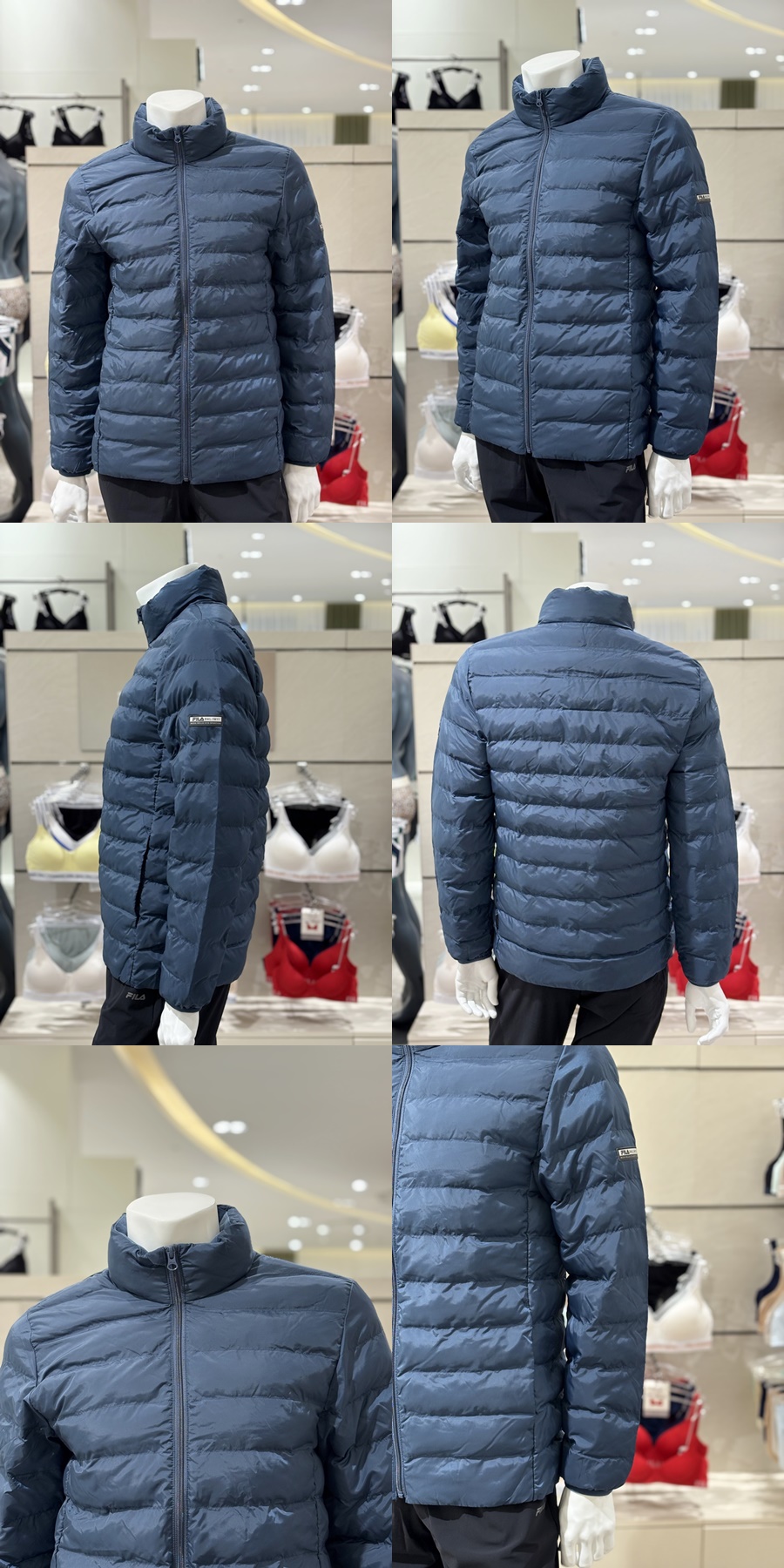 사각패턴이 자카드 된 고밀도 경량 원단과 친환경 기능성 충전재를 사용한 남성 하프넥 경량패딩입니다.