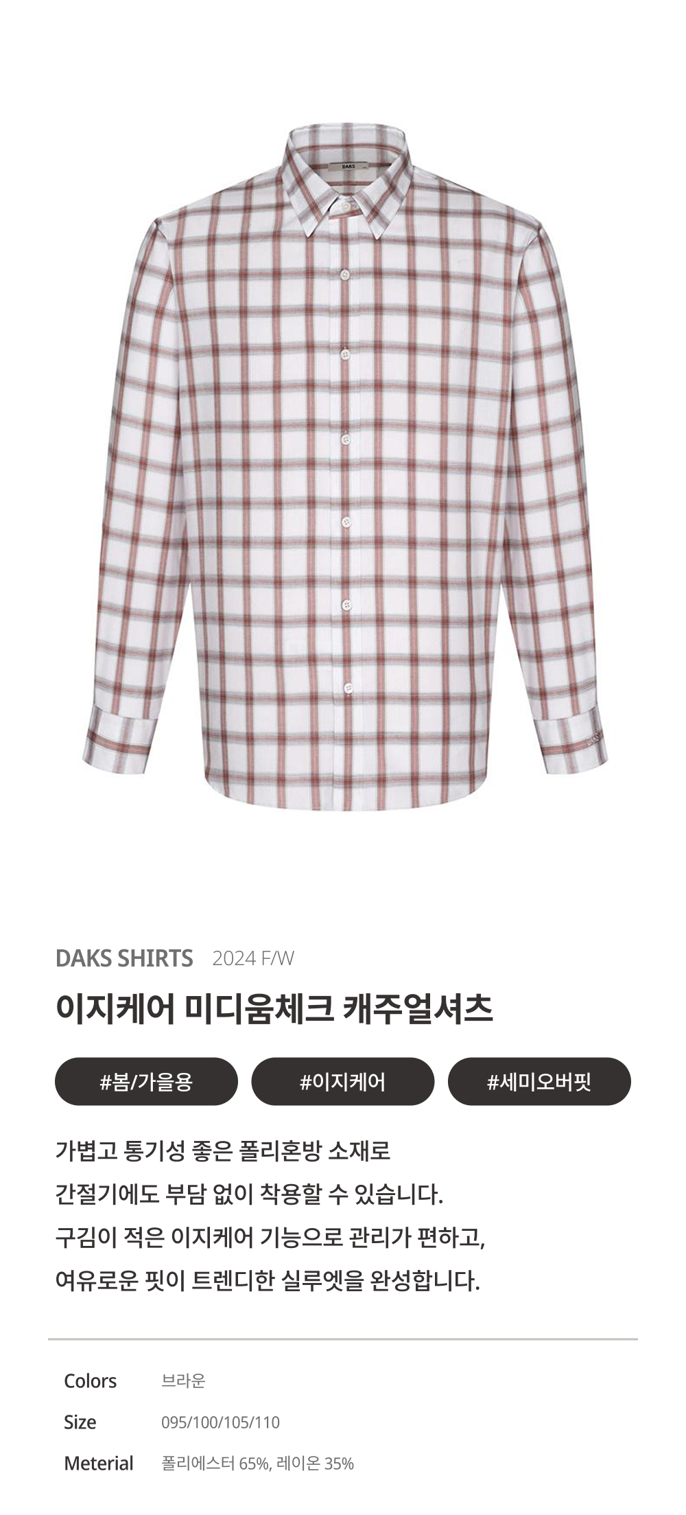 닥스폴리혼방 이지케어 미디움체크 셔츠_DKA1SHCL182W1