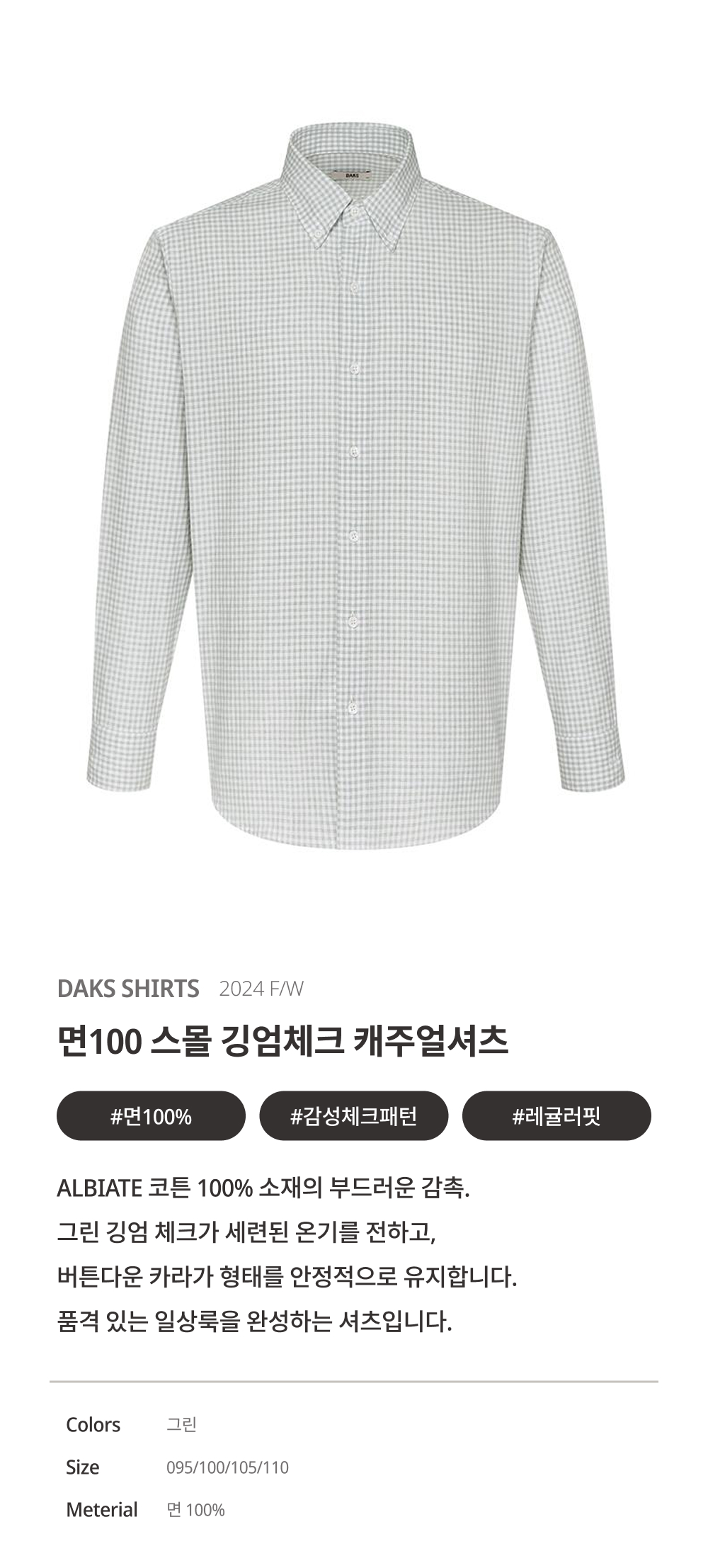 닥스코튼100 스몰 깅엄체크 캐주얼 셔츠_DKA1SHCL185E1
