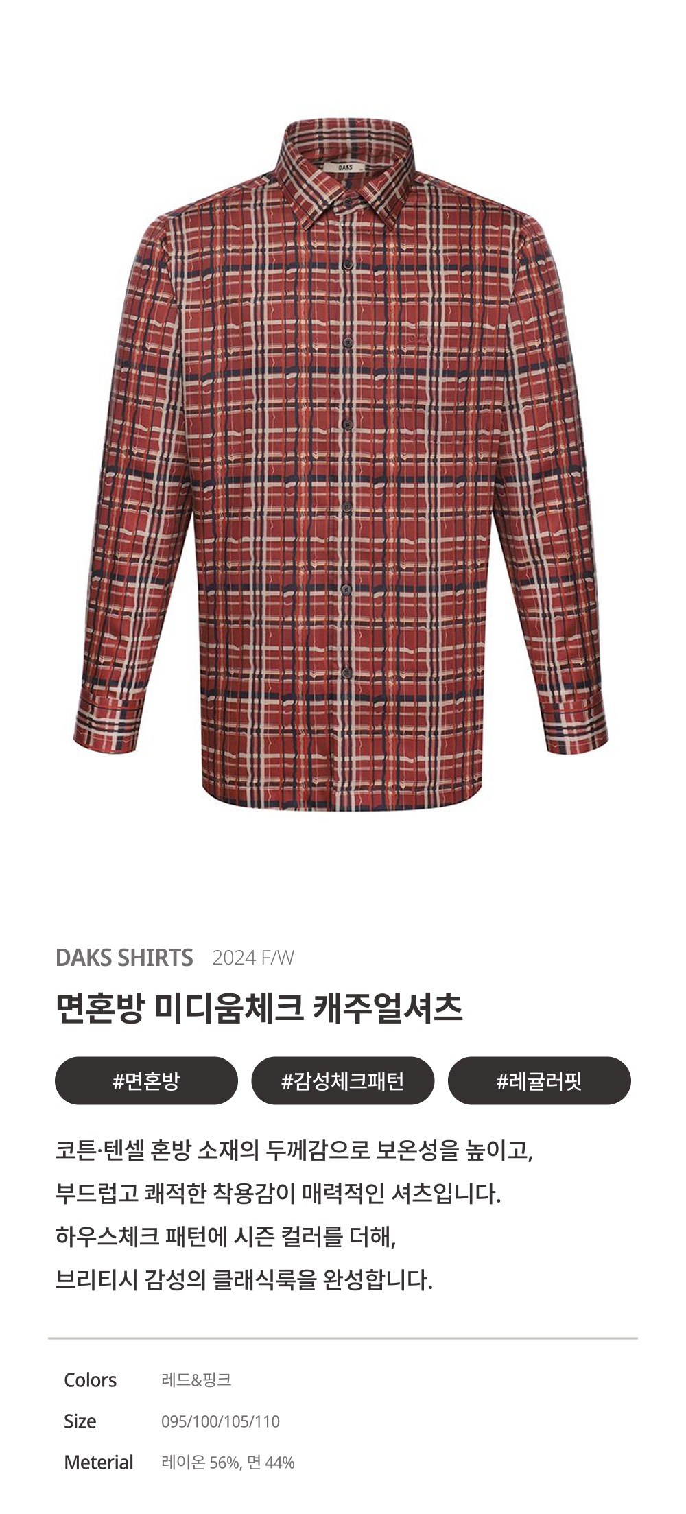 닥스면혼방 미디움체크 캐주얼 셔츠_DKA1SHCL102R1