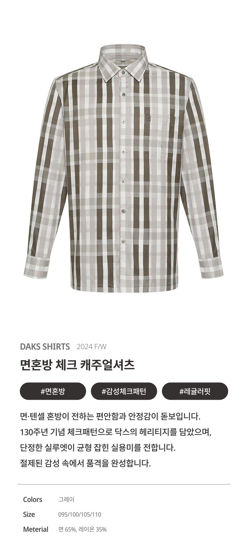 닥스면혼방 닥스체크 캐주얼 셔츠_DKA1SHCL145G1