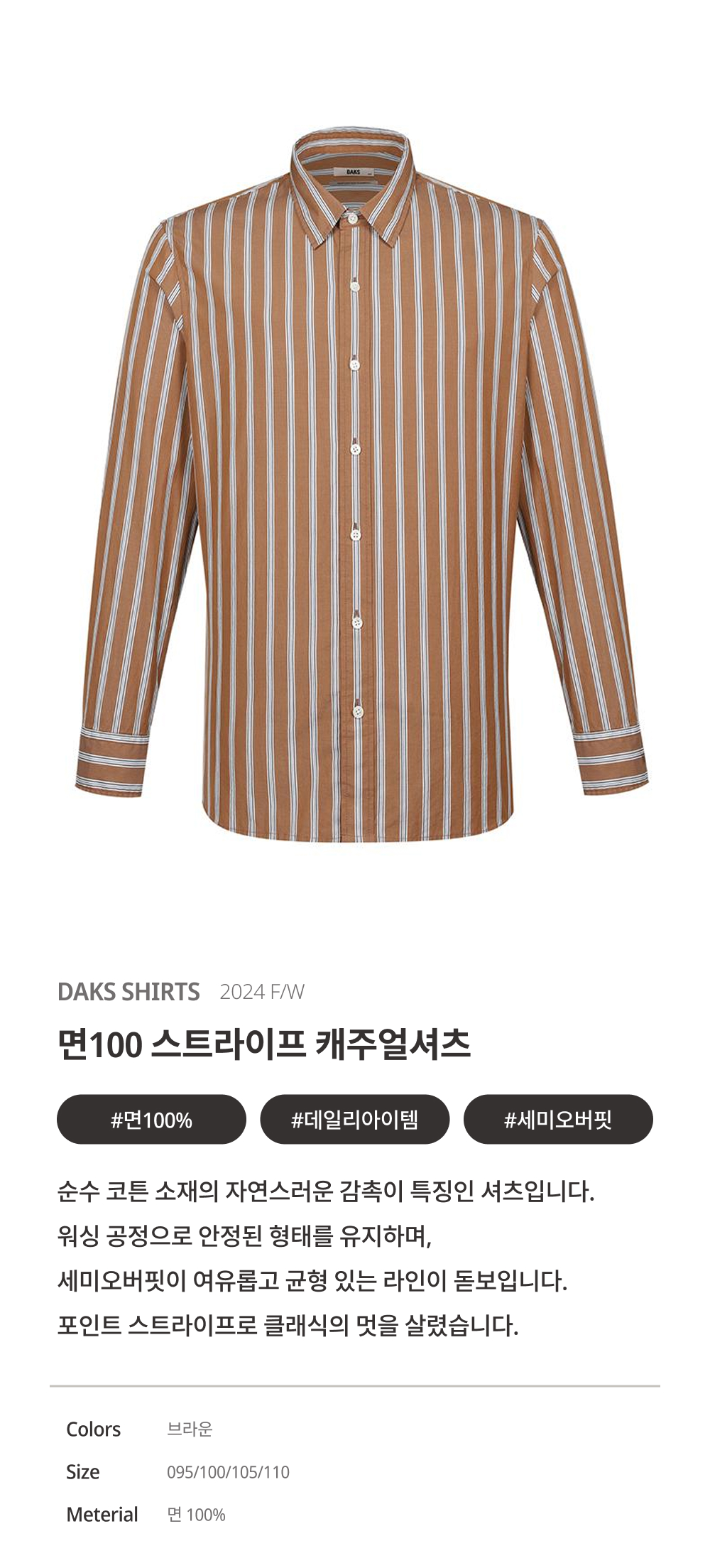 닥스코튼100 스트라이프캐주얼 세미오버핏 셔츠_DKA1SHCL172W1