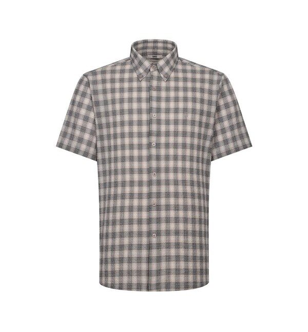 미듐체크 반팔셔츠 레귤러핏 베이지
