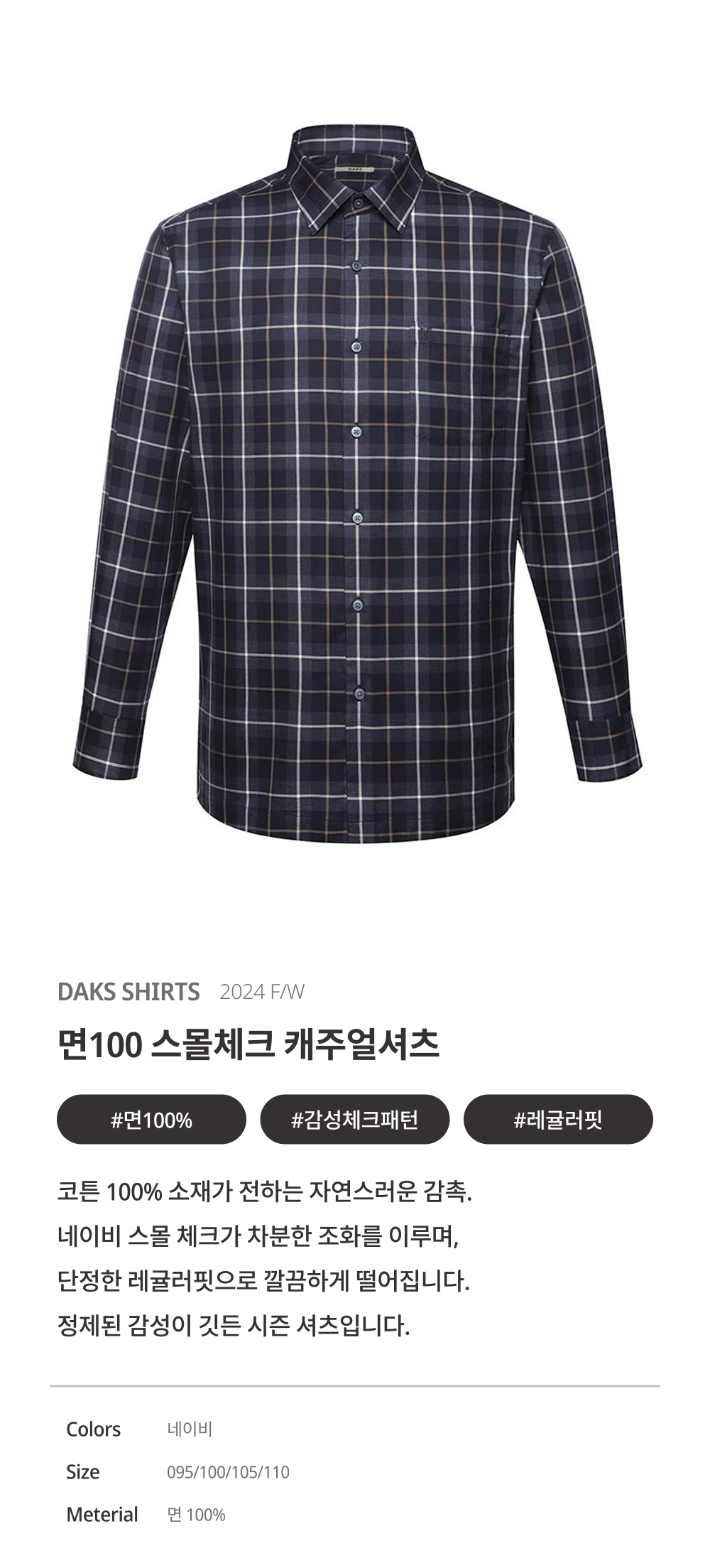 닥스코튼100 스몰체크 캐주얼 셔츠_DKA3SHCL112N1
