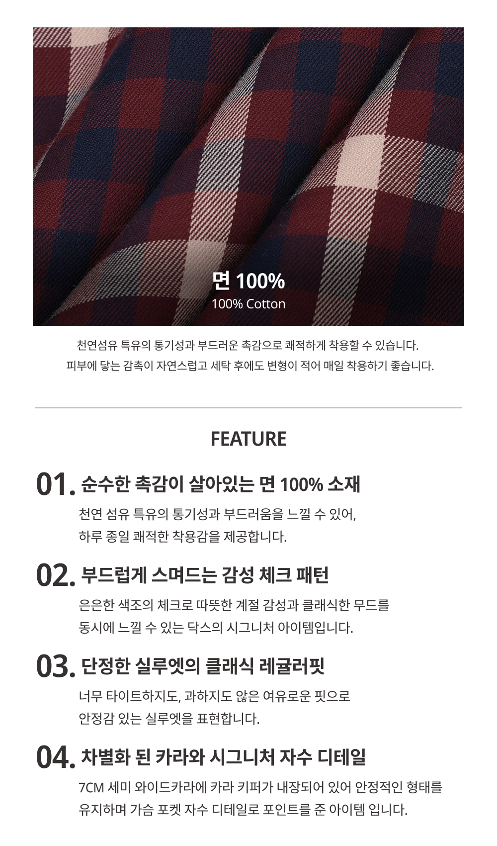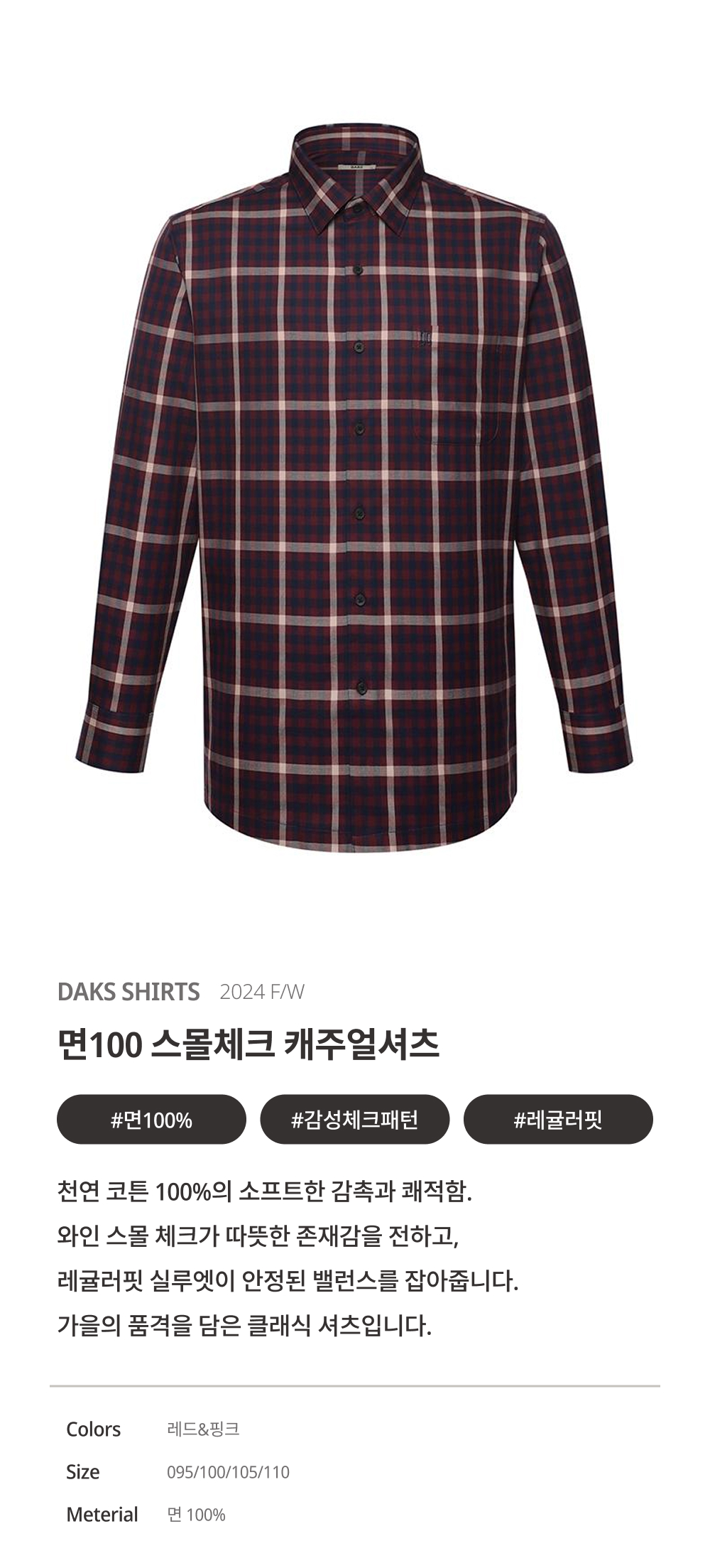 닥스코튼100 스몰체크 캐주얼 셔츠_DKA3SHCL111R1