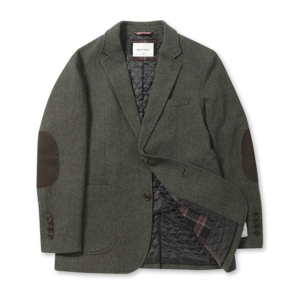 상품 특징 - 베이지컬러와 카키 컬러의 헤링본 울혼방 소재를 적용한 캐주얼자켓. - 엘보 패치 배색과 칼라 안쪽 비죠 배색, 아웃포켓 등의 디테일을 현대적으로 재해석하여 클래식함과 캐주얼함을 동시에 느낄 수 있는 멋스러운 자켓 아이템. - 안쪽에 바이린 HAS 충전재를 내장한 후 퀼팅 처리하여 보온성을 높임. 디자인 디테일 - 테일러드 칼라에 투버튼 여밈 디자인 채택으로, 클래식하고 단정한 외관 연출. - 아웃포켓 디자인과 볼륨감 있는 형태의 버닝된 너트 단추 사용으로 헌팅자켓의 느낌을 배가.