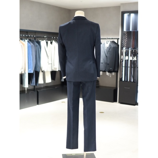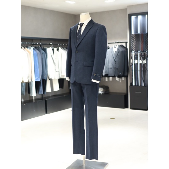 네이비 컬러감이 돋보이는 정장 세트입니다.