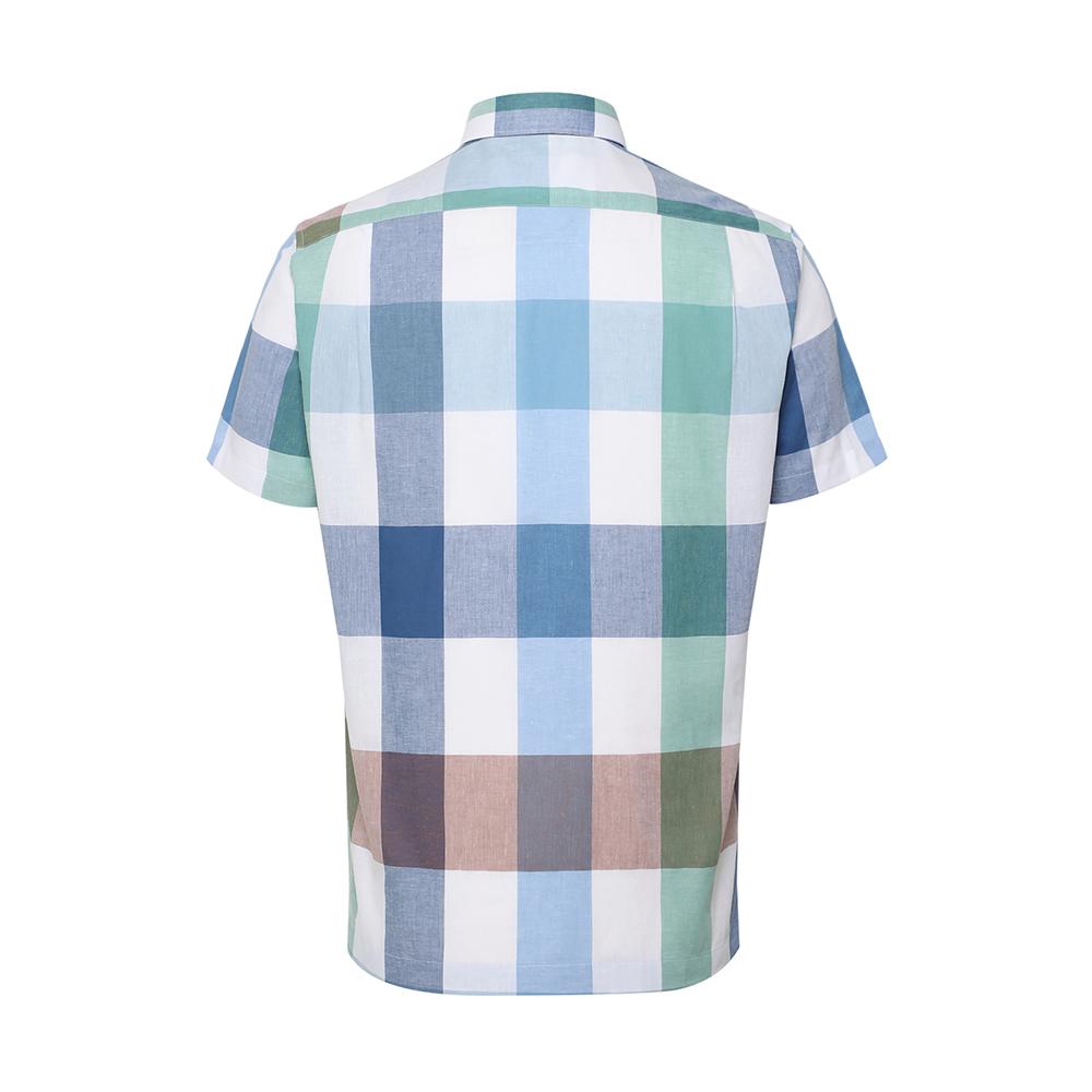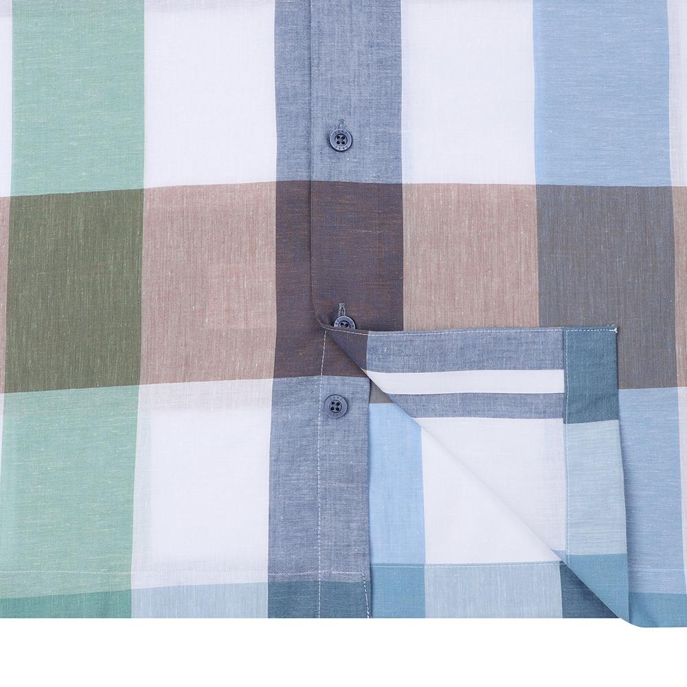 린넨혼방 미디움체크 캐주얼 반팔셔츠 레귤러핏 블루