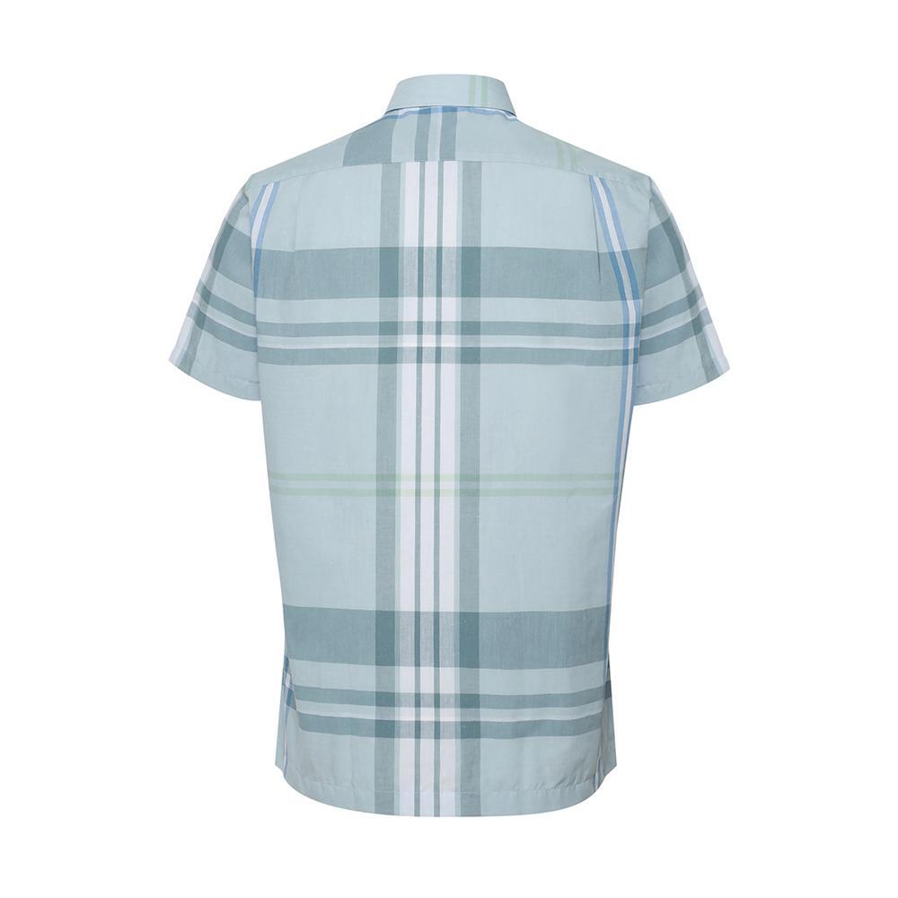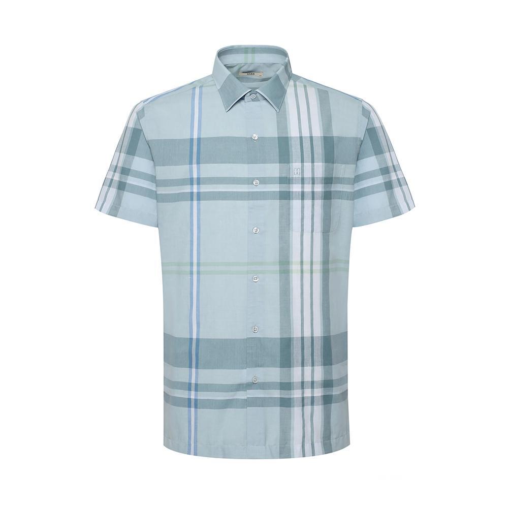 린넨혼방 라지체크 캐주얼 반팔셔츠 레귤러핏 그린