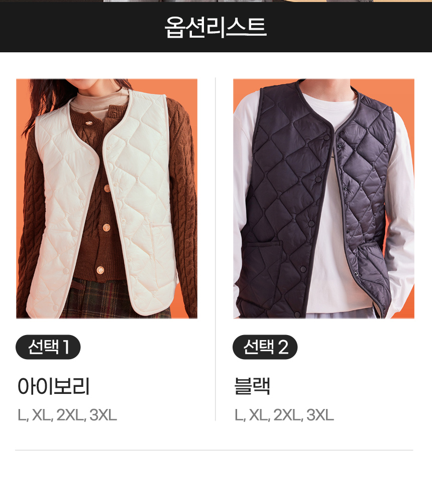 라이프랩 양모 100% 빅사이즈 경량 조끼 패딩 L~3XL
