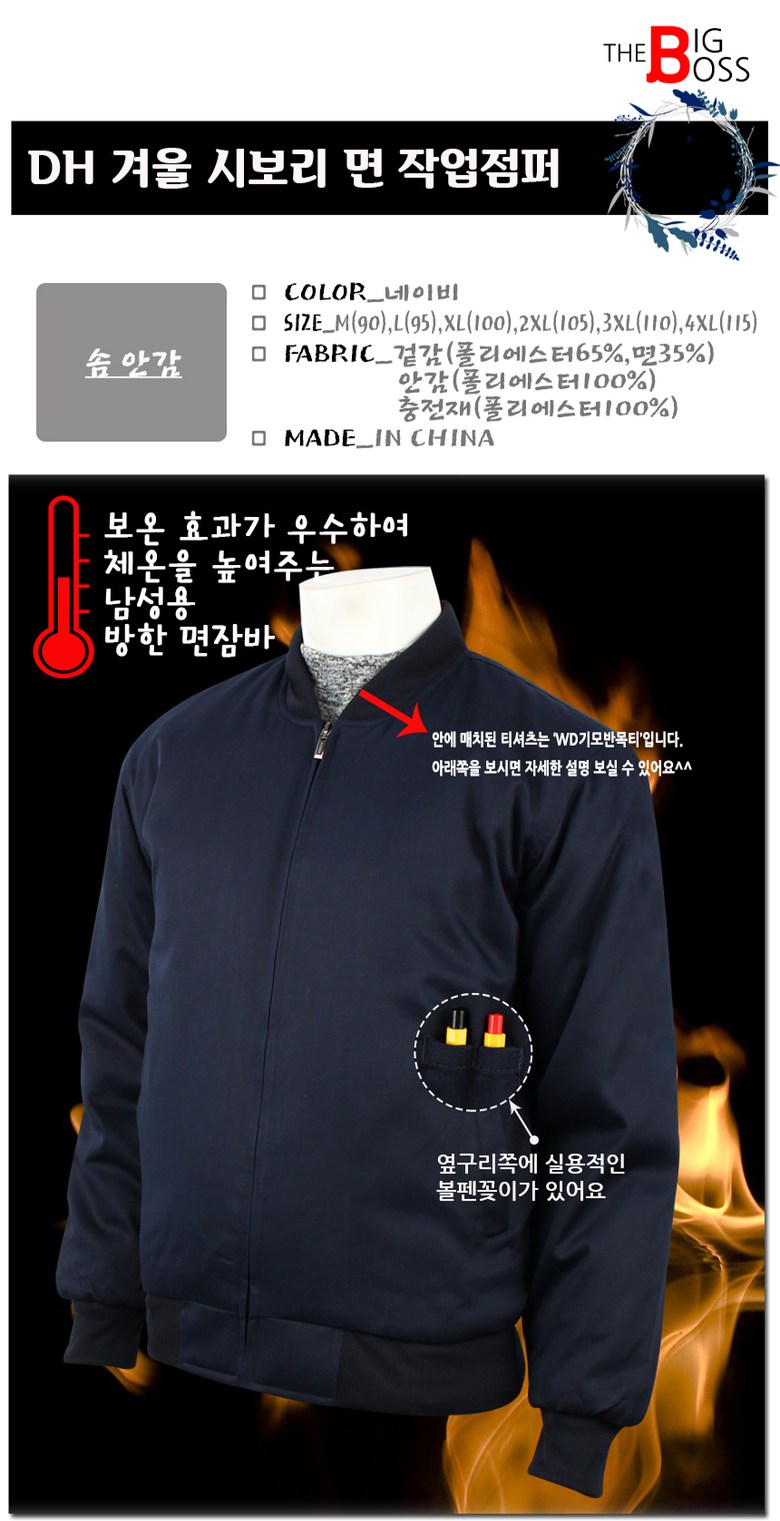 DH시보리방한면점퍼 겨울 남자 방한복 솜잠바 패딩 단체복 회사 근무복 M~4XL 빅사이즈