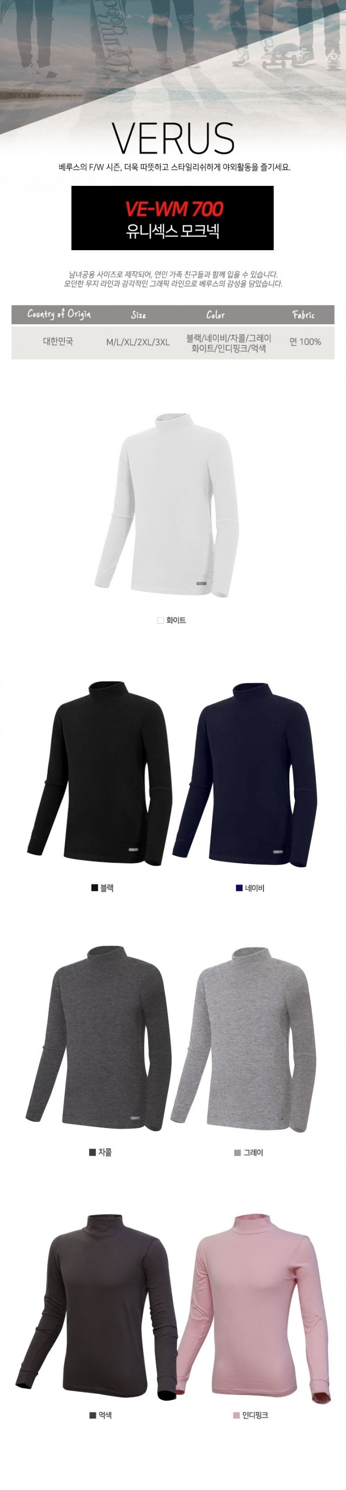베루스 남녀공용 면 반목티 모크넥 VE-MW700
