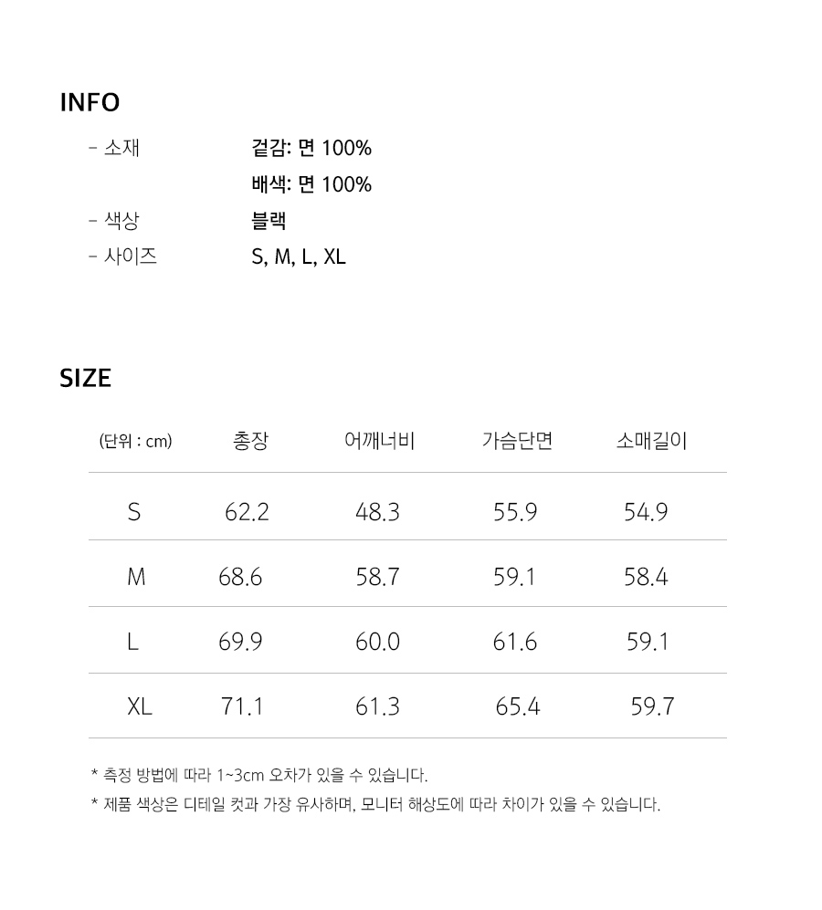톡톡한 두께감의 싱글 이중지를 사용하여 단품으로도 멋스러운 핏으로 연출 가능하며