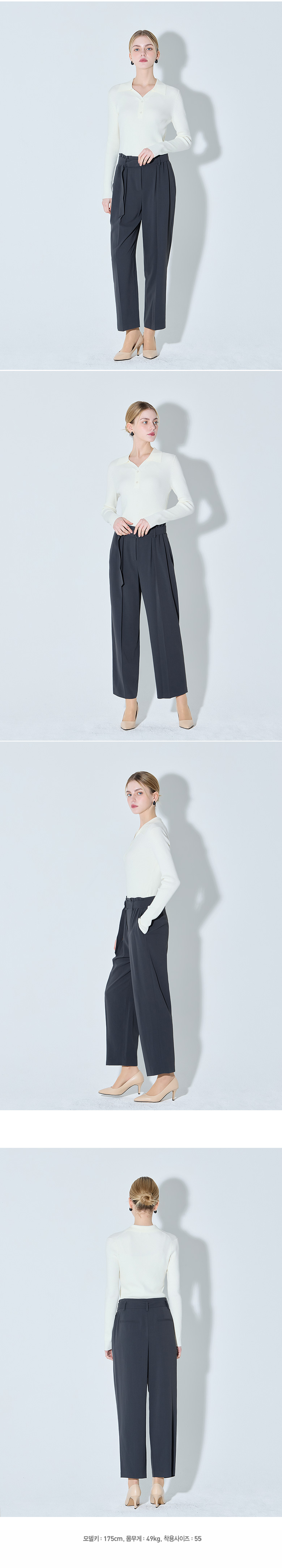 세련된 색상과 허리 벨트 디자인으로 스타일리시하면서도 편안한 착용감을 주는 슬랙스입니다.