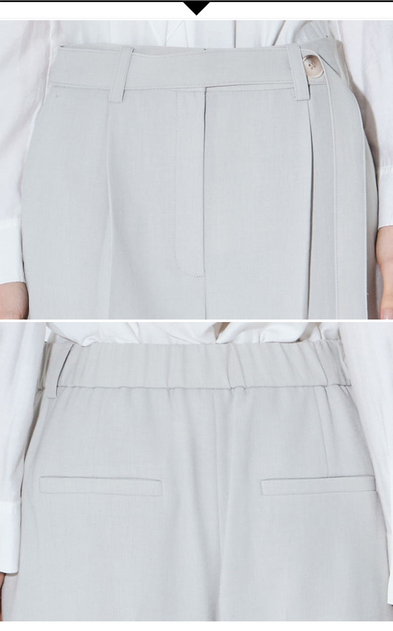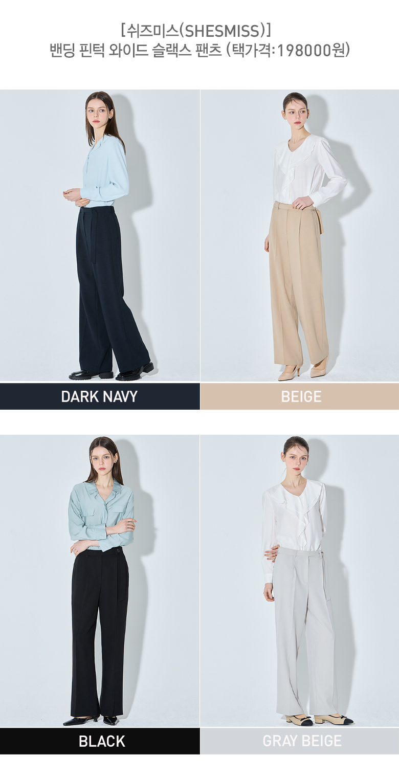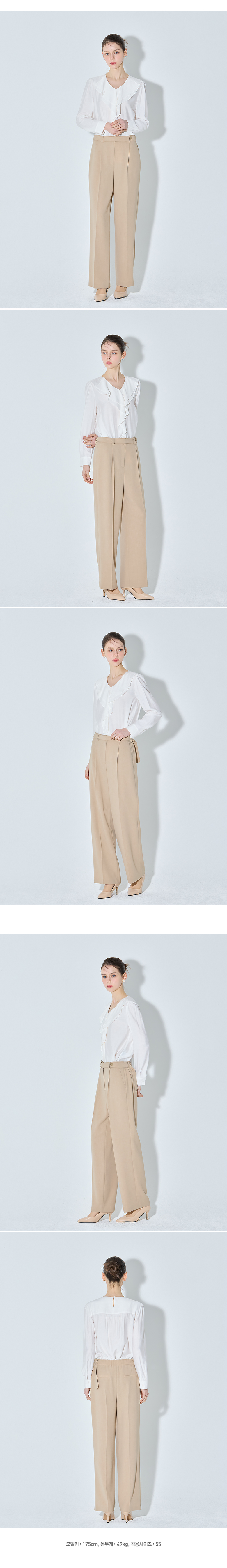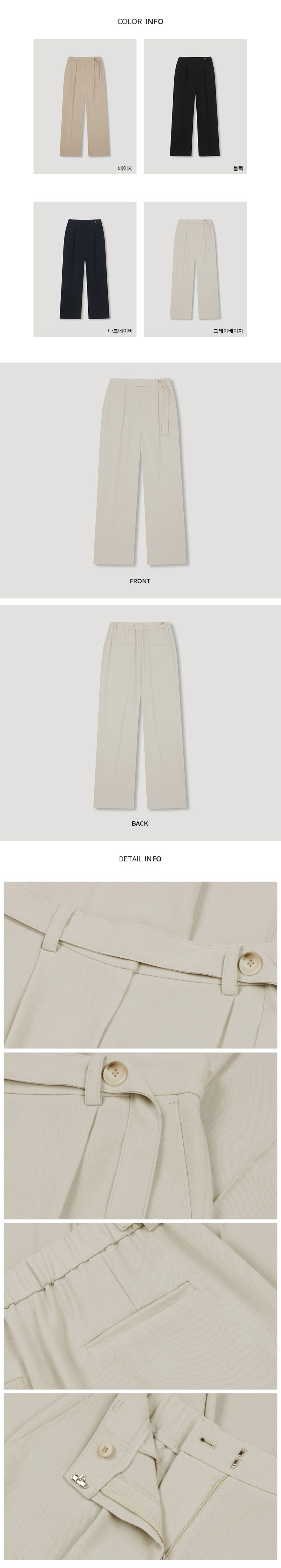고급스러운 소재와 세련된 핀턱 디테일로 우아한 실루엣을 주는 슬랙스입니다. 브랜드만의 고급원단으로 우수한 착용감을 선사합니다. 허리 벨트가 있어 체형에 맞게 조절 가능하며, 다양한 스타일링이 가능한 다재다능한 아이템입니다.